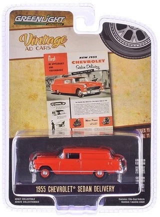 Kolekcjonerski model metalowy z elementami plastikowymi samochodu CHEVROLET Sedan Delivery “First in Appearance and Performance” z roku 1955 w kolorze Czerwonym.Model z serii Vintage Ad Cars – Edycja 11.