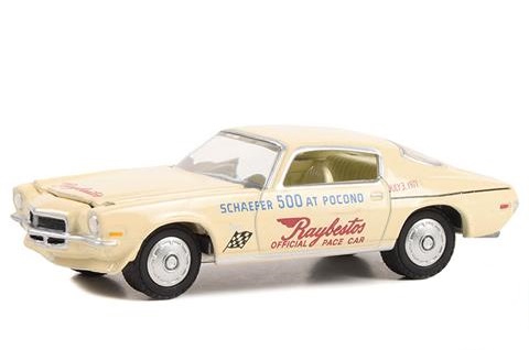 Kolekcjonerski model metalowy z elementami plastikowymi samochodu 1971 CHEVROLET CAMARO – 1971 Schaefer 500 at Pocono Raybestos Official Pace Car.Model z serii Greenlight Exclisives.