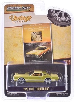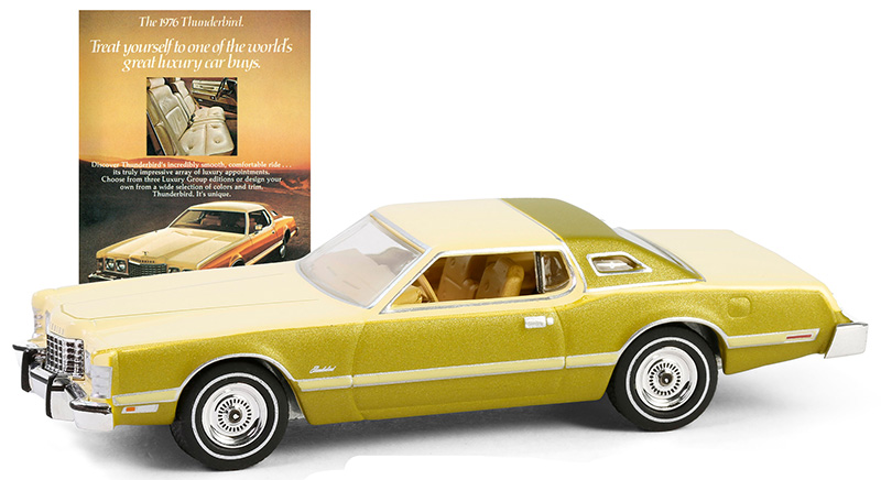 Kolekcjonerski model metalowy z elementami plastikowymi samochodu FORD THUNDERBIRD – “Treat Yourself to One of the World’s Great Luxury Car Buys” z roku 1976.Model z serii Vintage Ad Cars – Edycja 11.