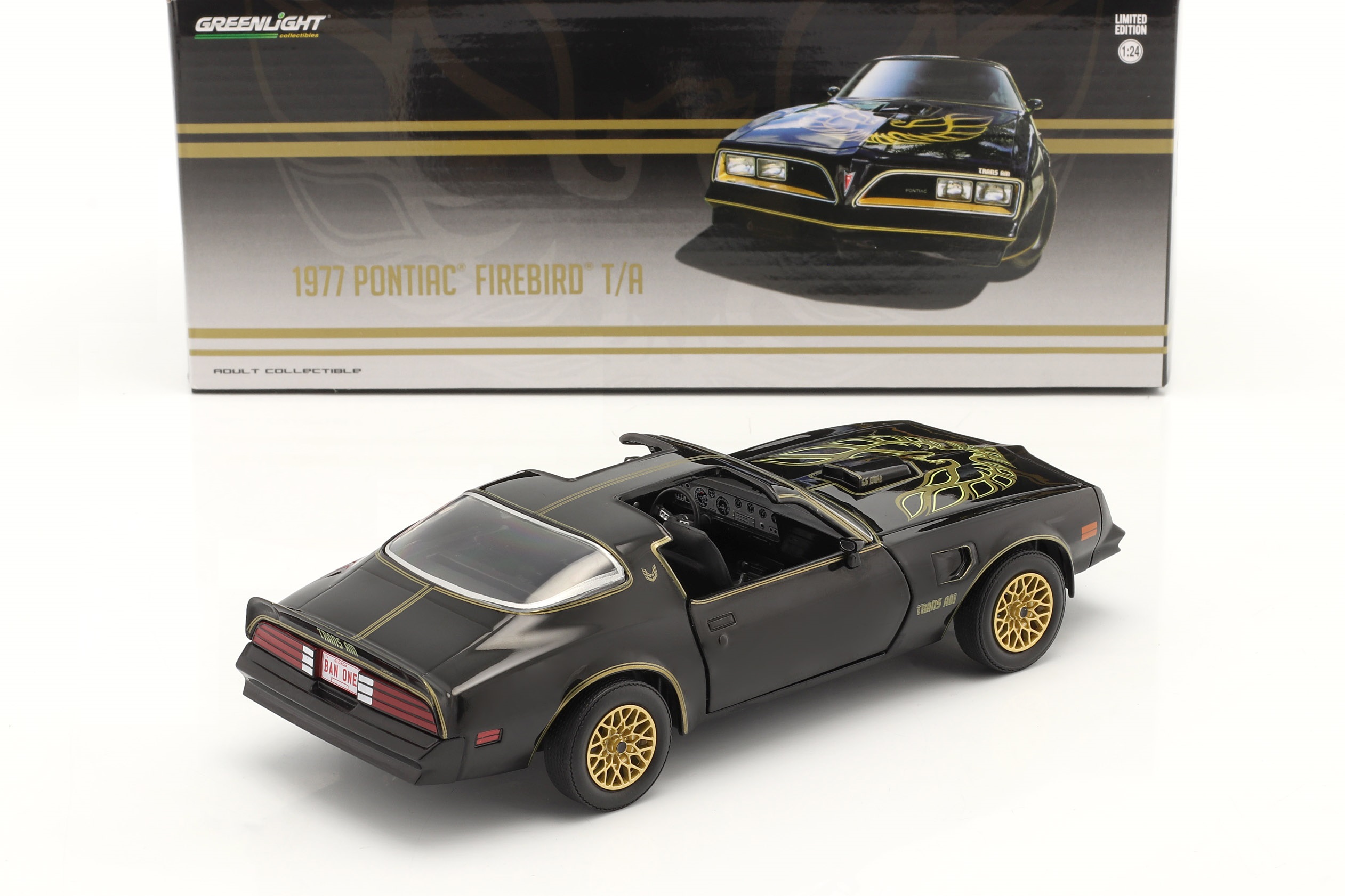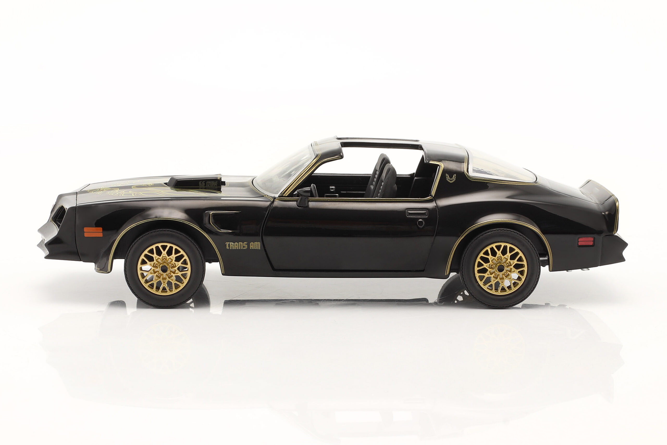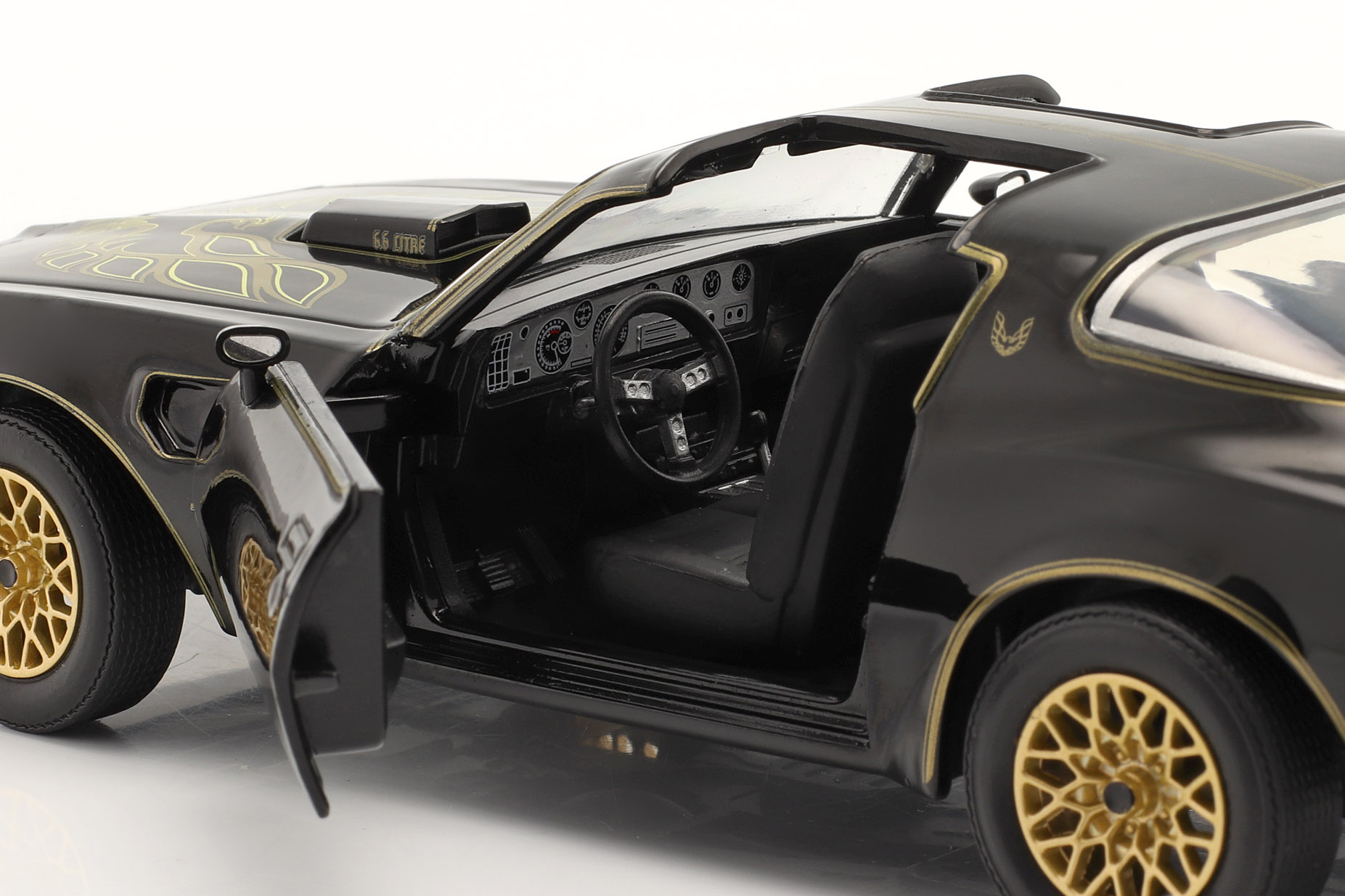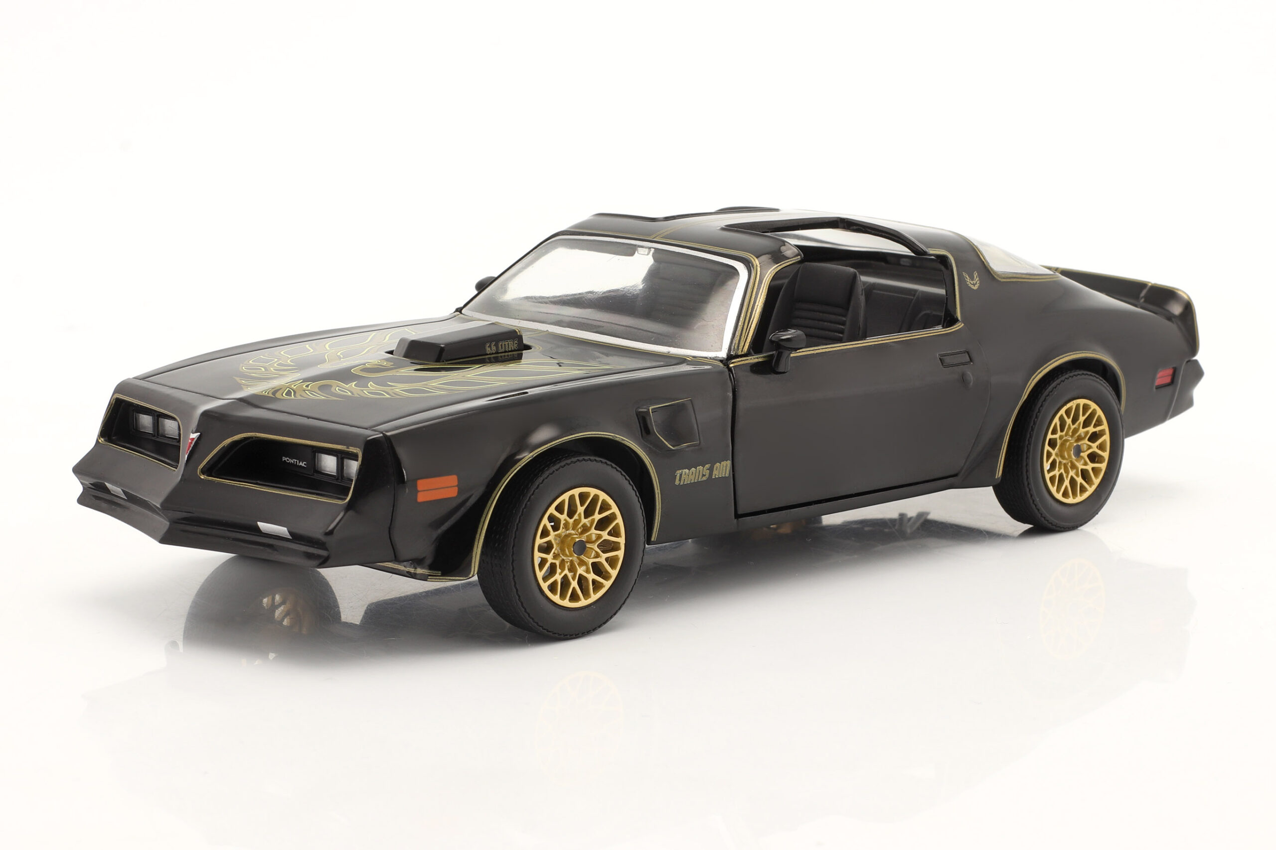Kolekcjonerski model metalowy z elementami plastikowymi samochodu PONTIAC FIREBIRD TRANS AM z roku 1977 taki jak w filmie “Mistrz kierownicy ucieka” ( tytuł oryg.Smokey & Tha Bandit”) z roku 1977 ,w którym główną role zagrał Burt Reynolds.Model posiada otwierane drzwi.
