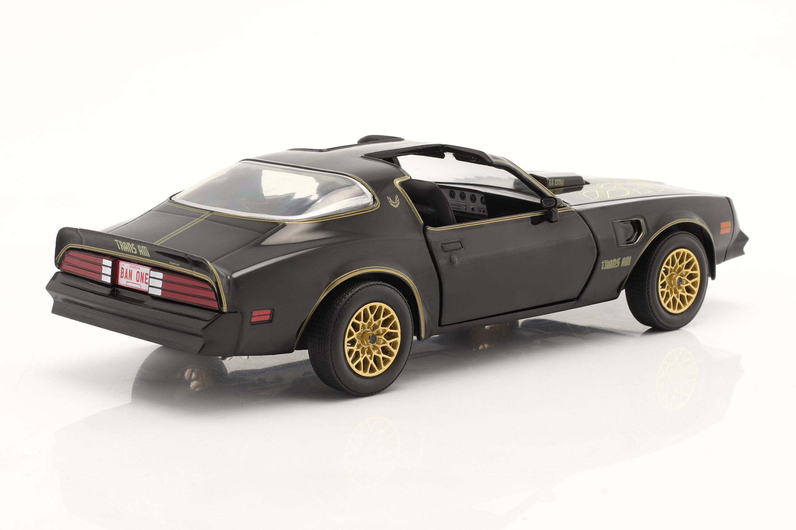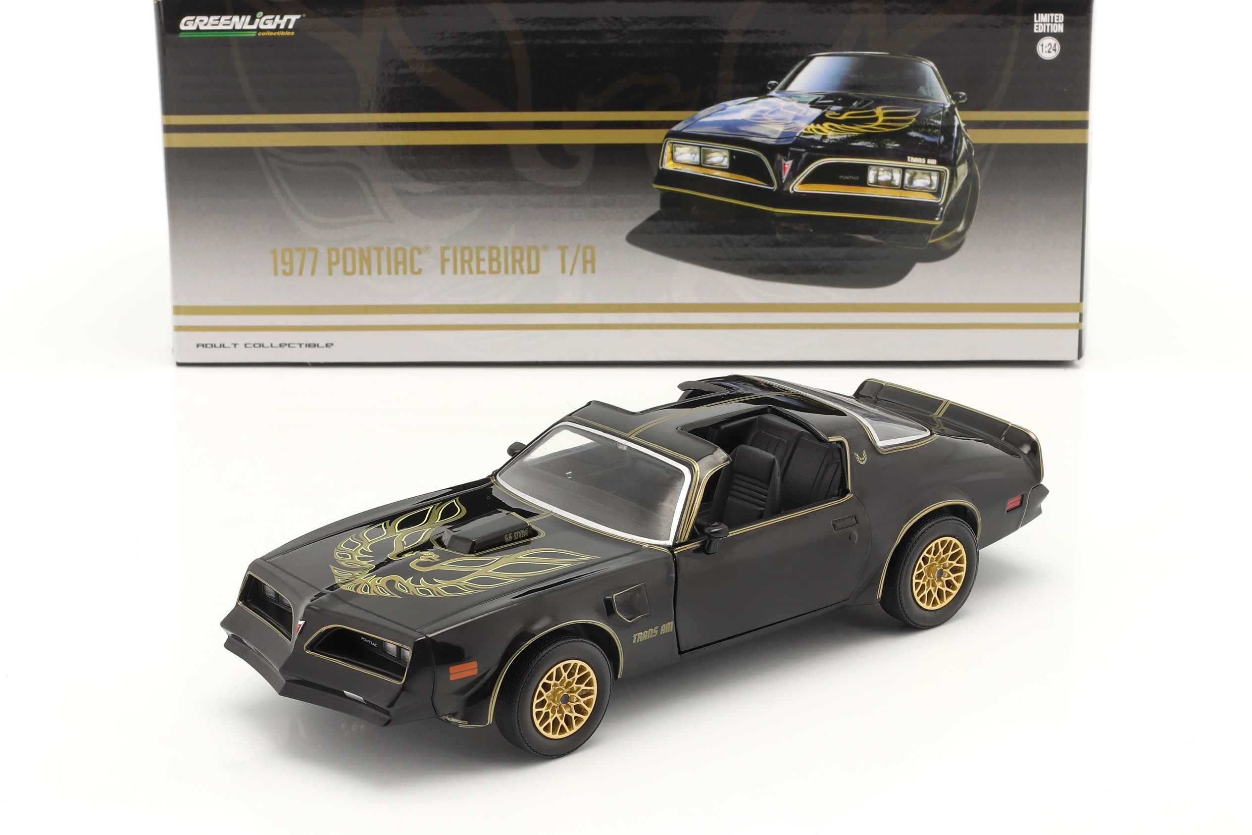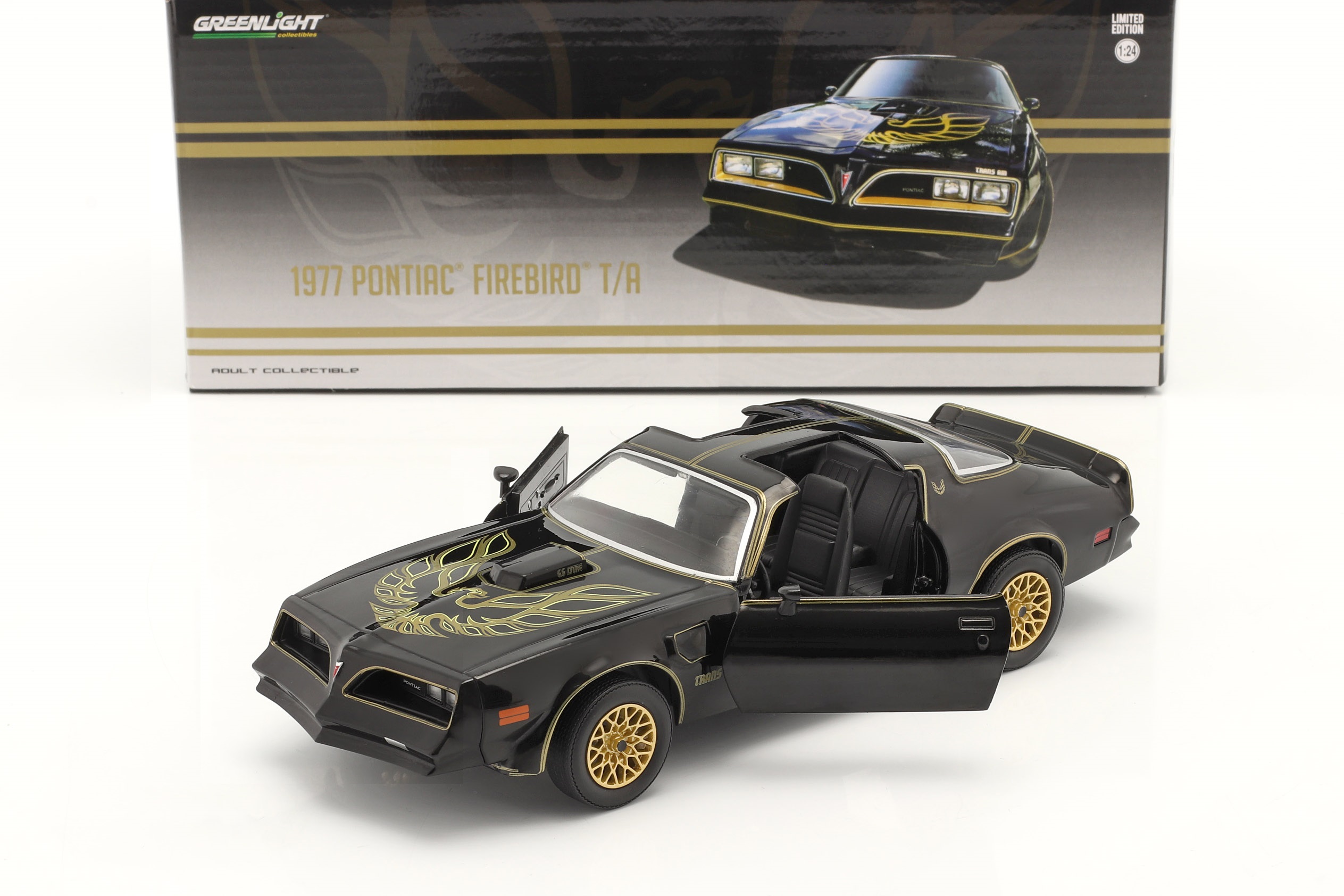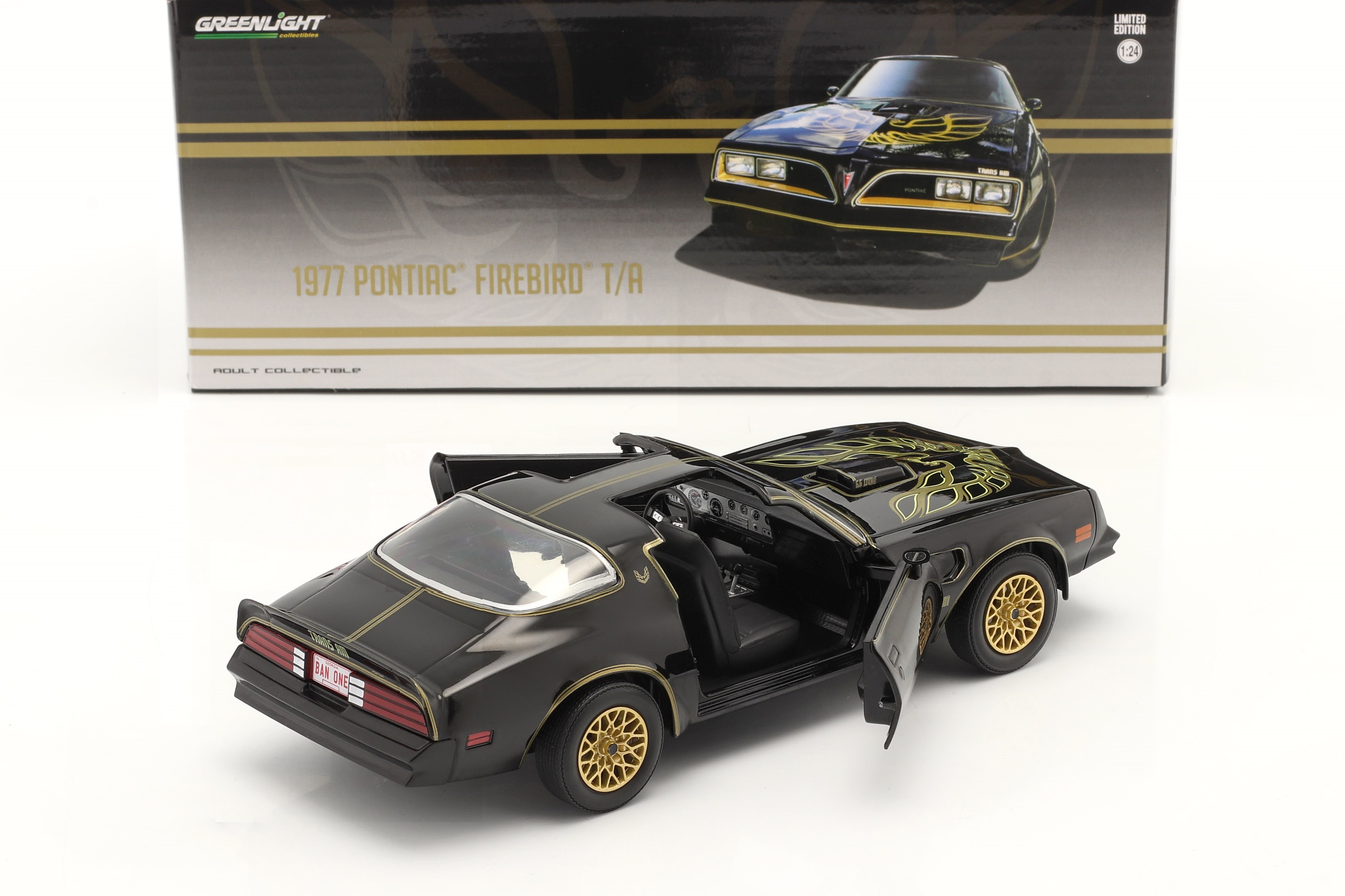 Kolekcjonerski model metalowy z elementami plastikowymi samochodu PONTIAC FIREBIRD TRANS AM z roku 1977 taki jak w filmie “Mistrz kierownicy ucieka” ( tytuł oryg.Smokey & Tha Bandit”) z roku 1977 ,w którym główną role zagrał Burt Reynolds.Model posiada otwierane drzwi.