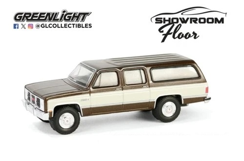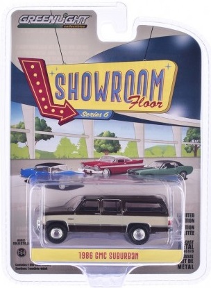 Kolekcjonerski model metalowy z elementami plastikowymi samochodu GMC SUBURBAN z roku 1986 w kolorze Indian Bronze/Doeskin Tan.Model z serii Showroom Floor,Edycja 6.Model zapakowany w blister.