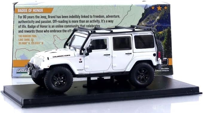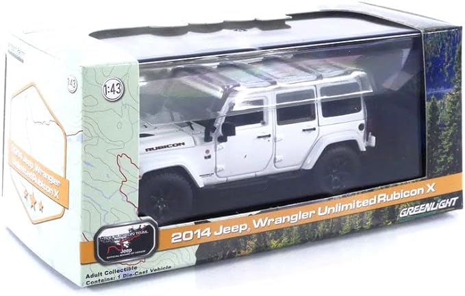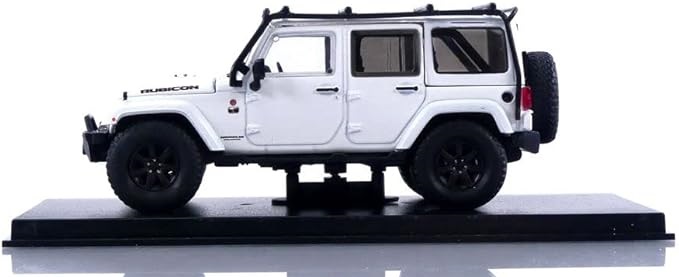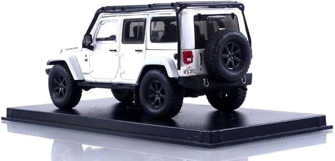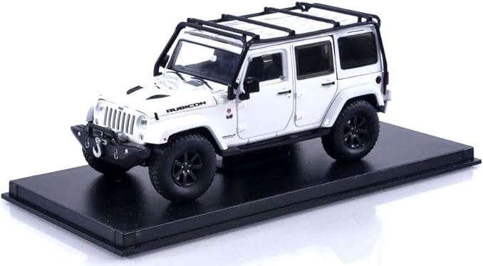 Kolekcjonerski model metalowy z elementami plastikowymi samochodu JEEP WRANGLER RUBICON X with Off Road parts z roku 2014 w kolorze Białym.