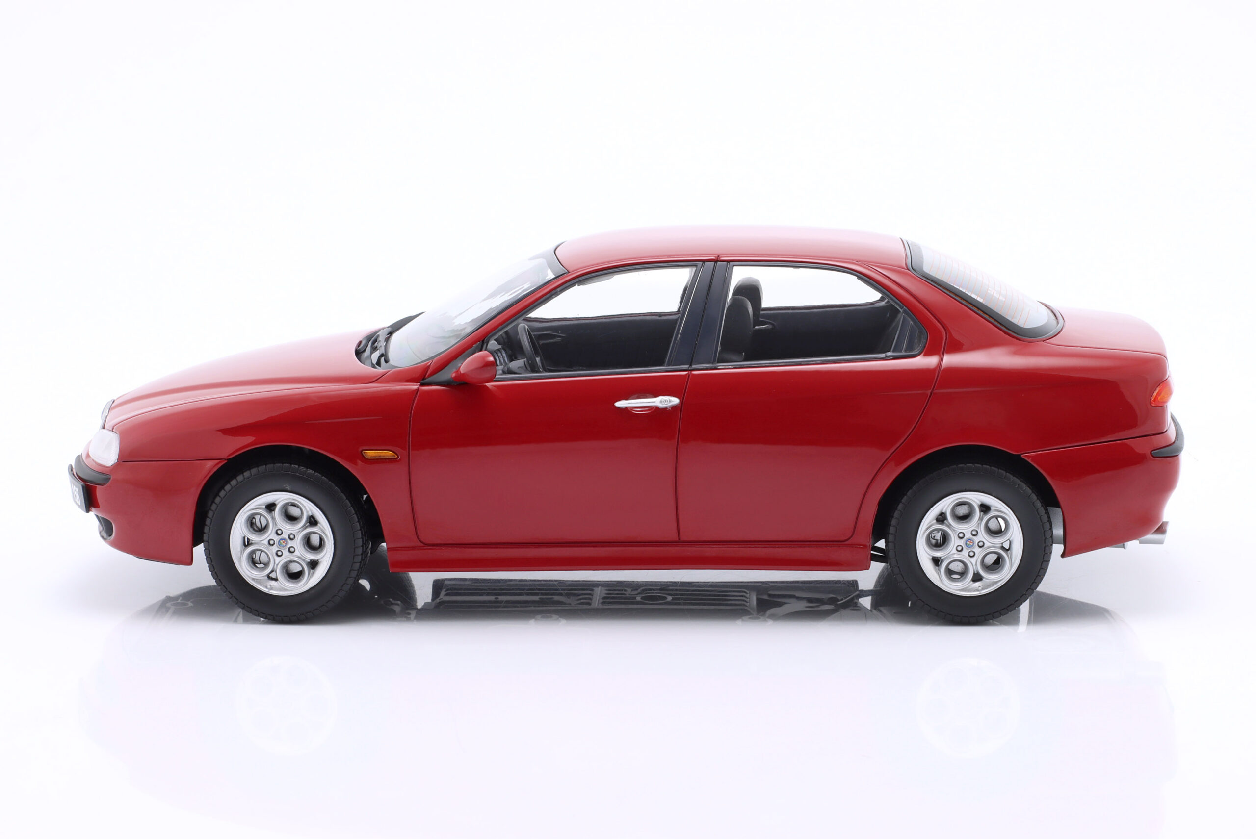 Kolekcjonerski model metalowy z elementami plastikowymi samochodu ALFA ROMEO 156 z roku 1998 w kolorze Alfa red.Model nie posiada otwieranych elementów.