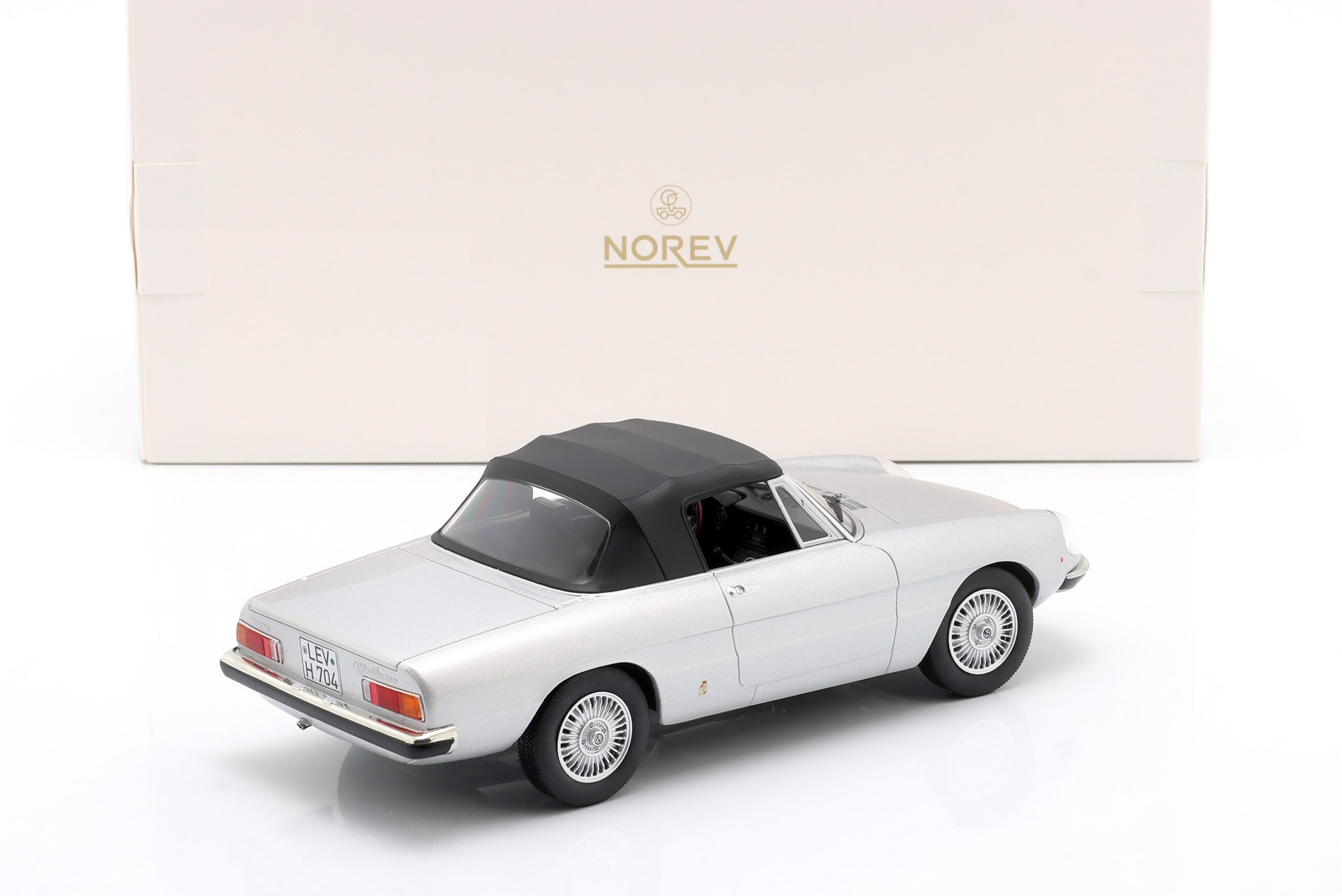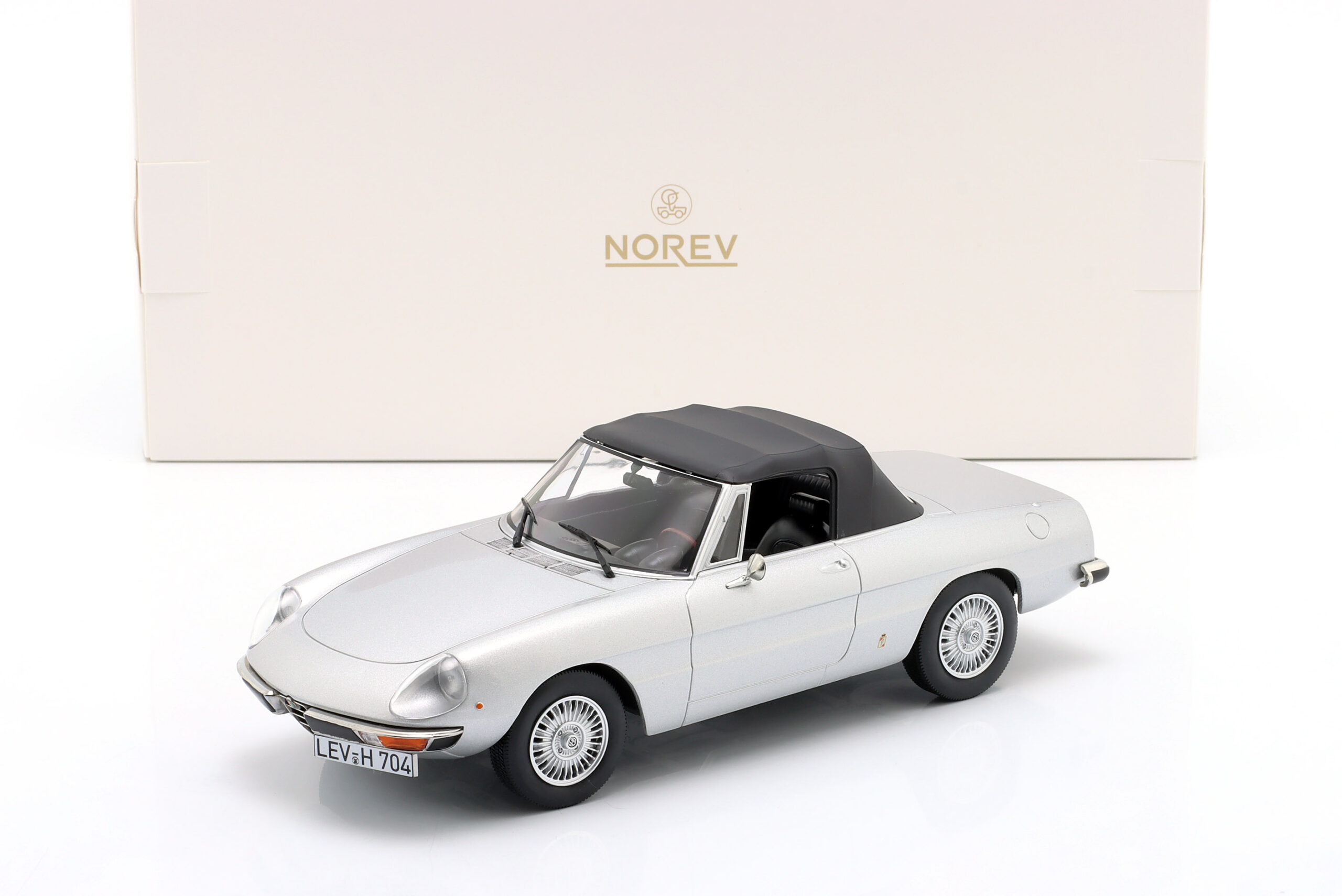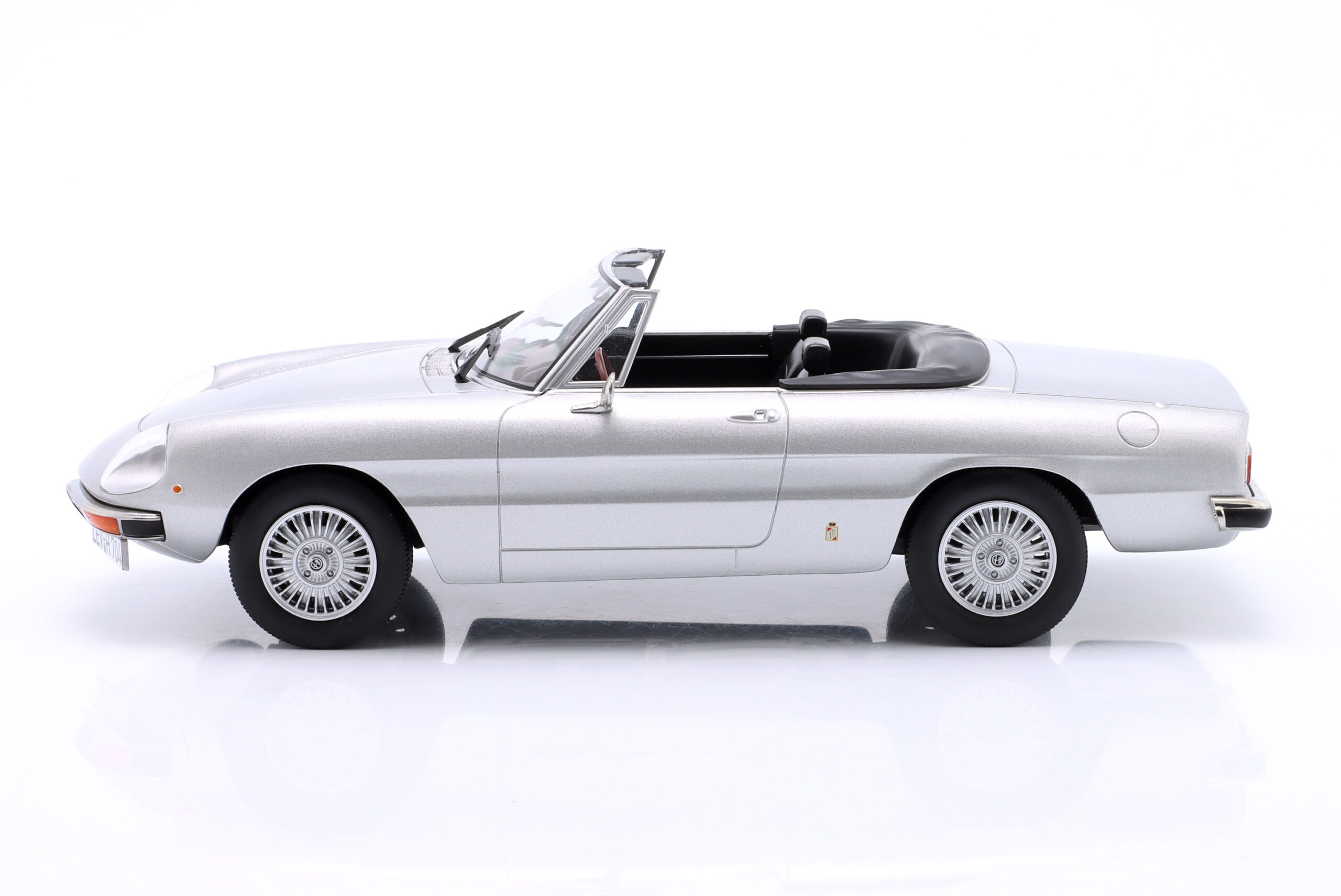 Kolekcjonerski model metalowy z elementami plastikowymi samochodu ALFA ROMEO 2000 Spider z roku 1973 w kolorze Srebrnoszary metallic.Model nie posiada otwieranych elementów.