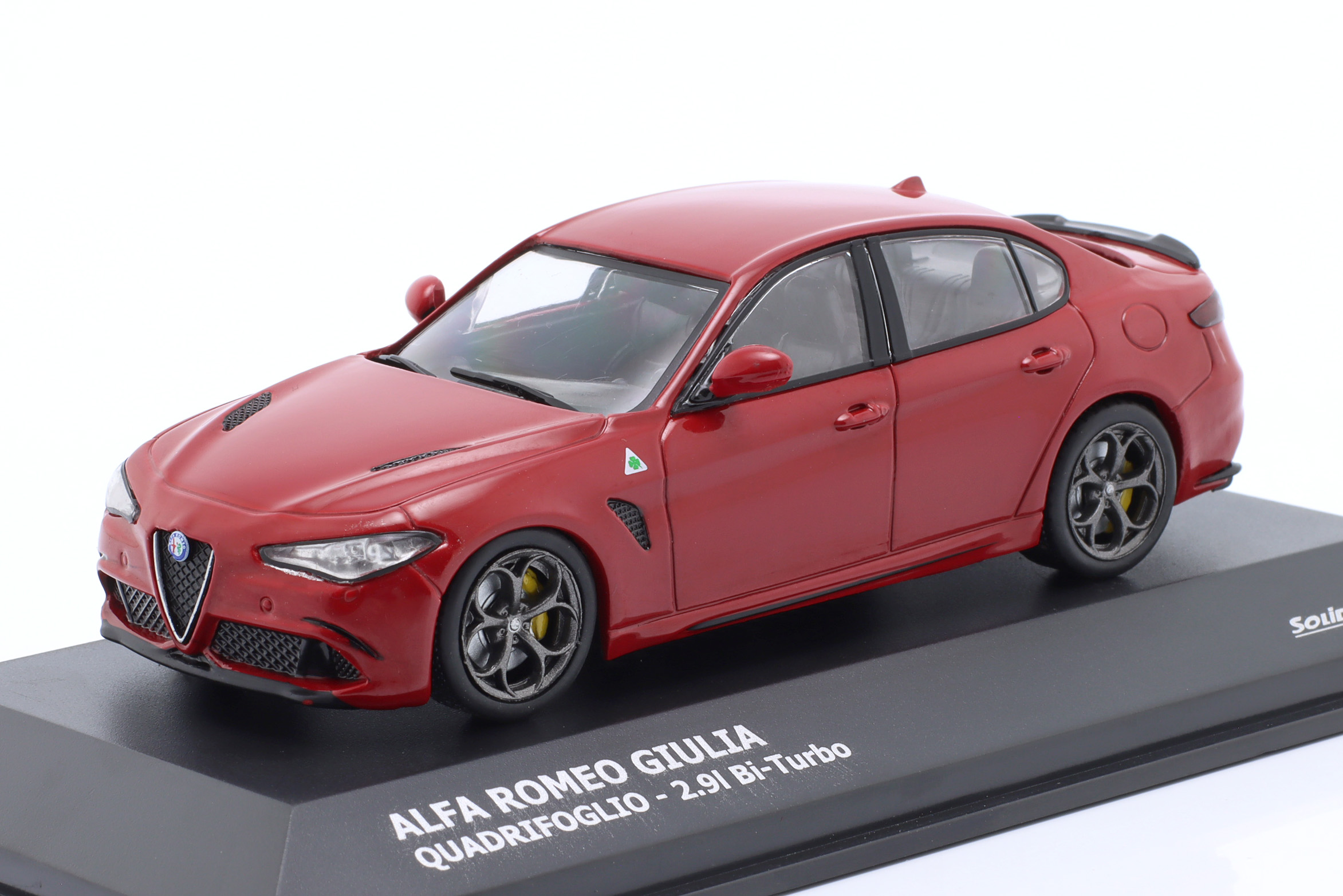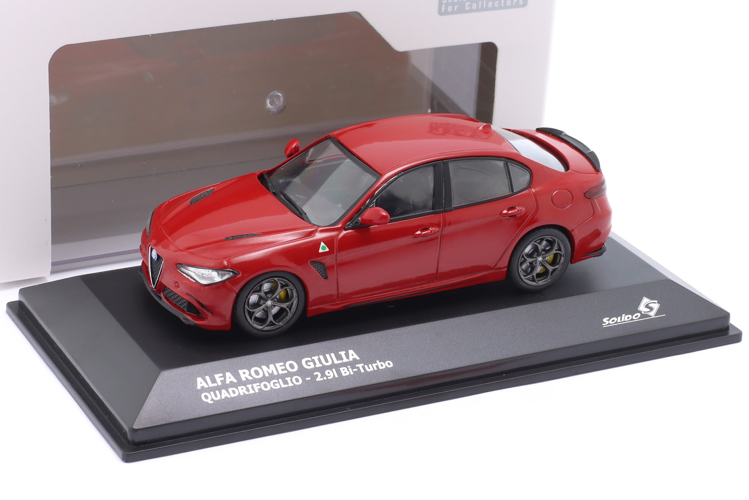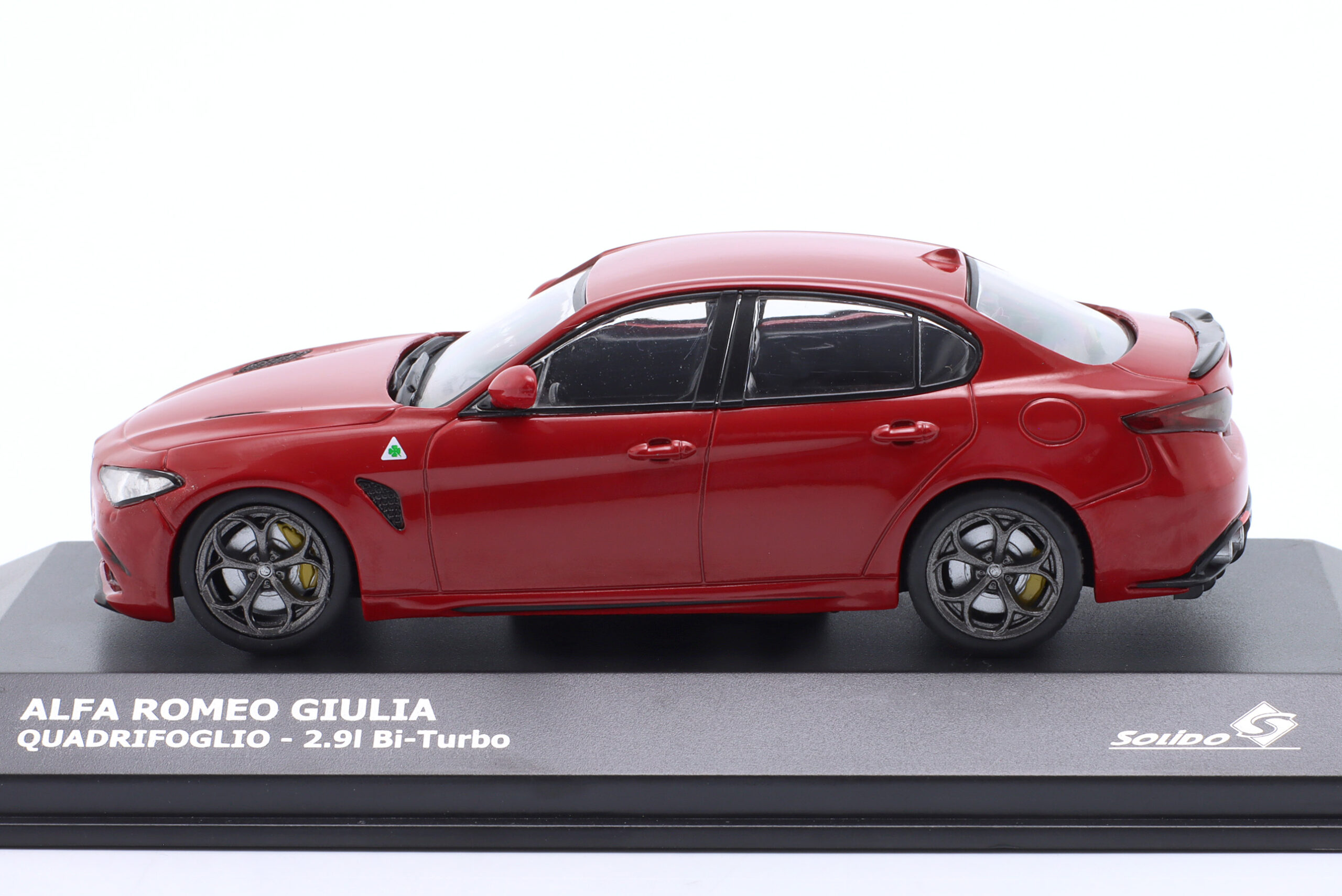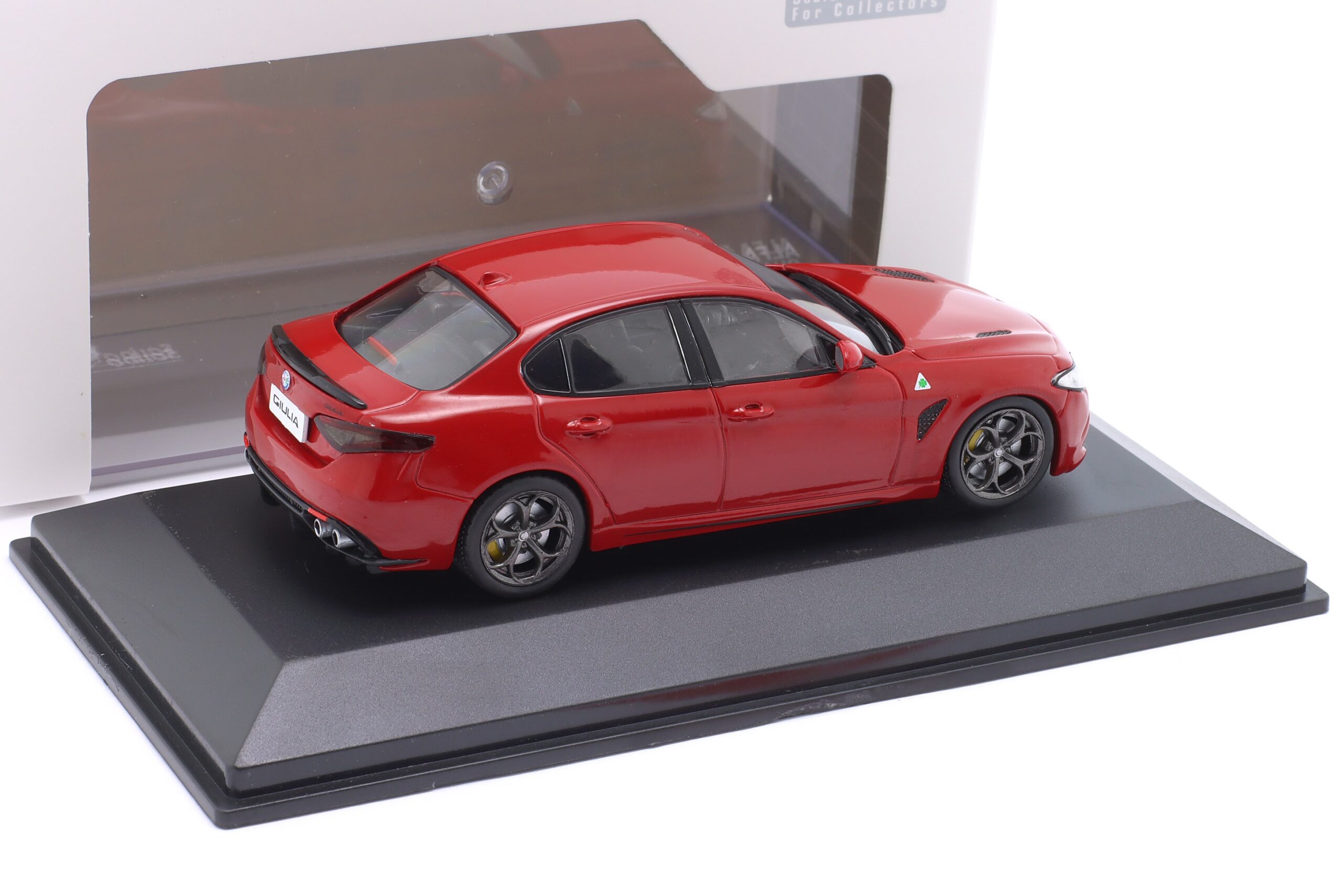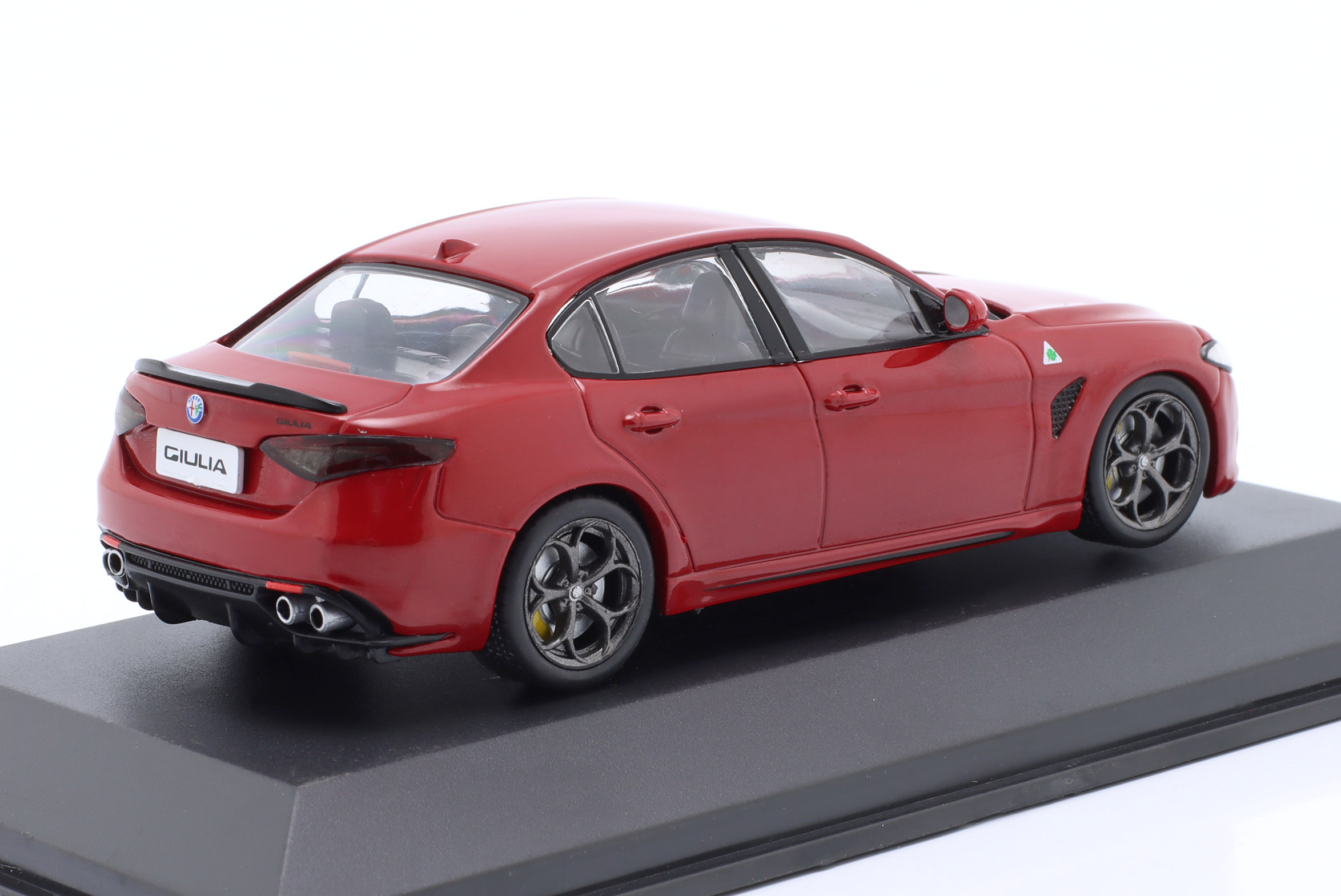 Kolekcjonerski model metalowy z elementami plastikowymi samochodu ALFA ROMEO GIULIA QUADRIFOGLIO z roku 2019 w kolorze Czerwonym.Model na podstawce,posiada akrylową gablotkę ekspozycyjną.