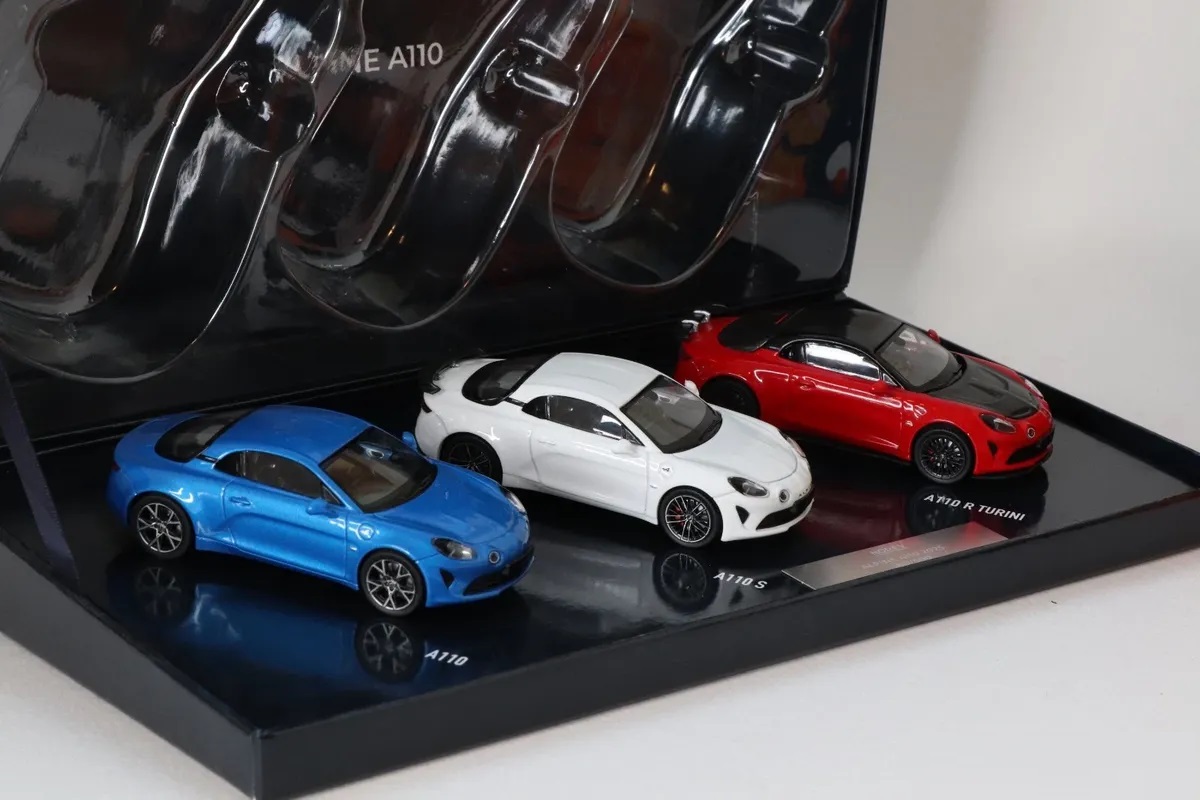 Kolekcjonerski zestaw 3-ch modeli samochodów ALPINE A110 z roku 2025 w kolorach francuskiej flagi.Zestaw zapakowany w estetyczne pudełko.Edycja limitowana tylko 500 sztuk.Każdy zestaw posiada metalową plakietkę a kolejnym numerem seryjnym.Modele nie posiadają otwieranych elementów.