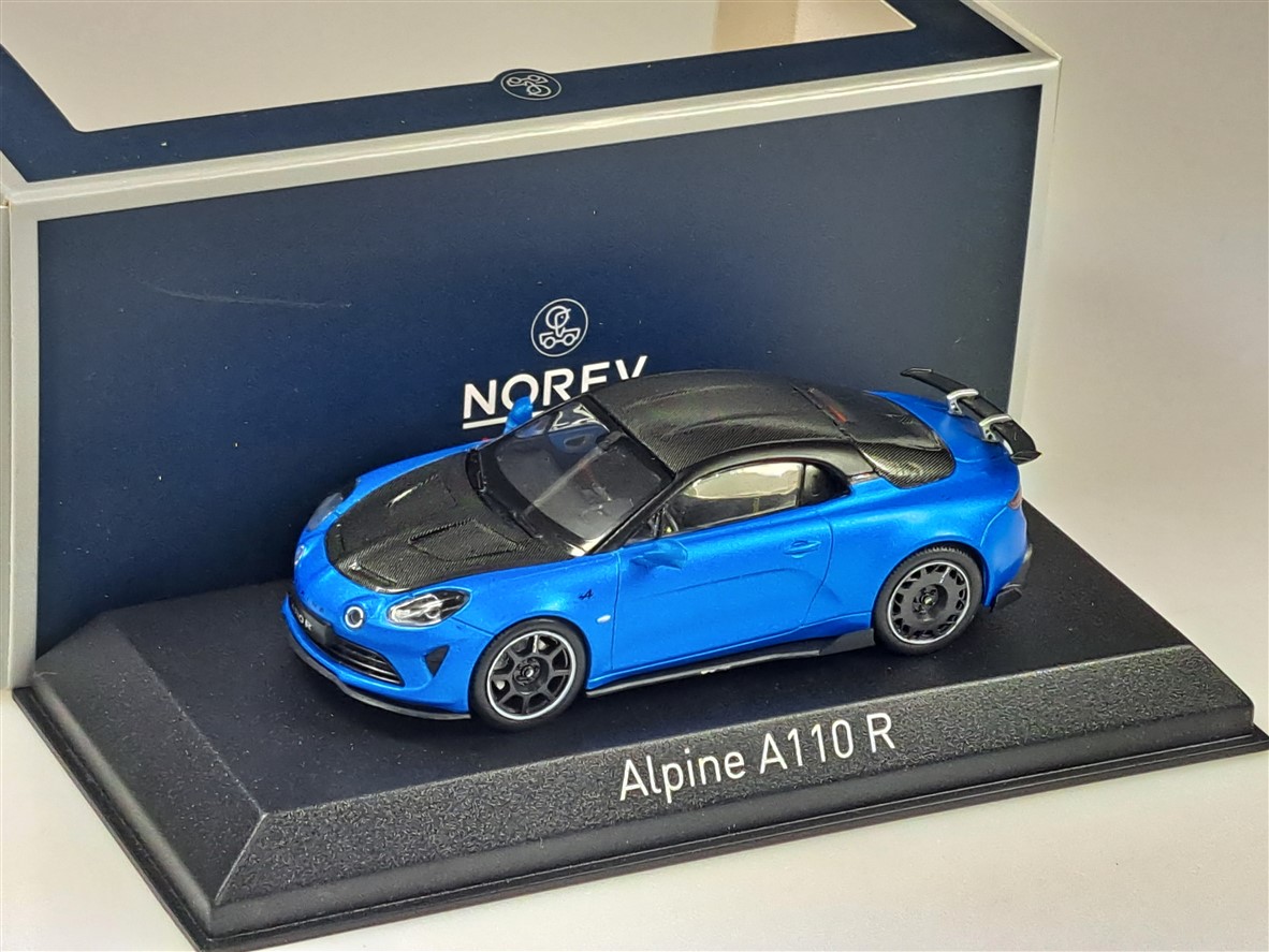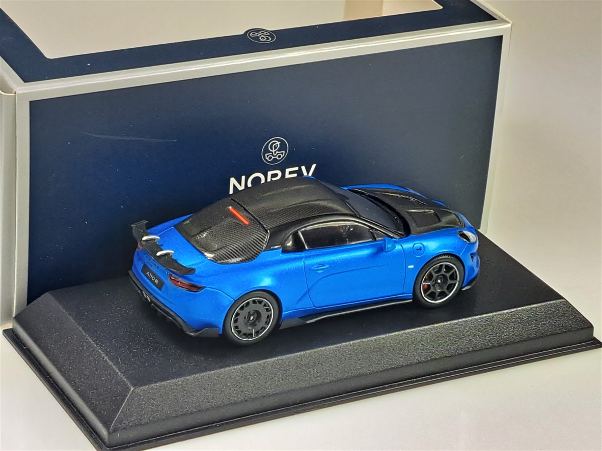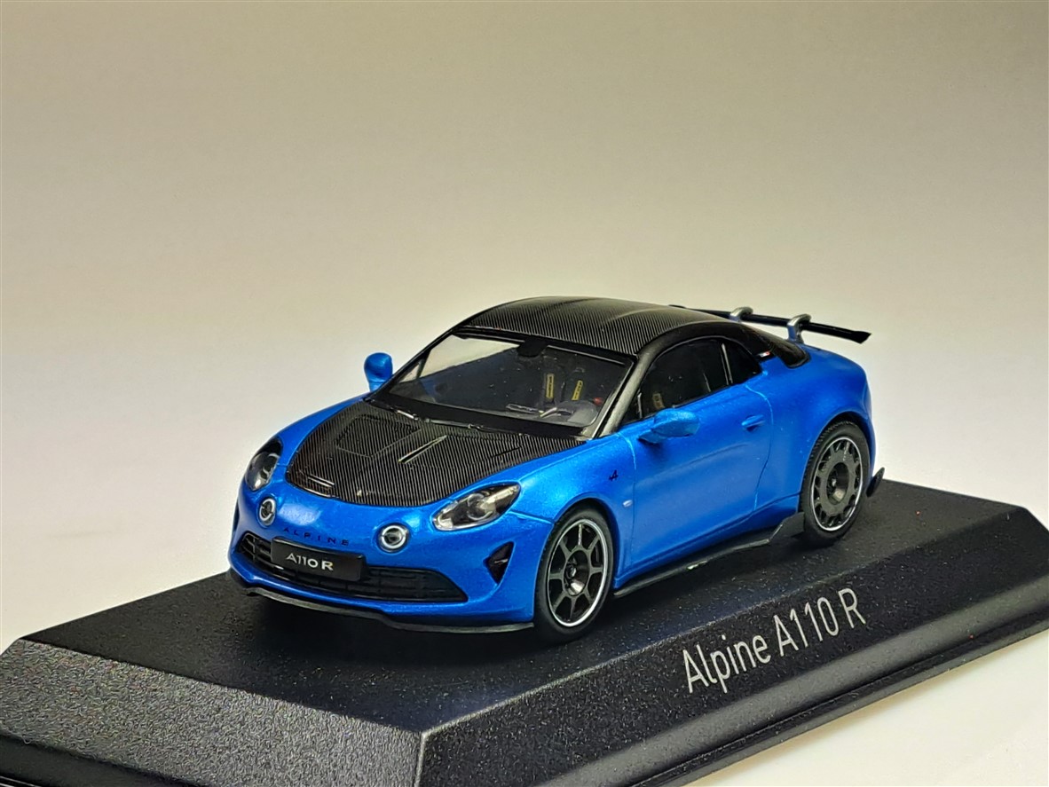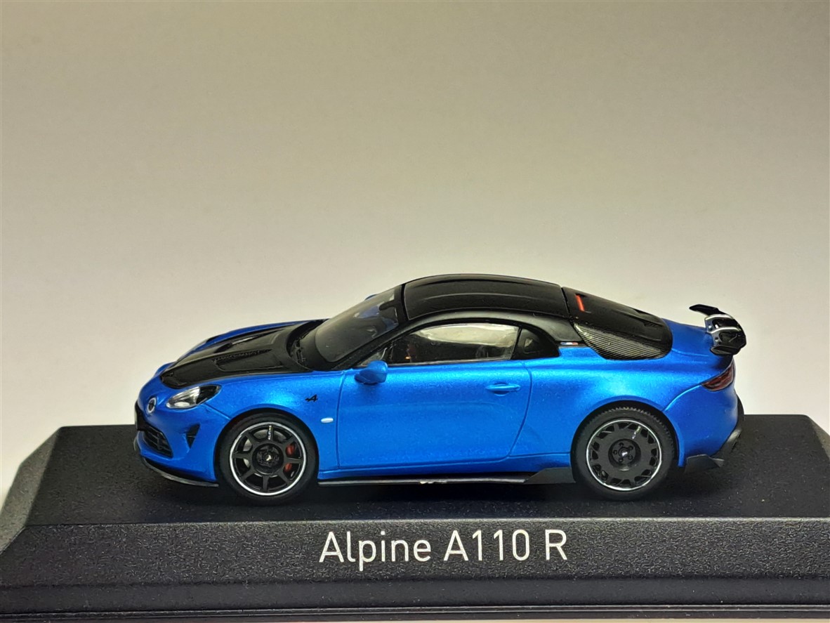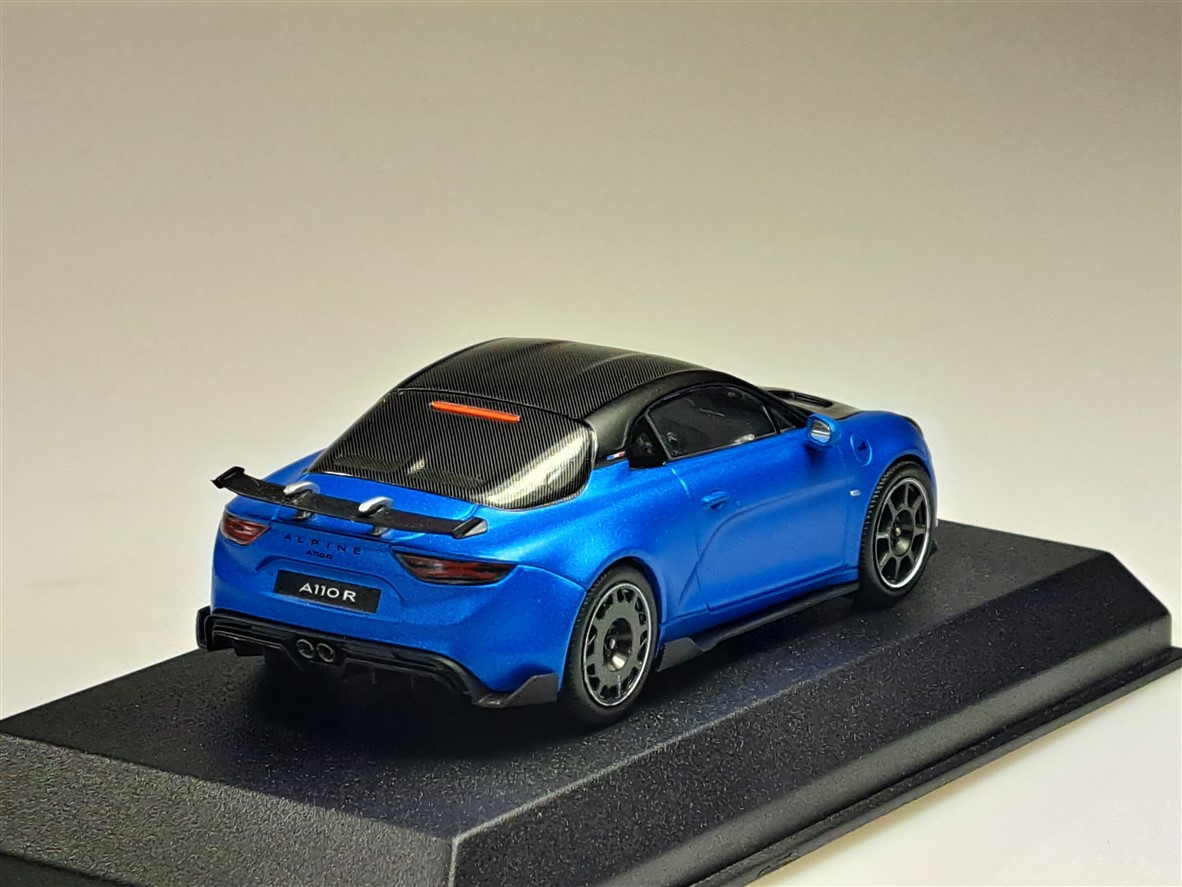 Kolekcjonerski model metalowy z elementami plastikowymi samochodu ALPINE A110 R z roku 2023 w kolorze Matt Alpine Blue.Model na podstawce,posiada akrylową gablotkę ekspozycyjną,nie posiada otwieranych elementów.
