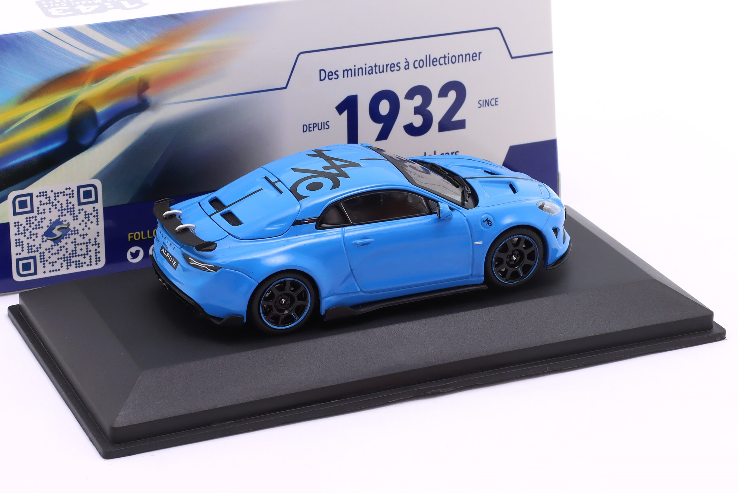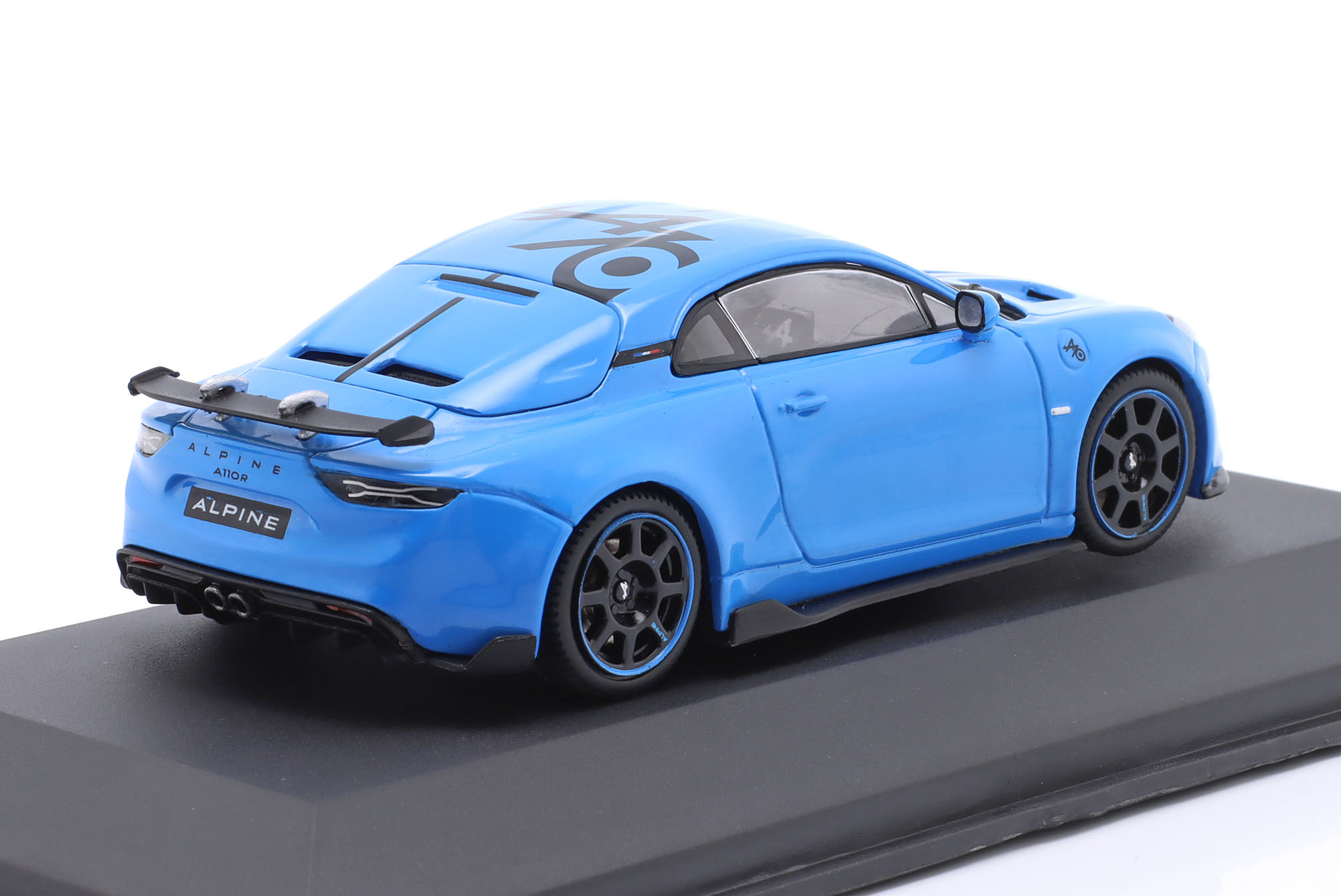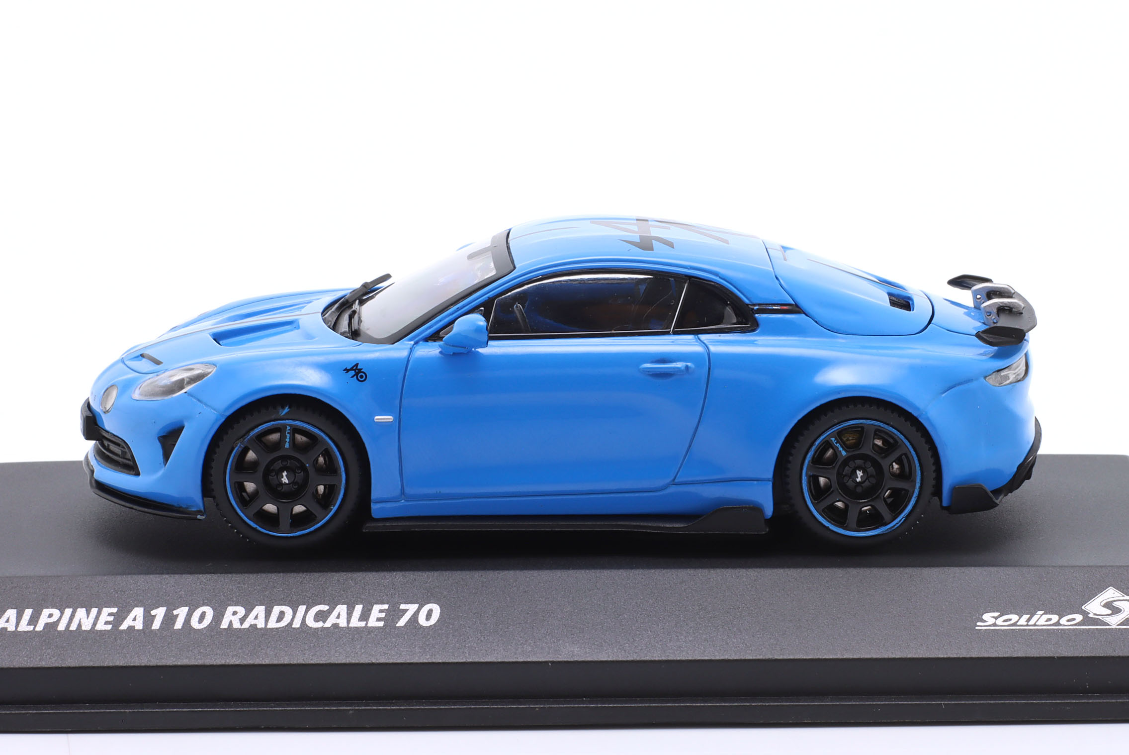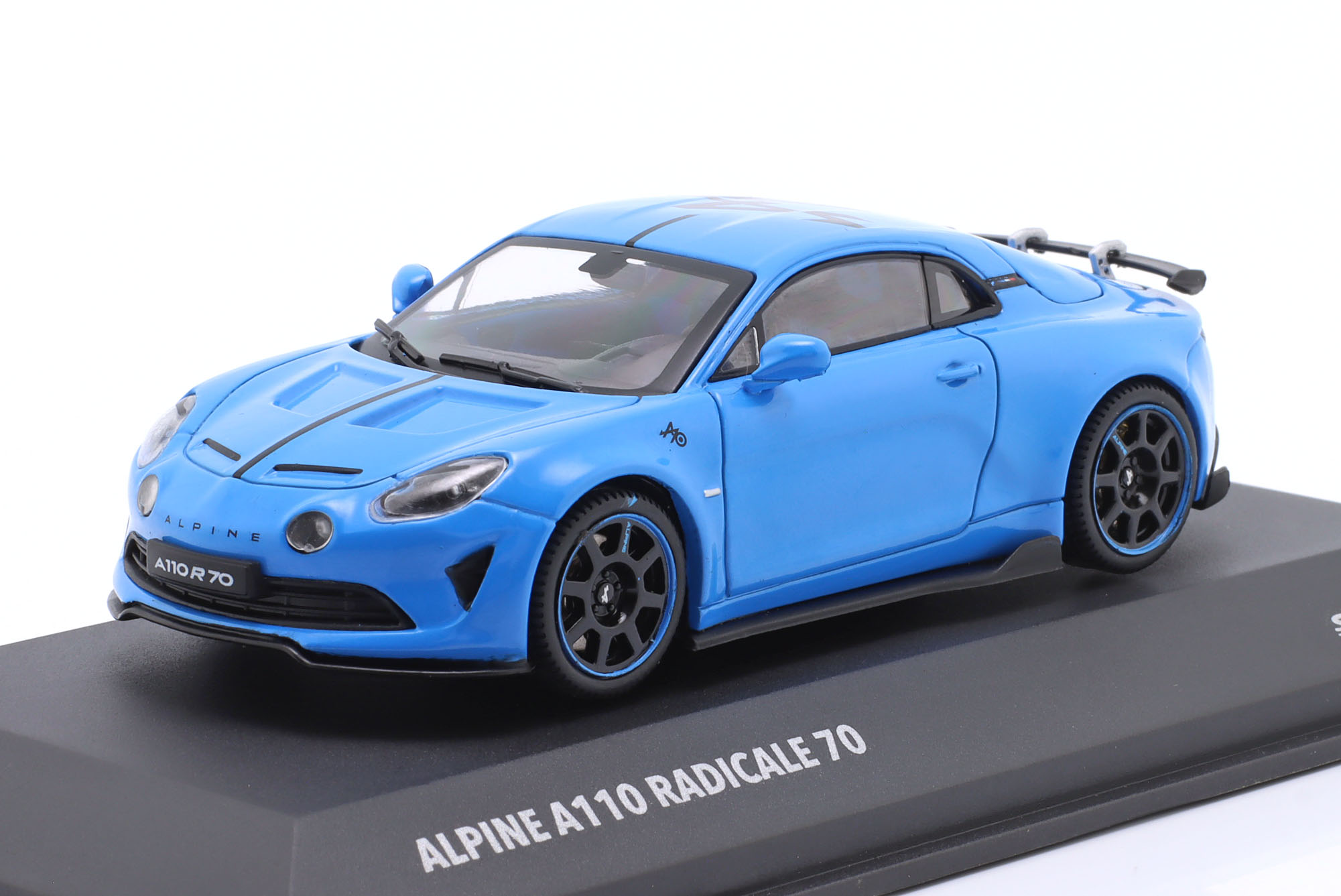 Kolekcjonerski model metalowy z elementami plastikowymi samochodu ALPINE A110 Radicale 70 z roku 2024 w kolorze Niebieskim.Model posiada podstawkę oraz gablotkę ekspozycyjną.