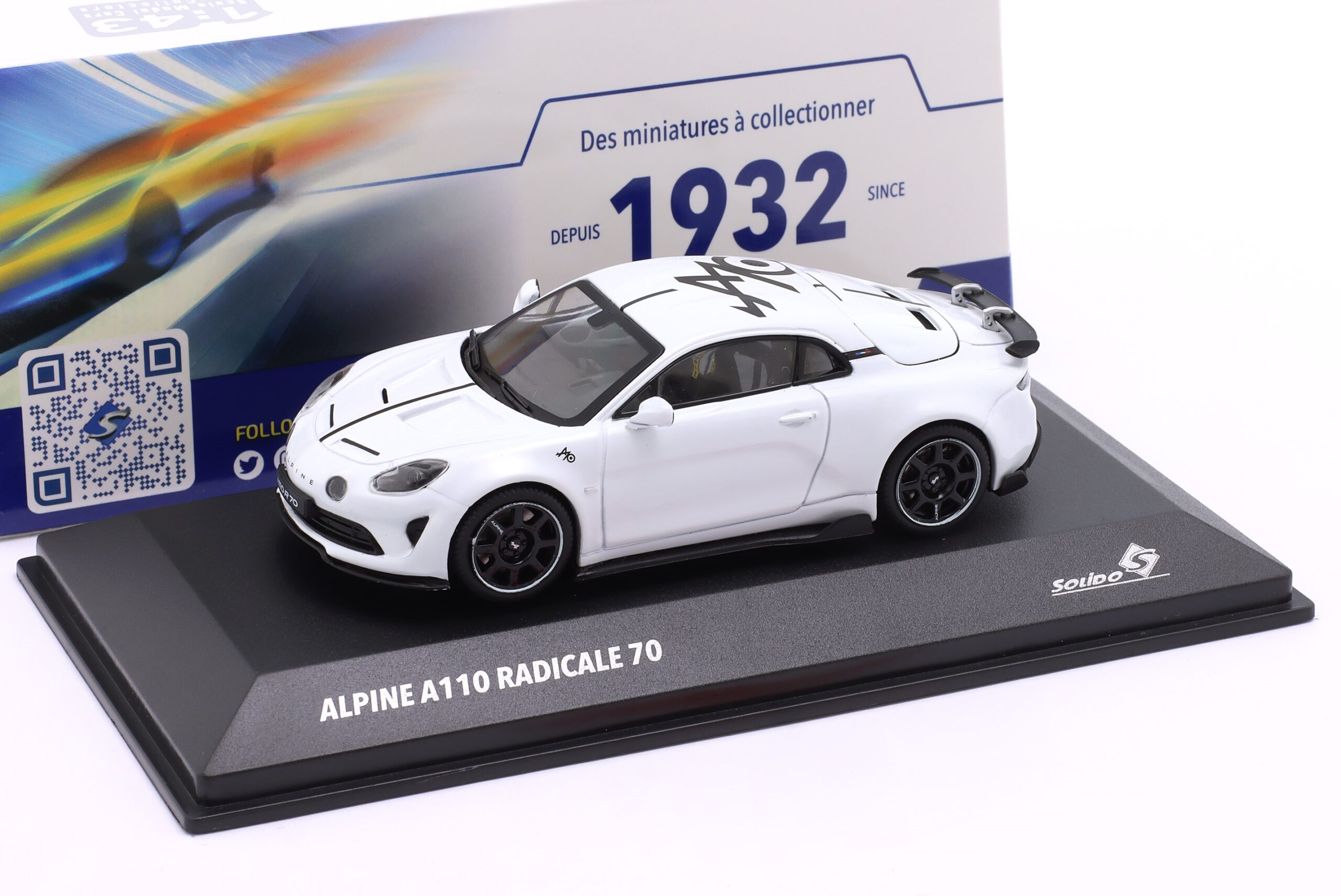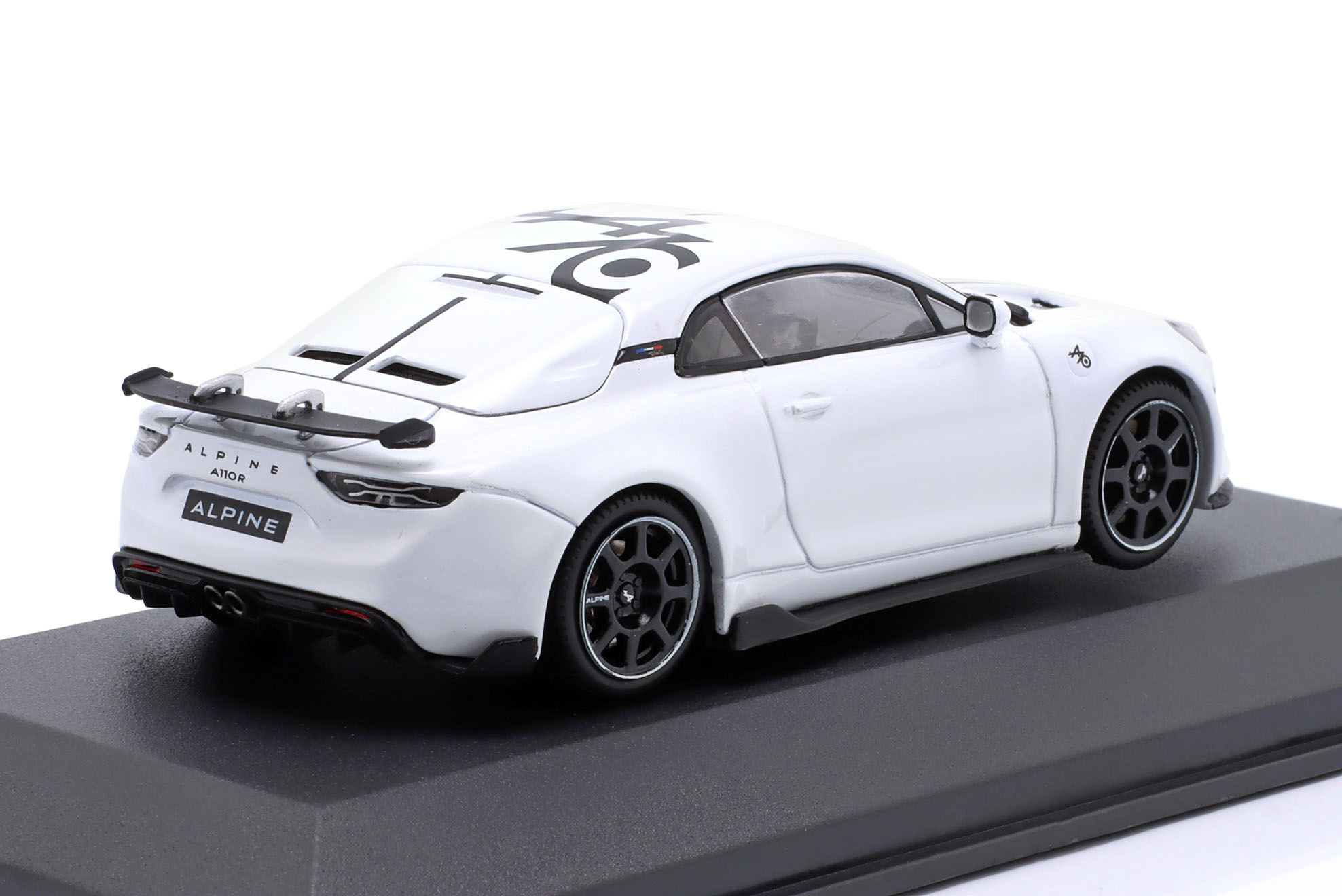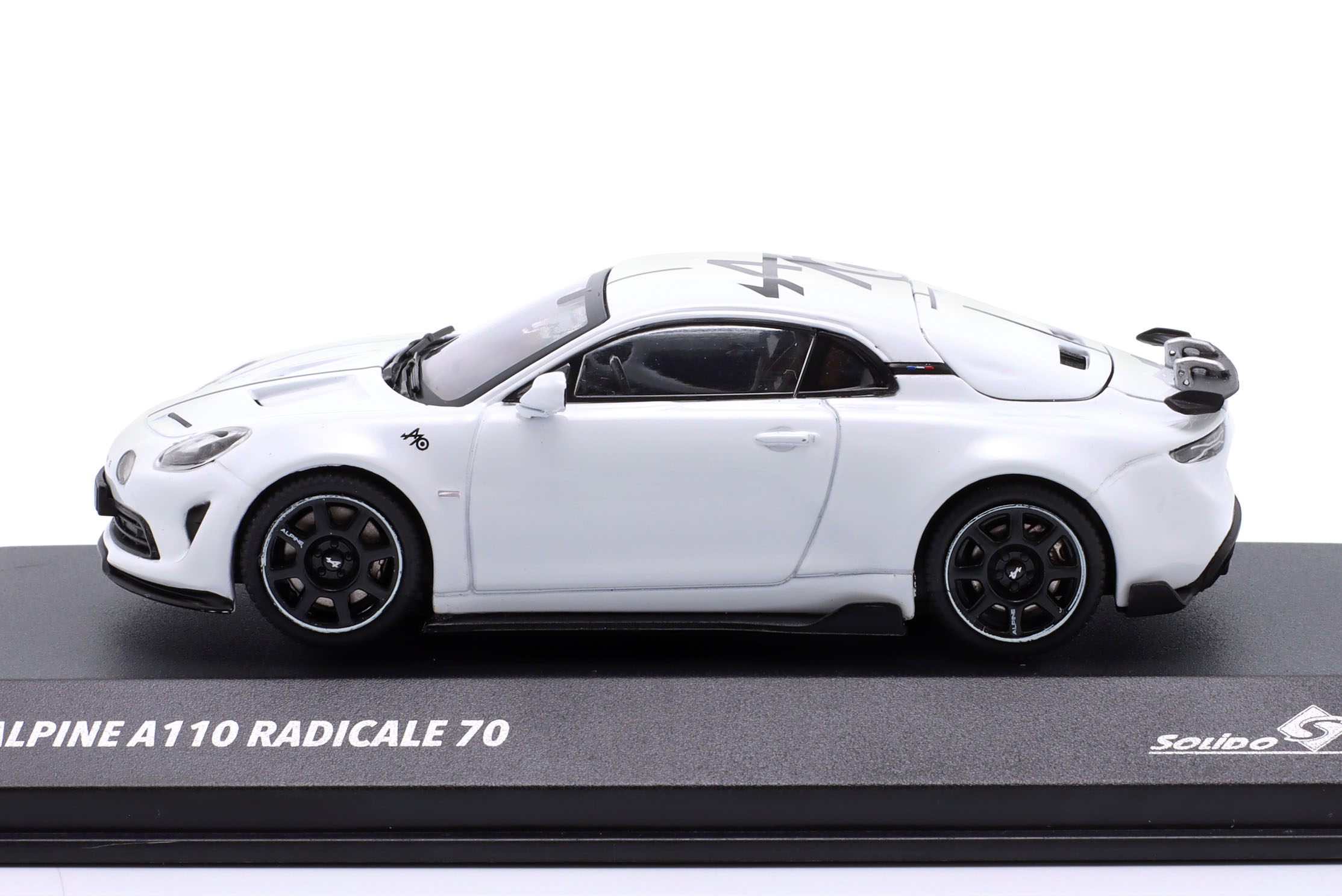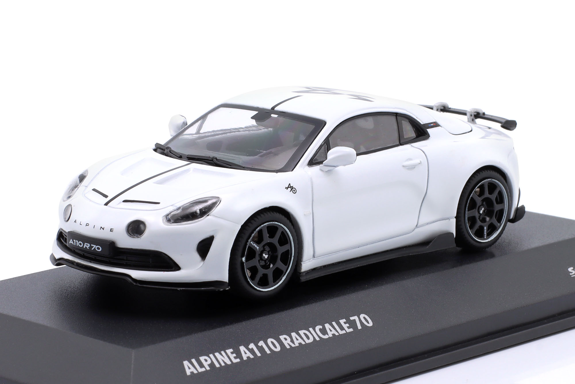 Kolekcjonerski model metalowy z elementami plastikowymi samochodu ALPINE A110 Radicale 70 z roku 2024 w kolorze Białym.Model posiada podstawkę oraz gablotkę ekspozycyjną.