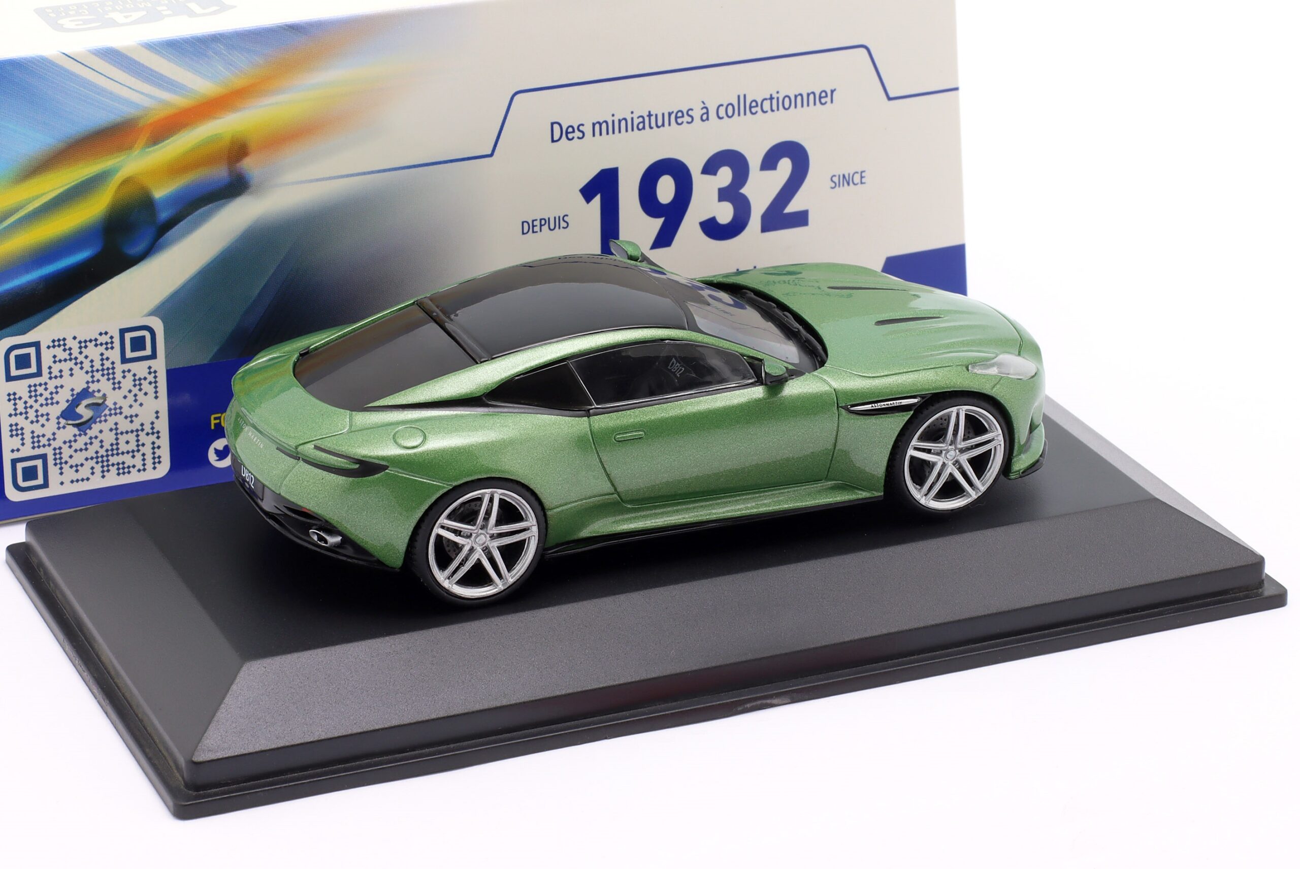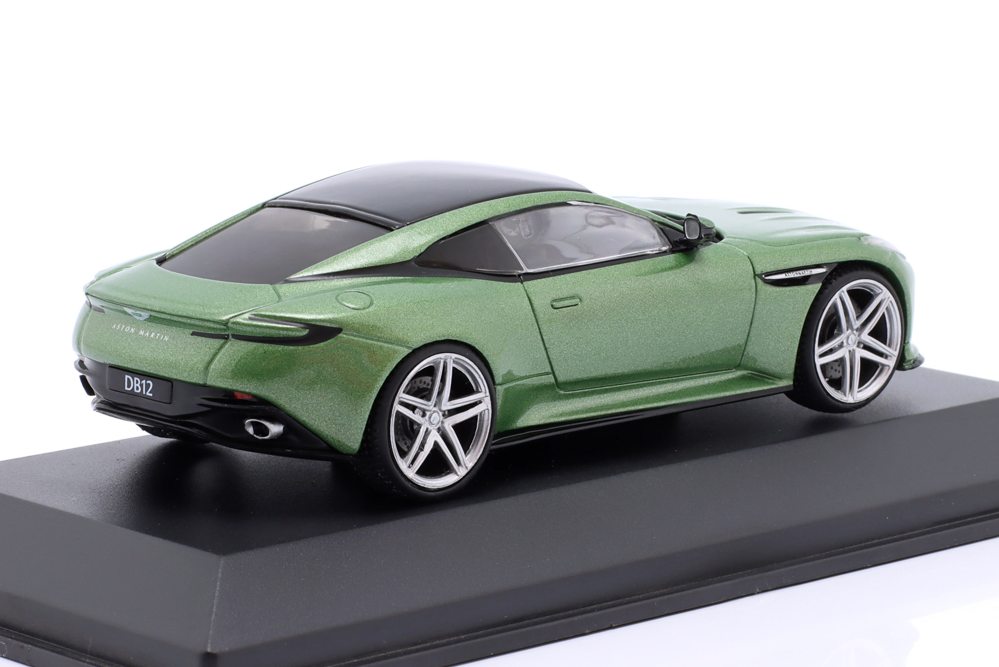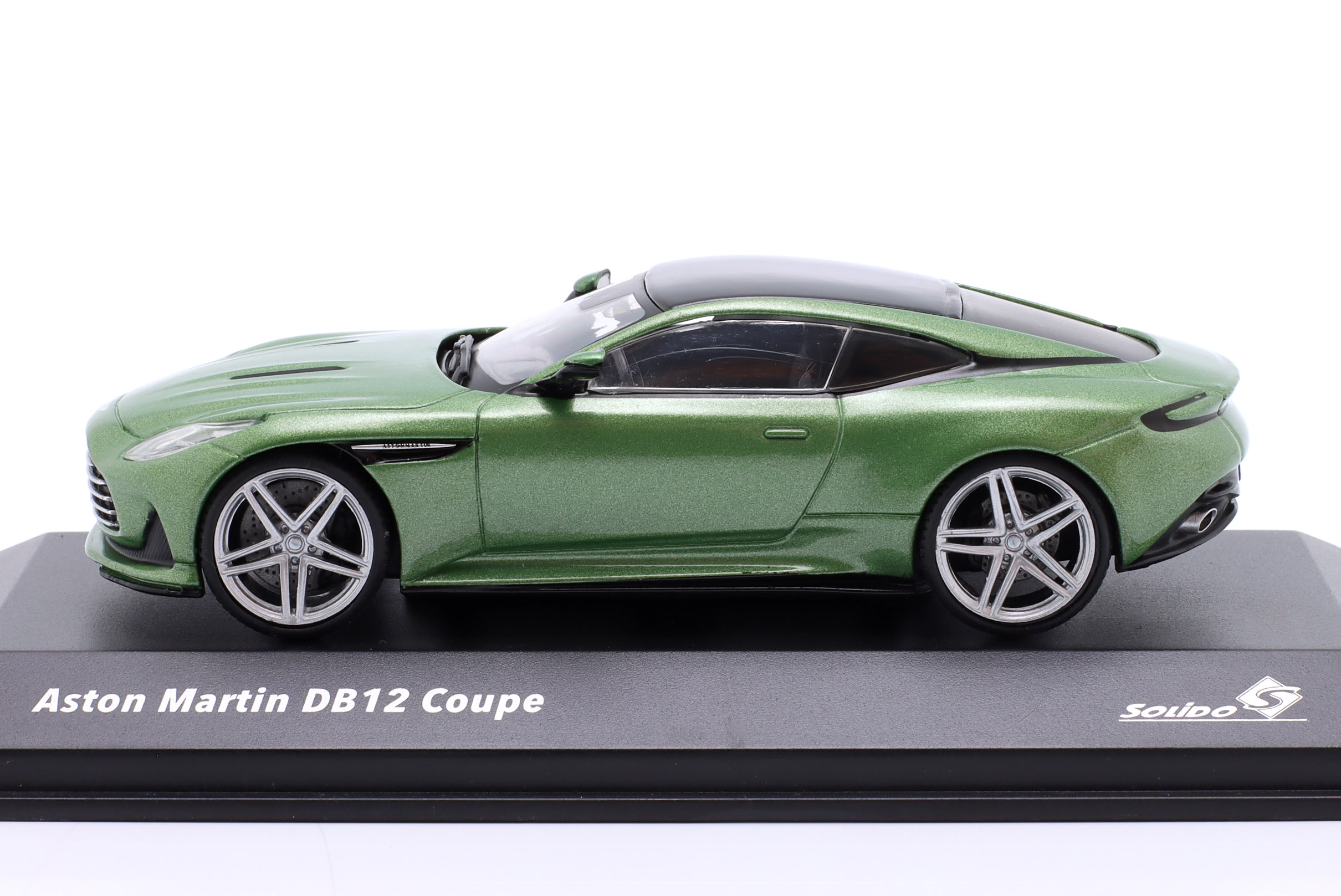 Kolekcjonerski model metalowy z elementami plastikowymi samochodu ASTON MARTIN DB12 z roku 2023 w kolorze Zielony metallic.Model na podstawce,posiada akrylową gablotkę ekspozycyjną.