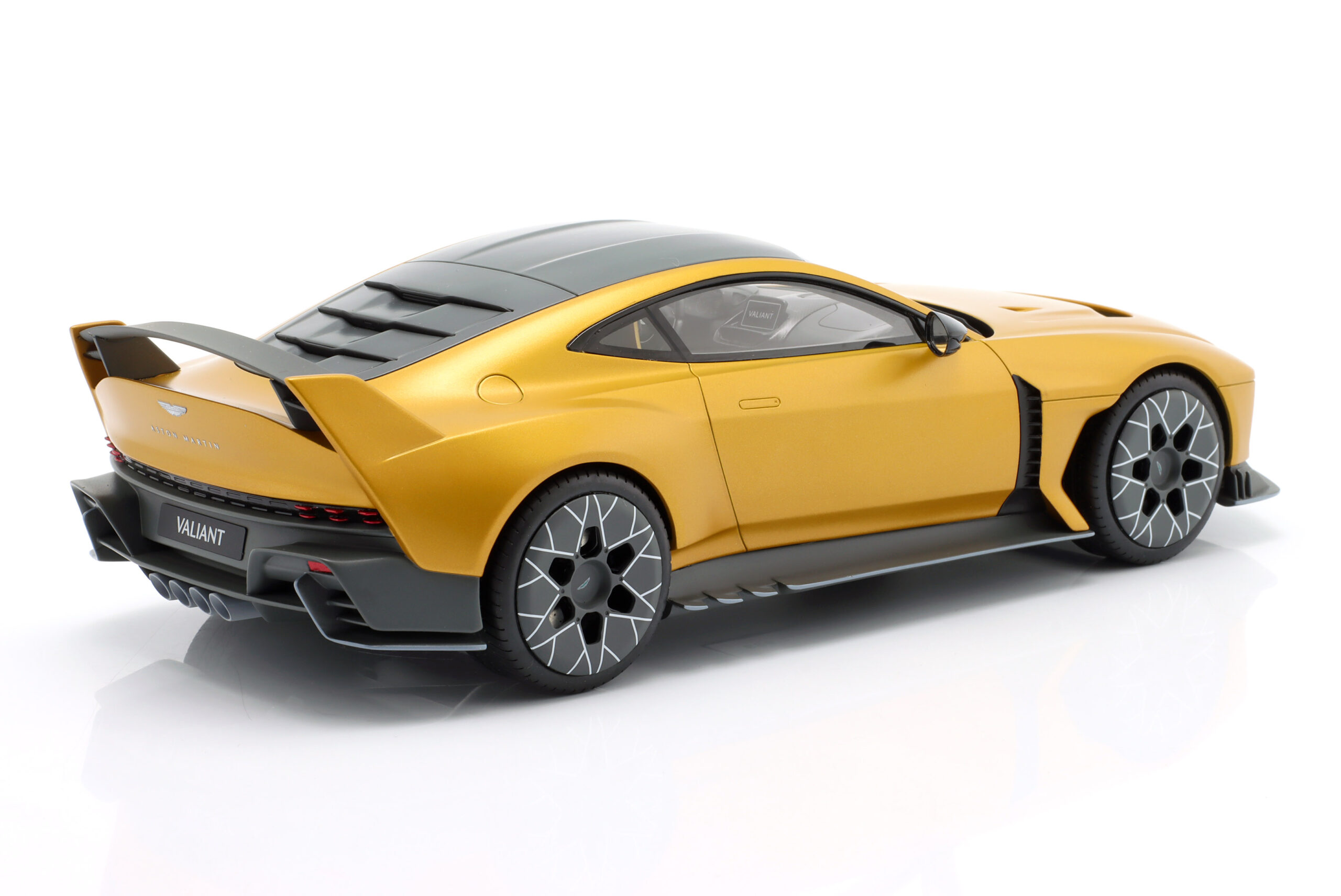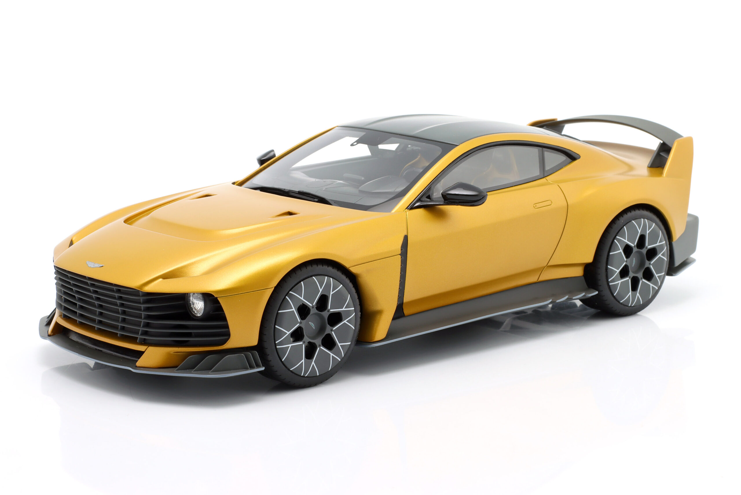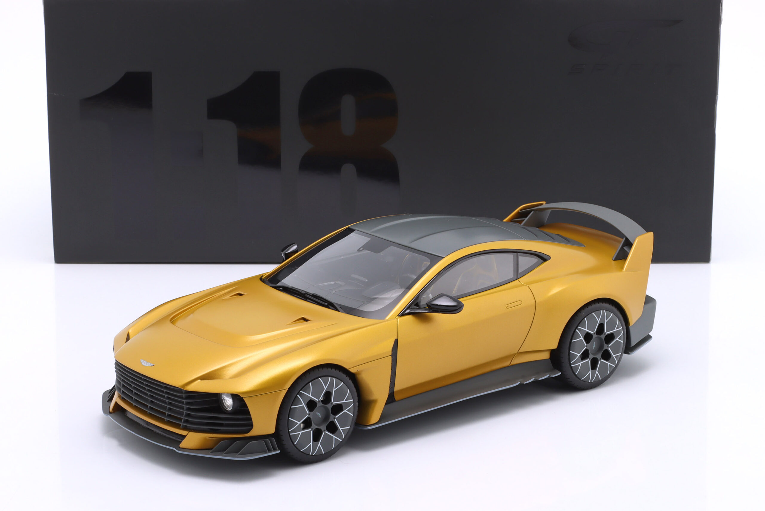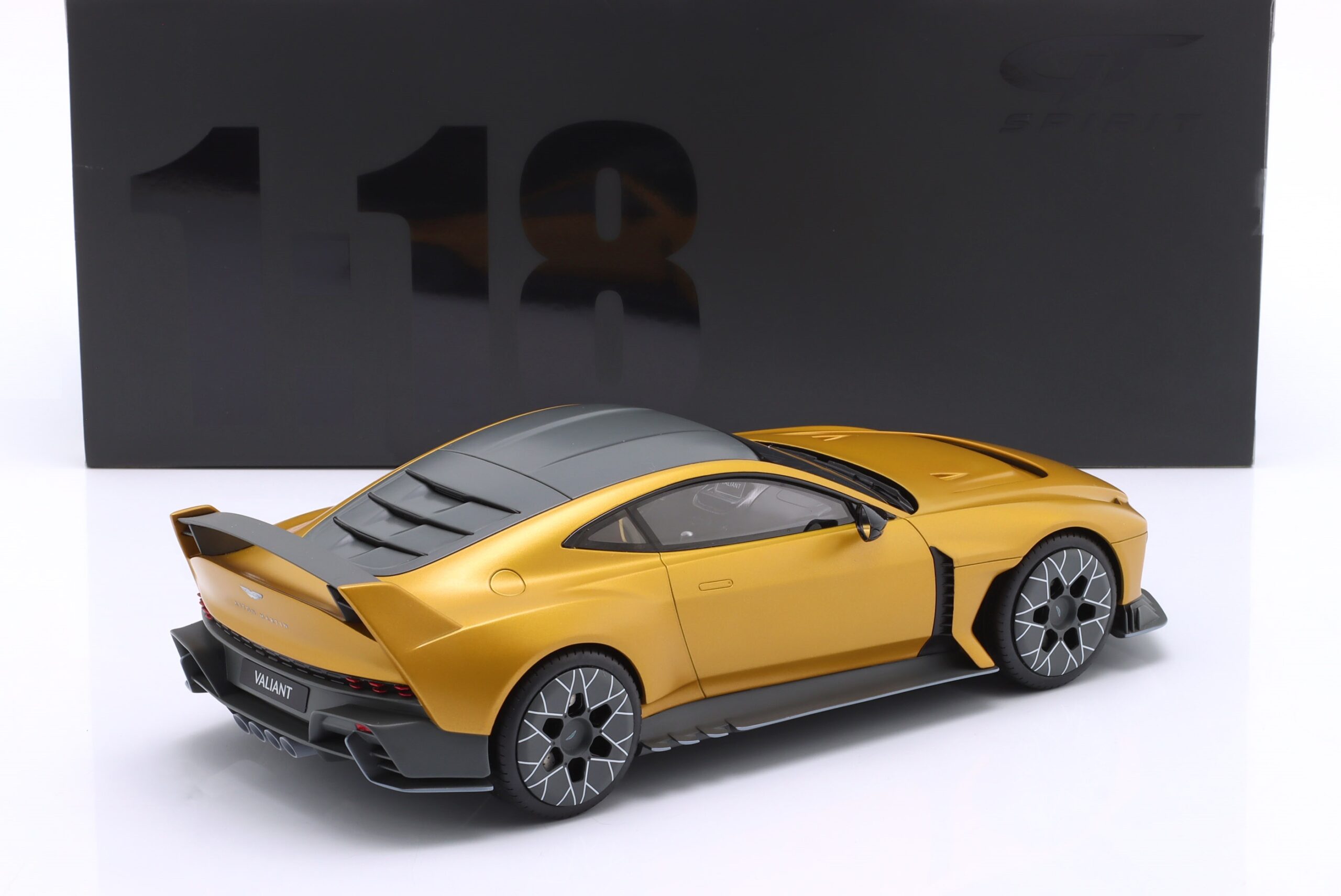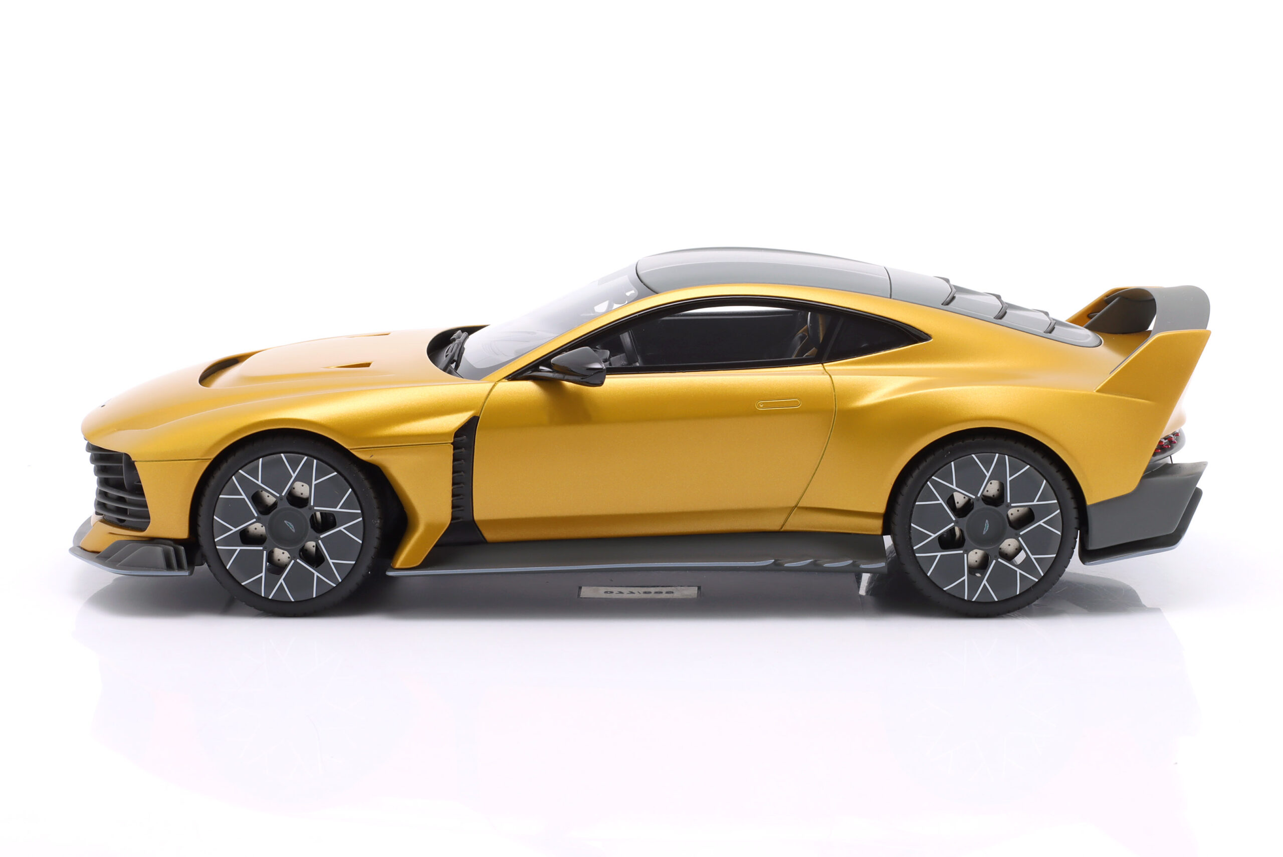 Kolekcjonerski model wykonany z żywicy samochodu ASTON MARTIN VALIANT z roku 2024 w kolorze Auric gold metallic.Model nie posiada otwieranych elementów.Edycja limitowana tylko 999 sztuk.