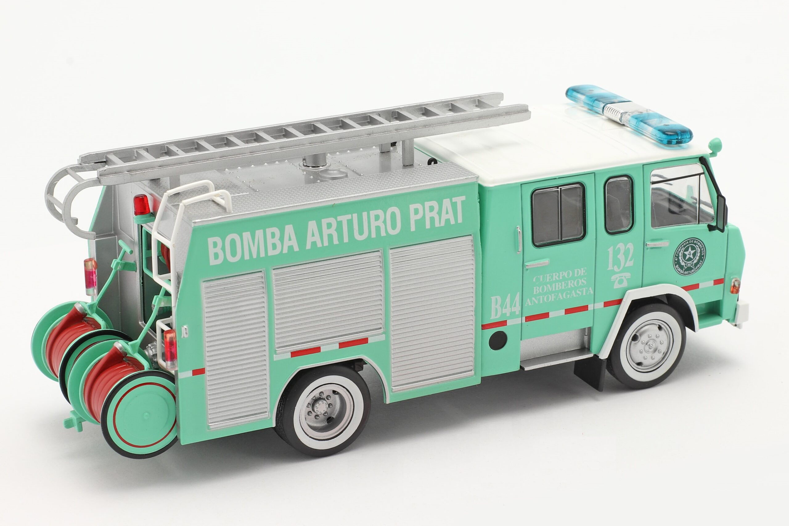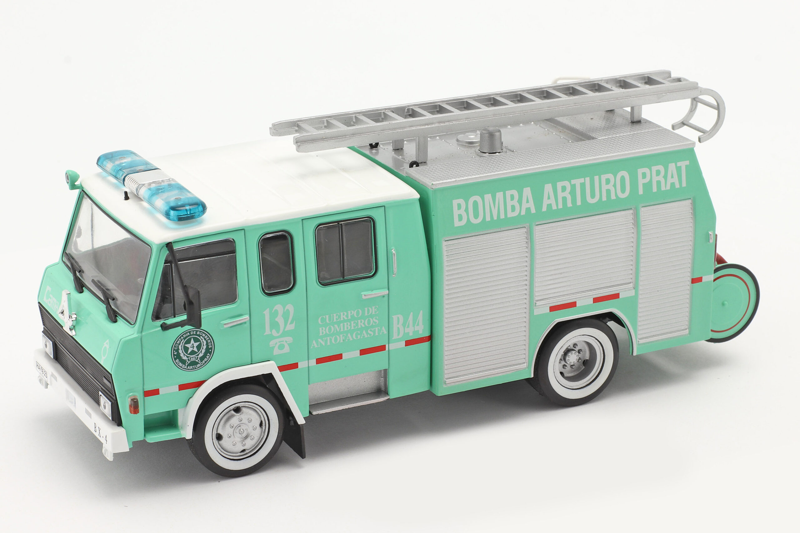 Kolekcjonerski model metalowy z elementami plastikowymi samochodu strażackiego BERLIET 770 KB 6 „bomba arturo prat” w malowaniu hiszpańskiej Straży pożarnej.Model zapakowany w blister.