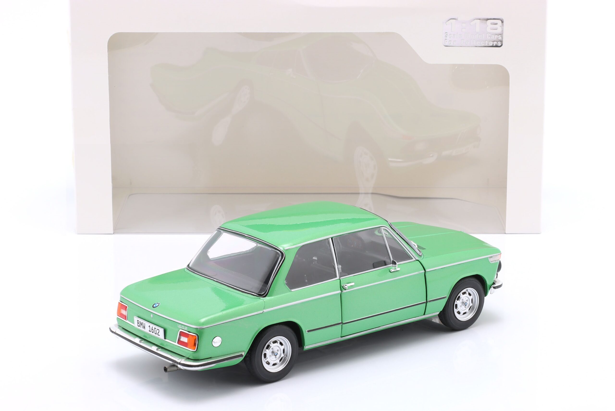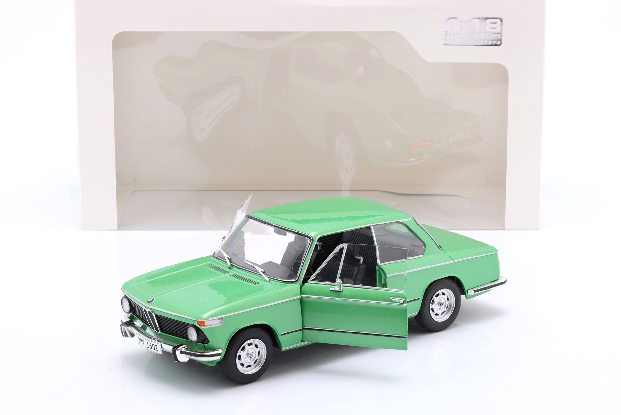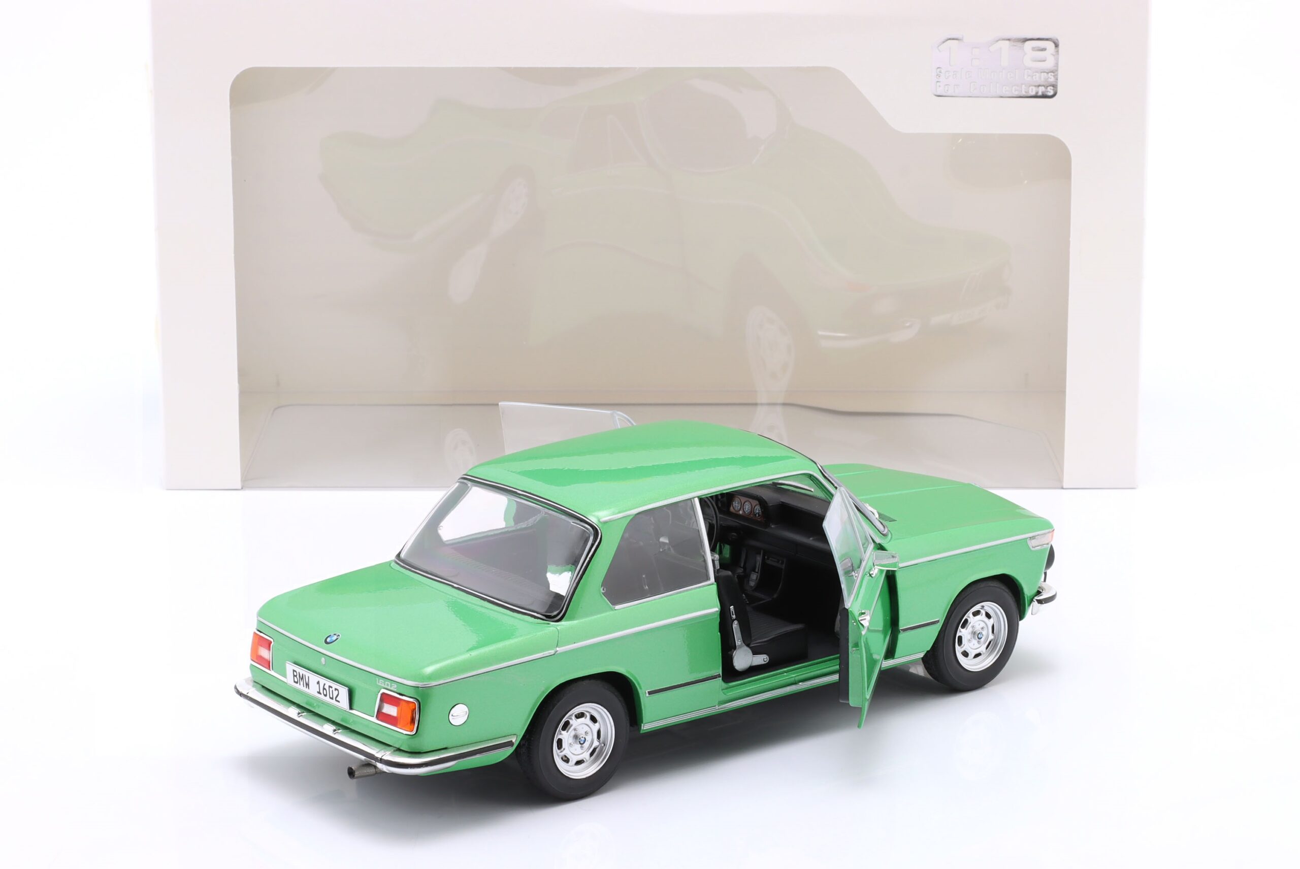 Kolekcjonerski model metalowy z elementami plastikowymi samochodu BMW 1602 Taiga z roku 1971 w kolorze Zielonym.Model posiada otwierane drzwi.