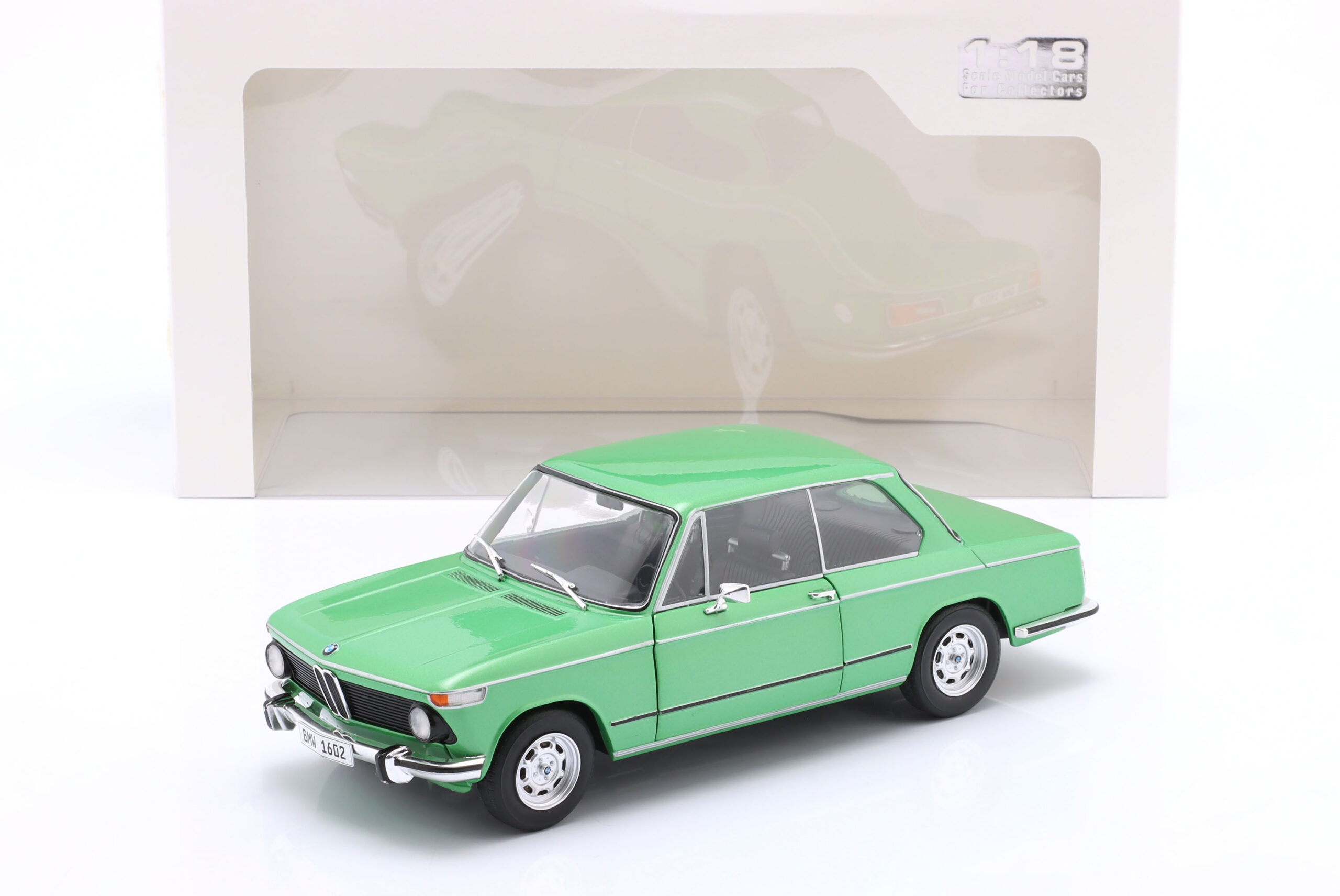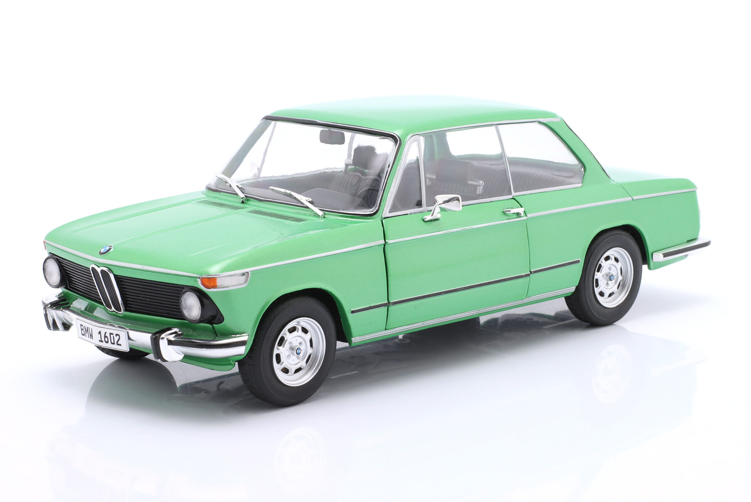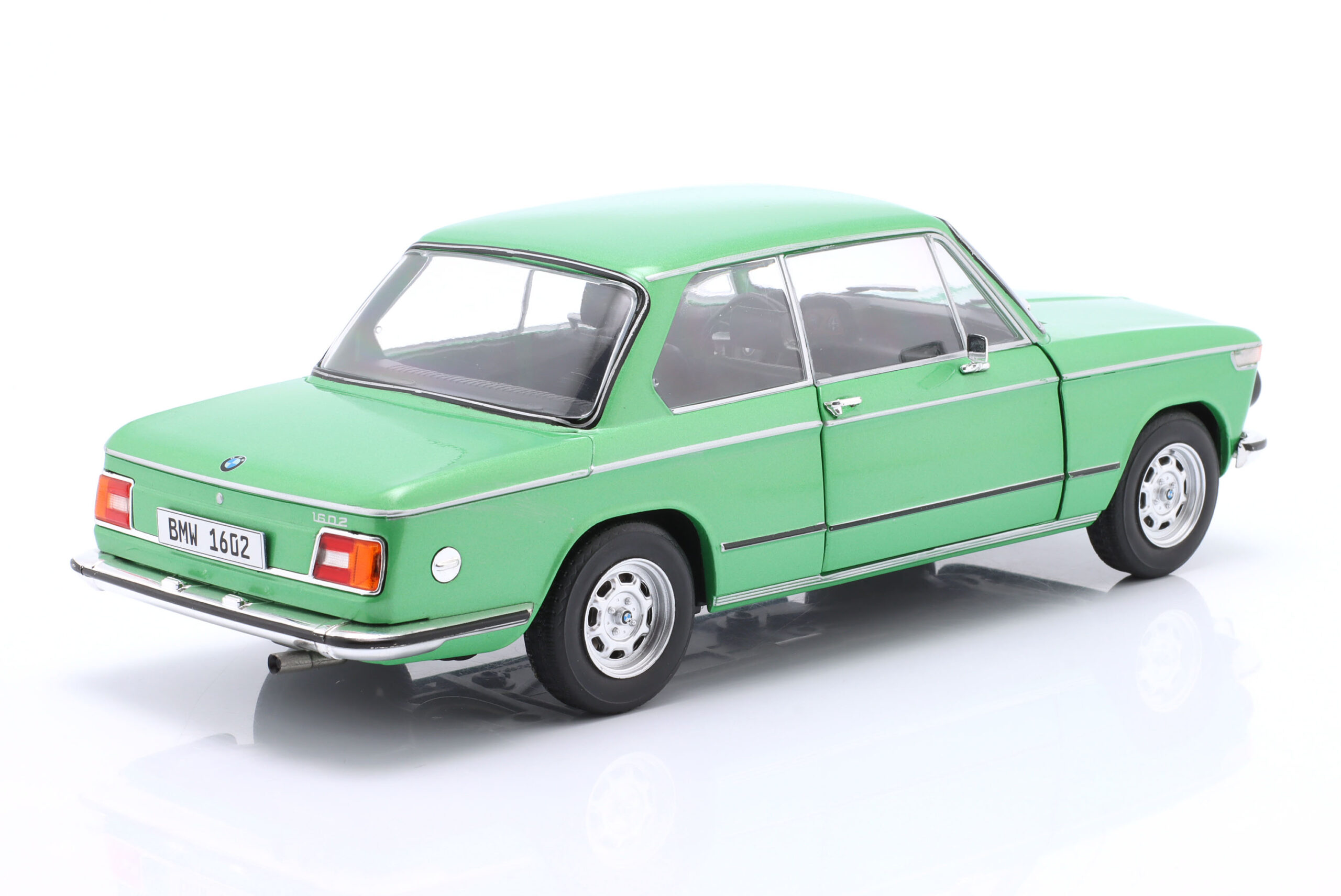 Kolekcjonerski model metalowy z elementami plastikowymi samochodu BMW 1602 Taiga z roku 1971 w kolorze Zielonym.Model posiada otwierane drzwi.