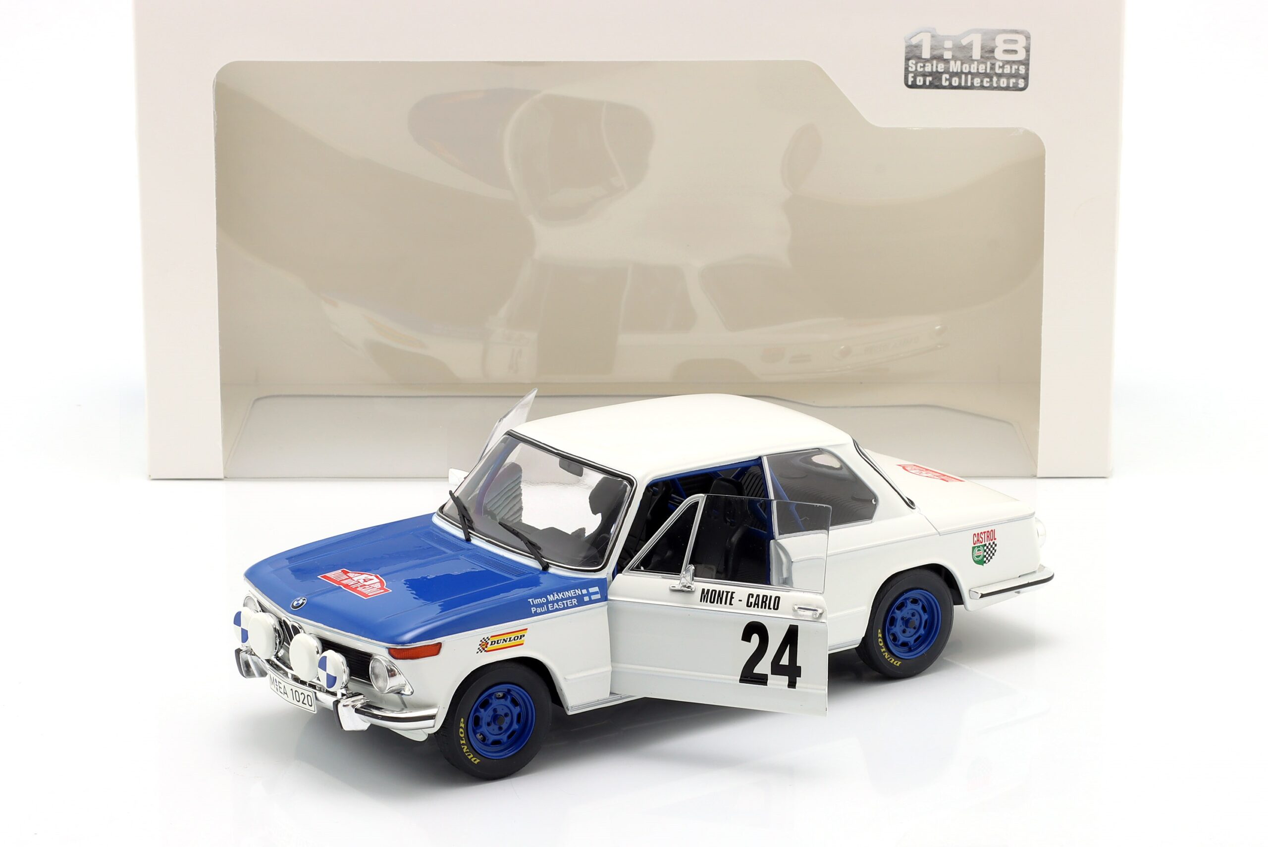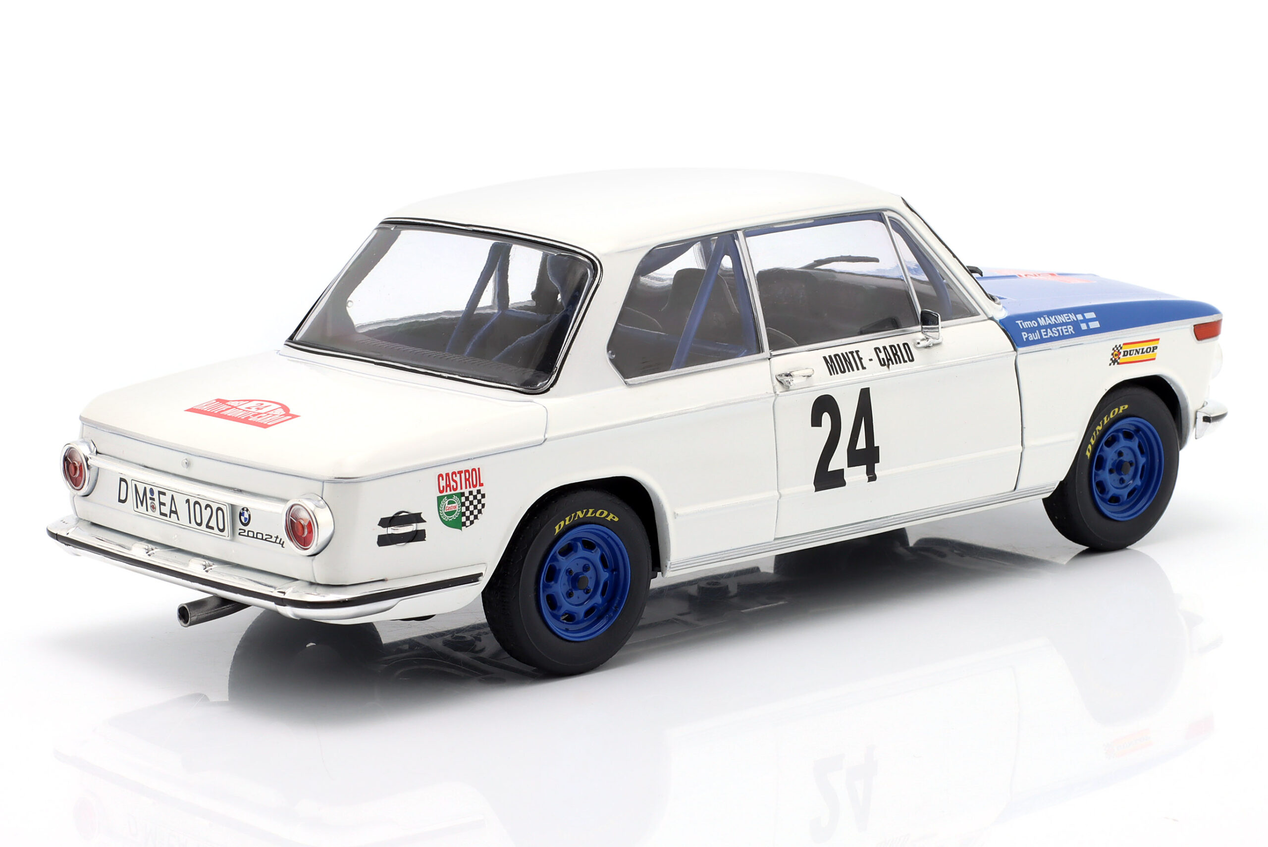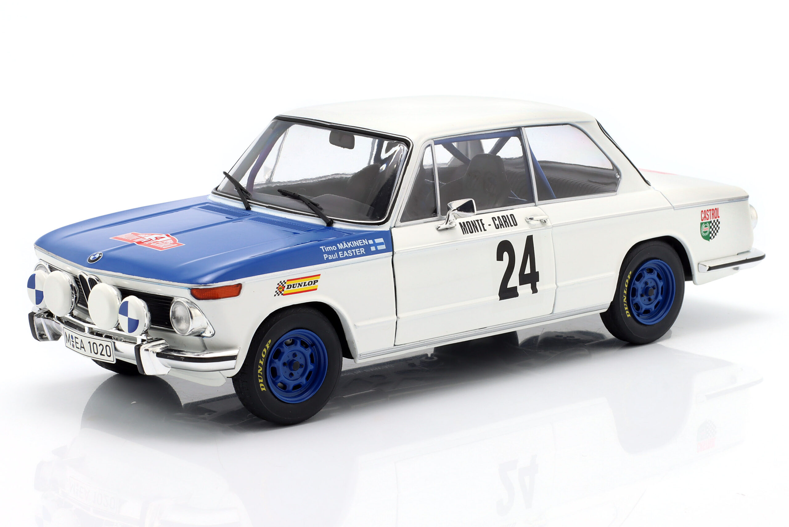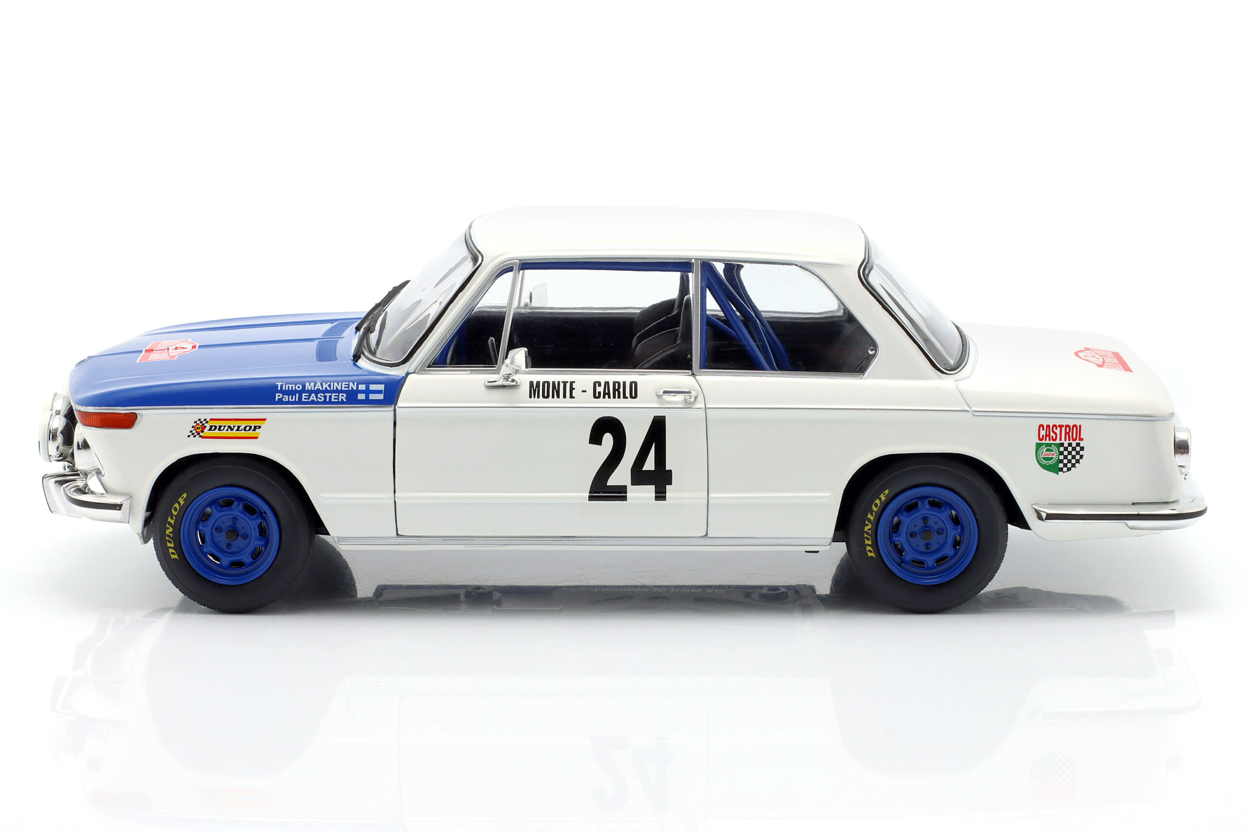 Kolekcjonerski model metalowy z elementami plastikowymi samochodu rajdowego BMW 2002 Ti #24,w którym załoga T.Makinen/P.Easter startowała w Rajdzie Monte Carlo w roku 1969.