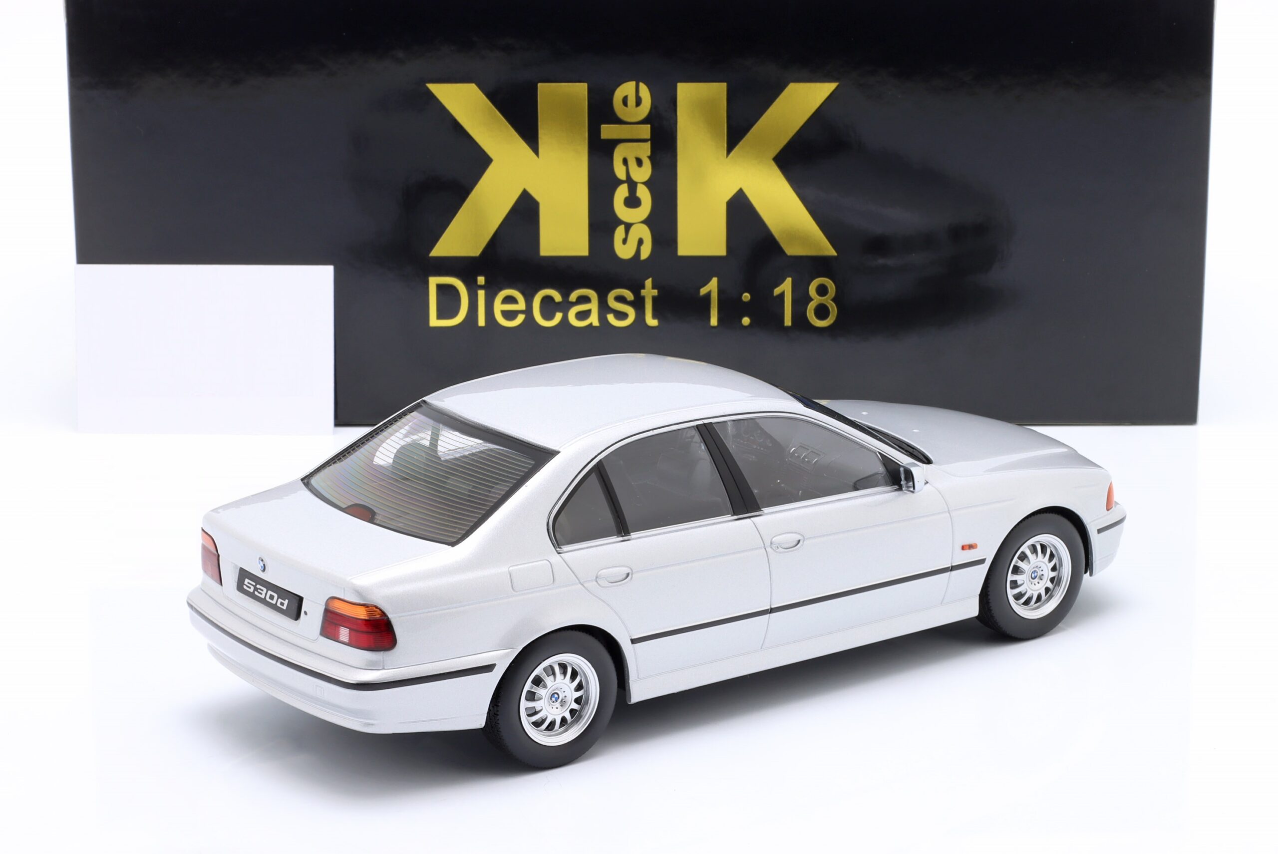 Kolekcjonerski model metalowy z elementami plastikowymi samochodu BMW 530D (E39) Sedan z roku 1995 w kolorze Srebrnym.Model nie posiada otwieranych elementów.