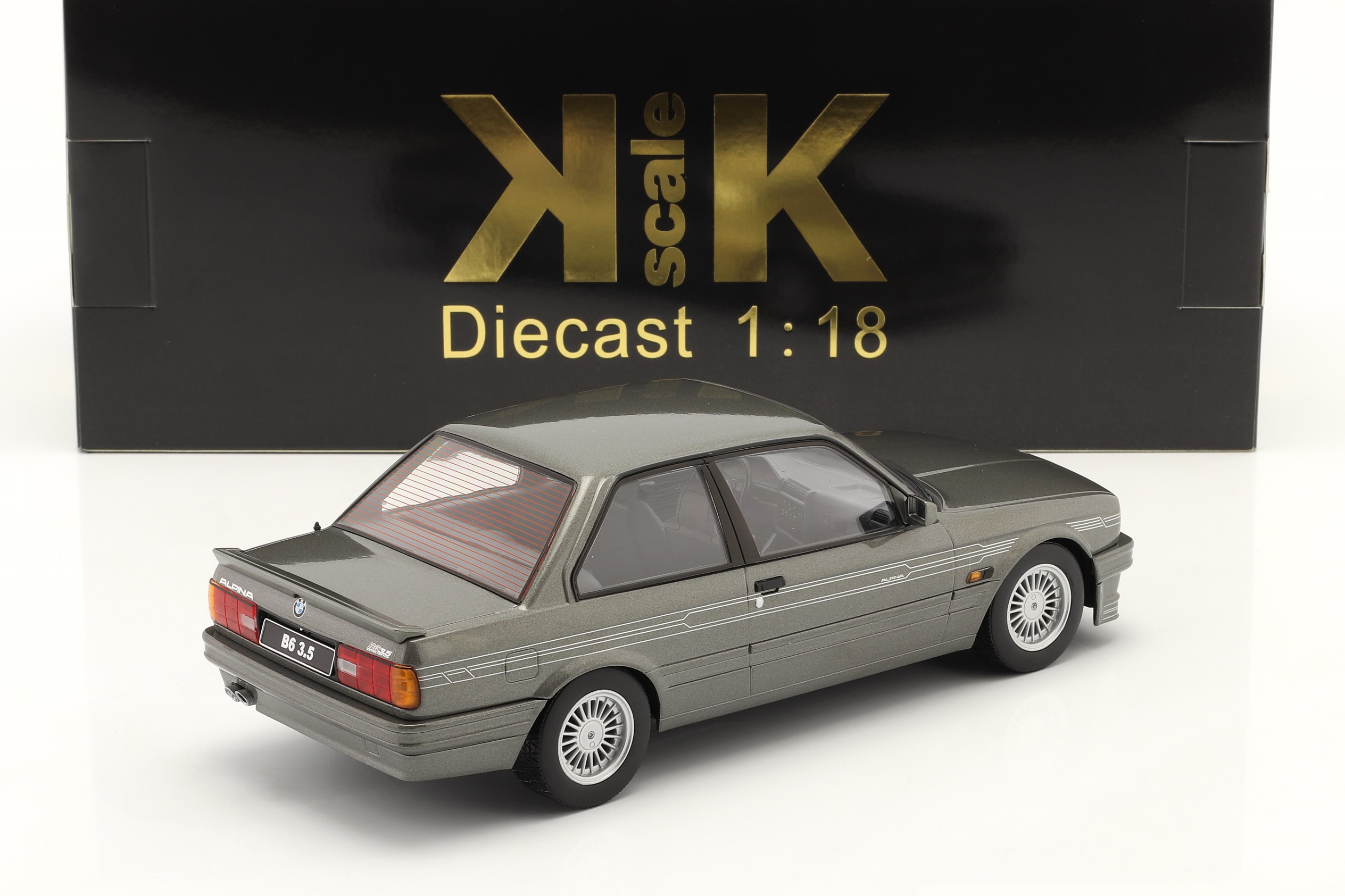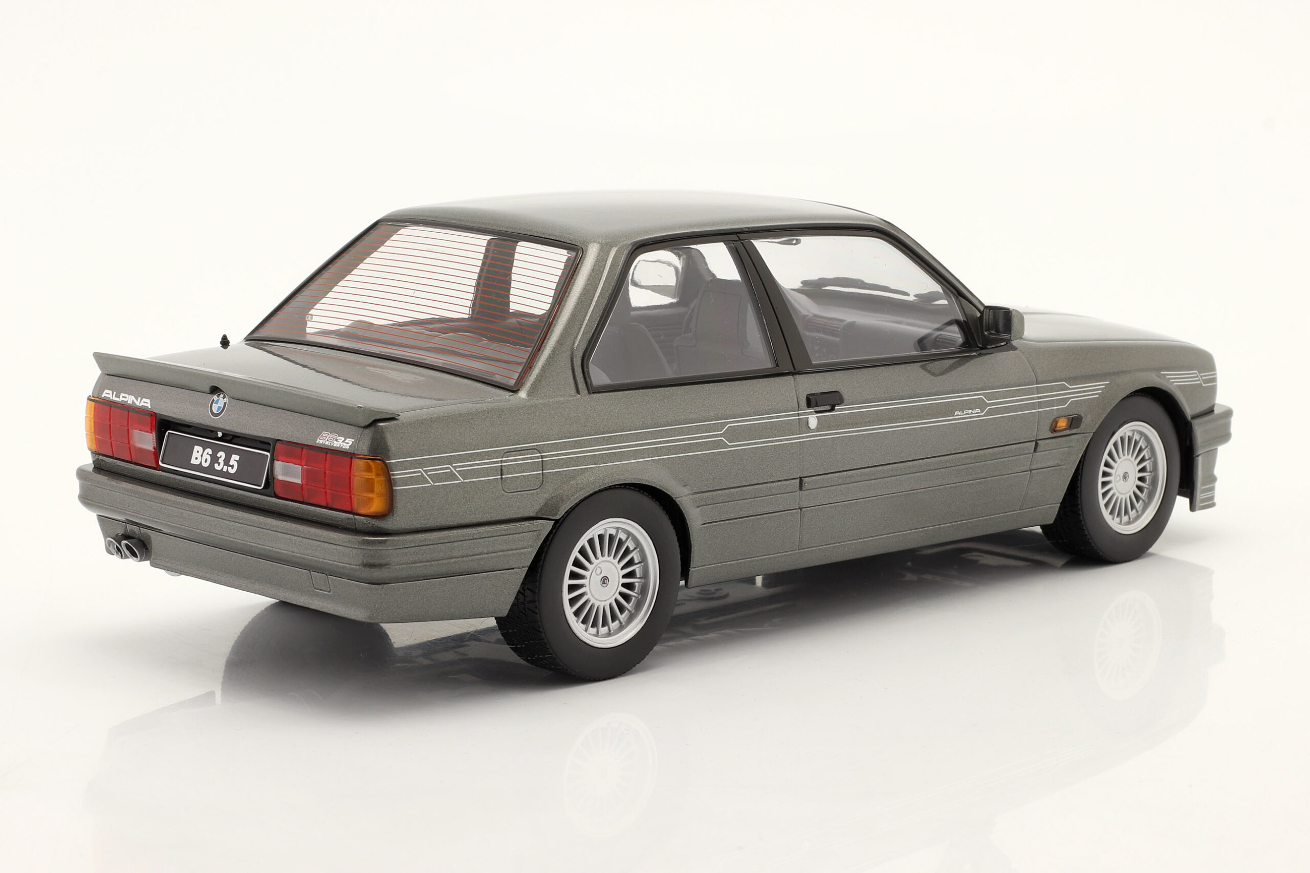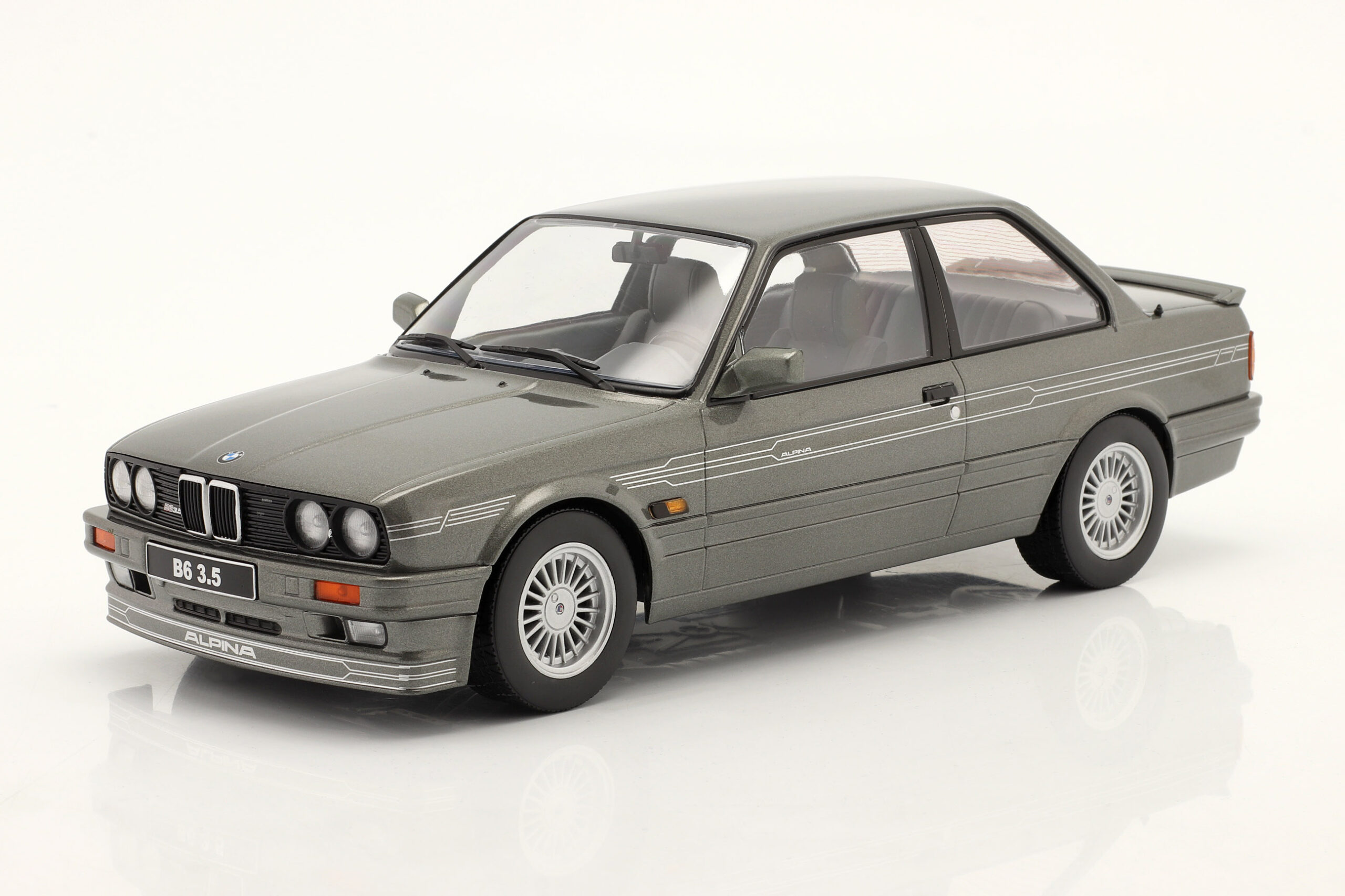 Kolekcjonerski model metalowy z elementami plastikowymi samochodu BMW ALPINA B6 3.5 (E30) z roku 1988 w kolorze Szary metallic.Model nie posiada otwieranych elementów.