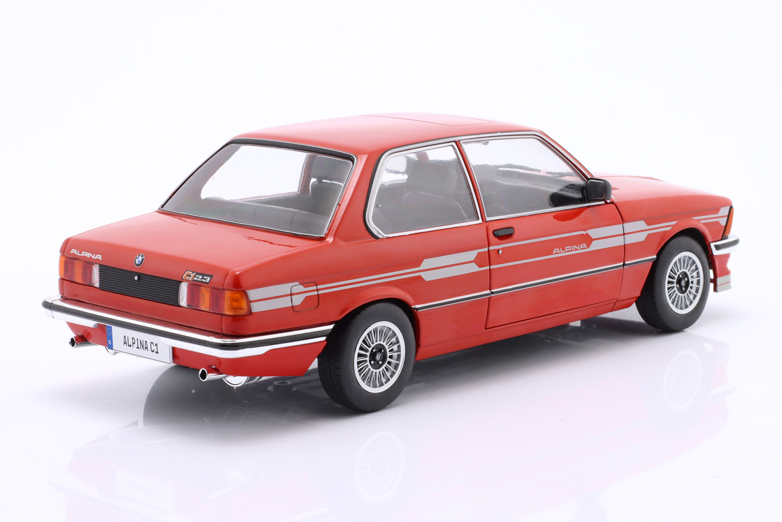 Kolekcjonerski model metalowy z elementami plastikowymi samochodu BMW ALPINA C1 (E21) 2,3 z roku 1980 w kolorze Czerwonym.Model posiada otwierane drzwi.
