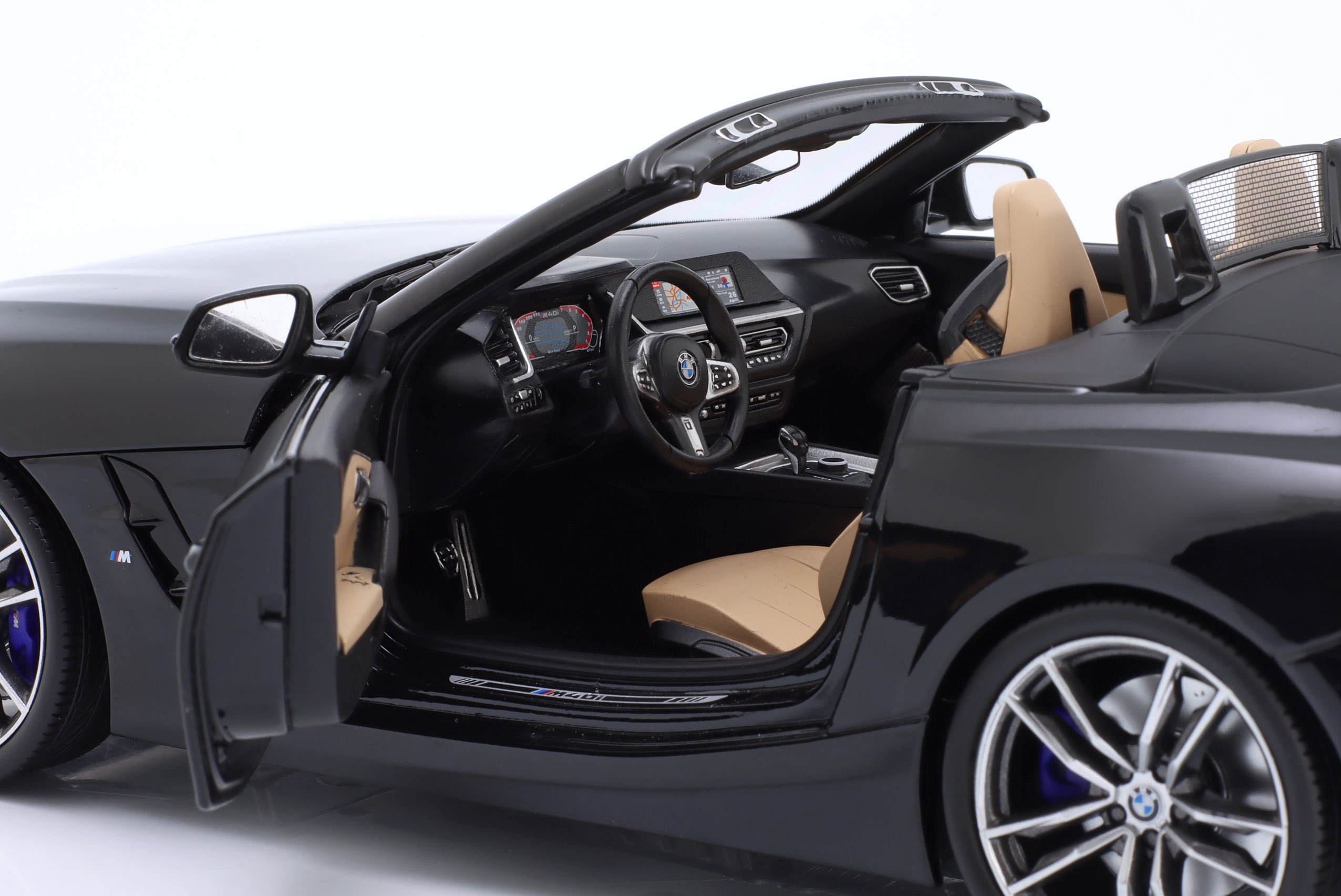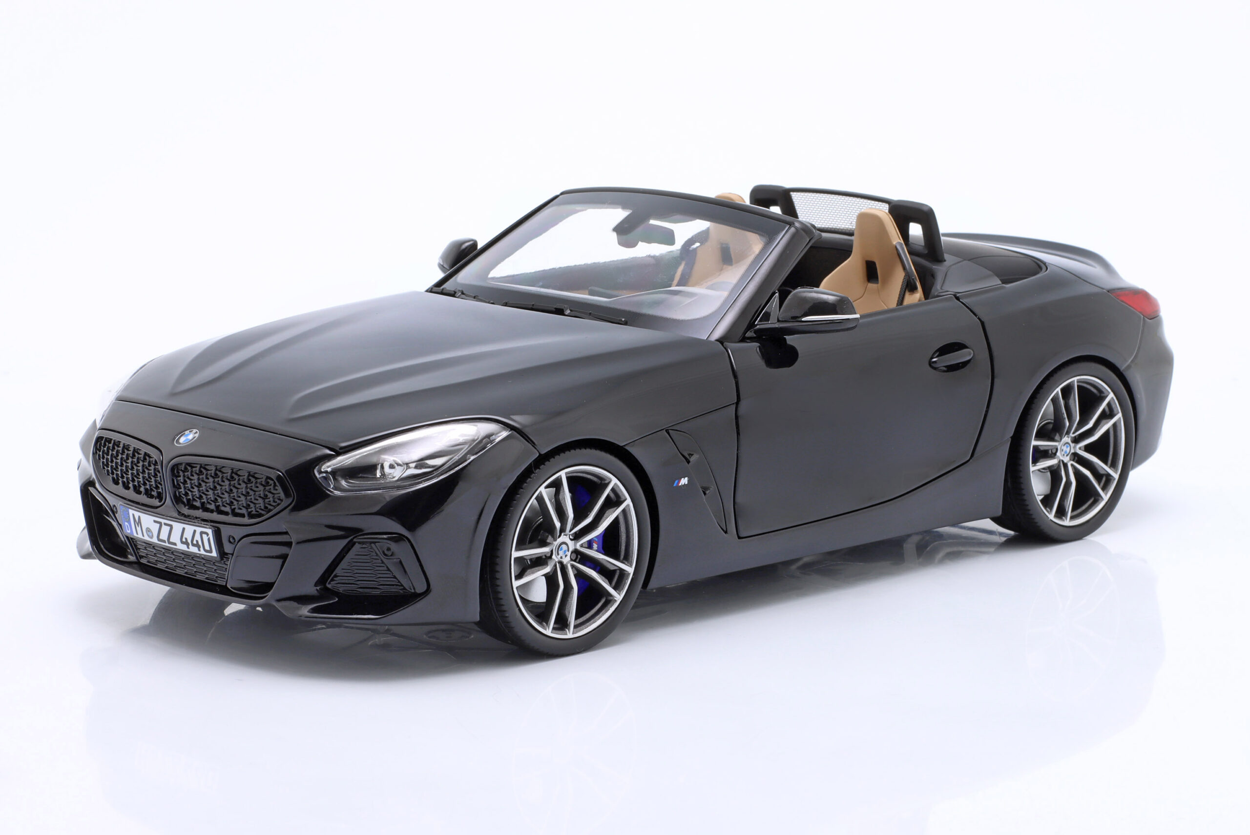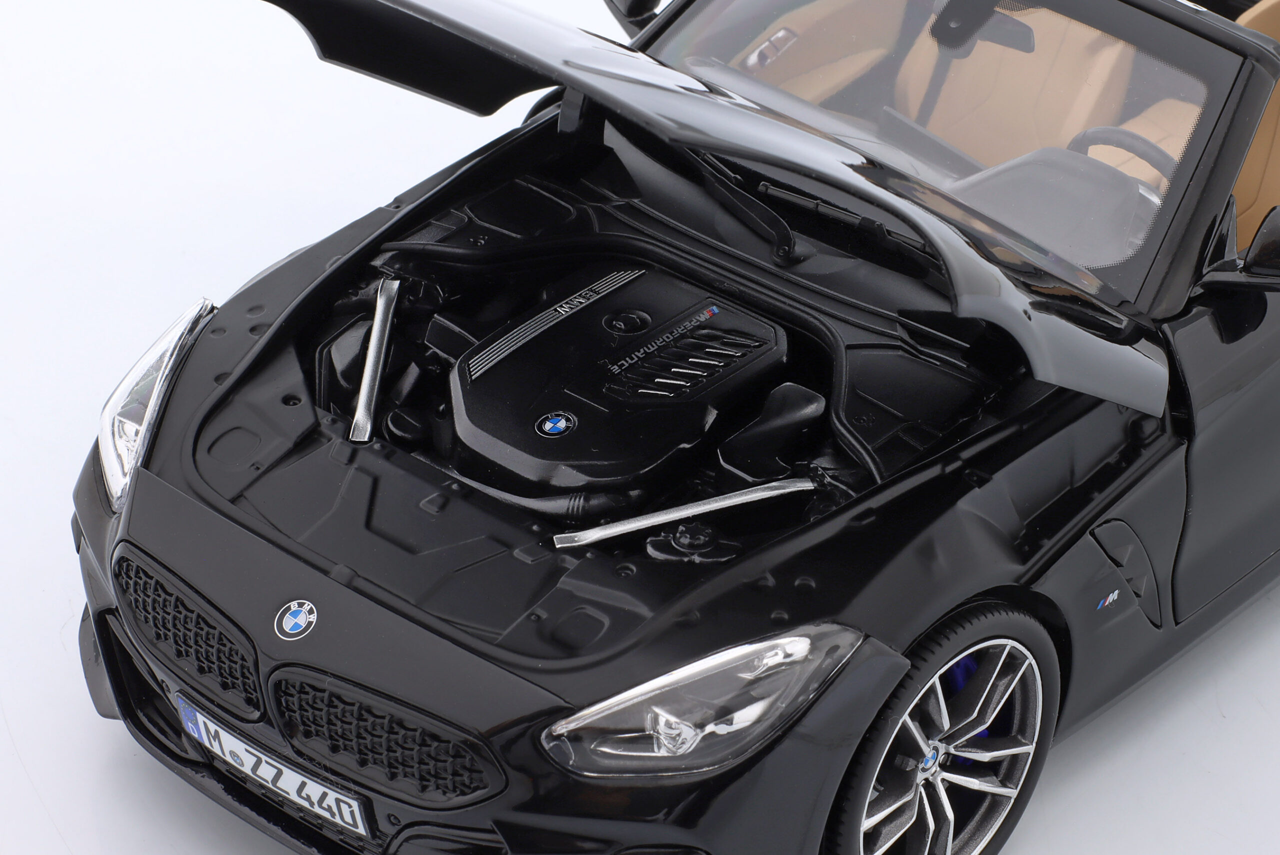 Kolekcjonerski model metalowy z elementami plastikowymi samochodu BMW Z4 z roku 2019 w kolorze Czarny metallic.