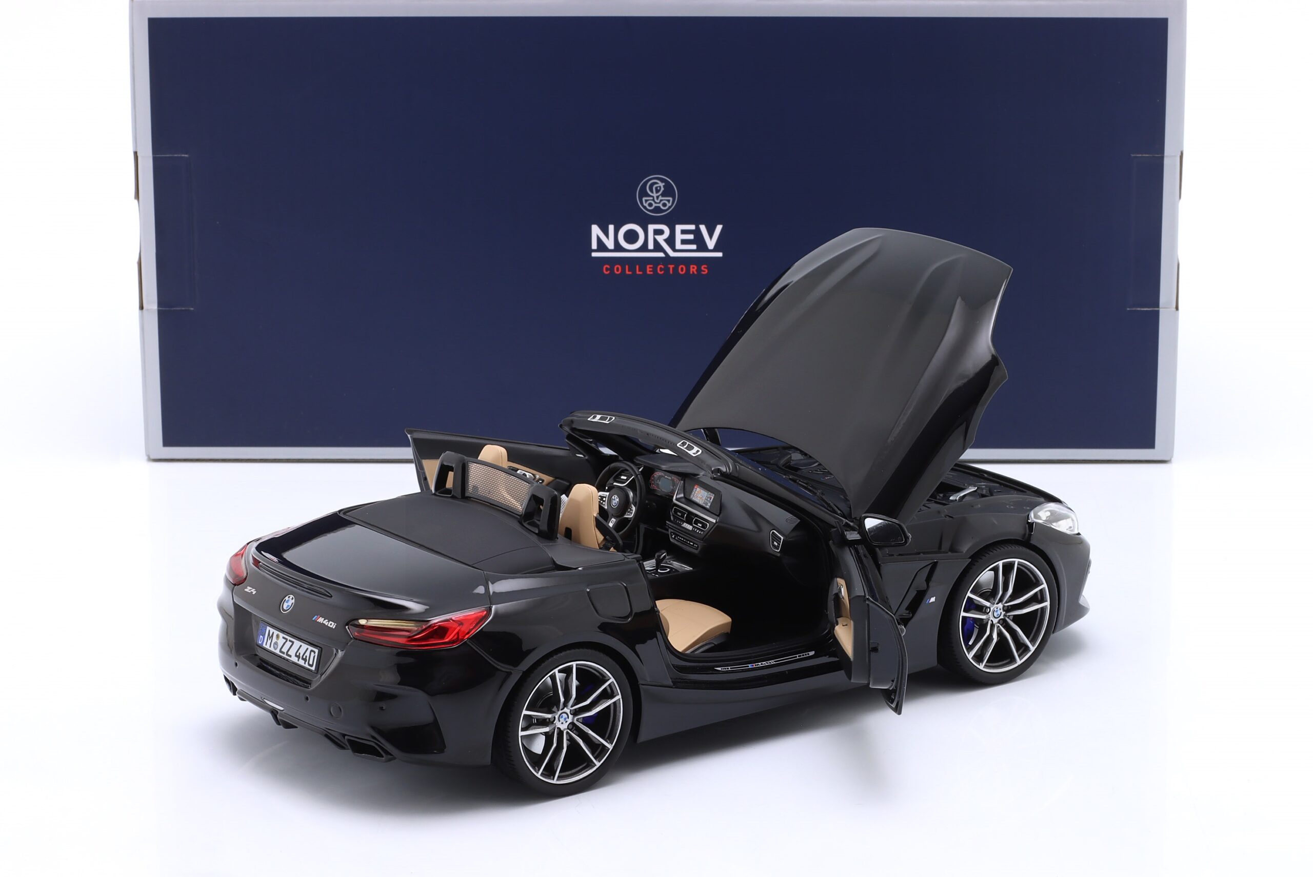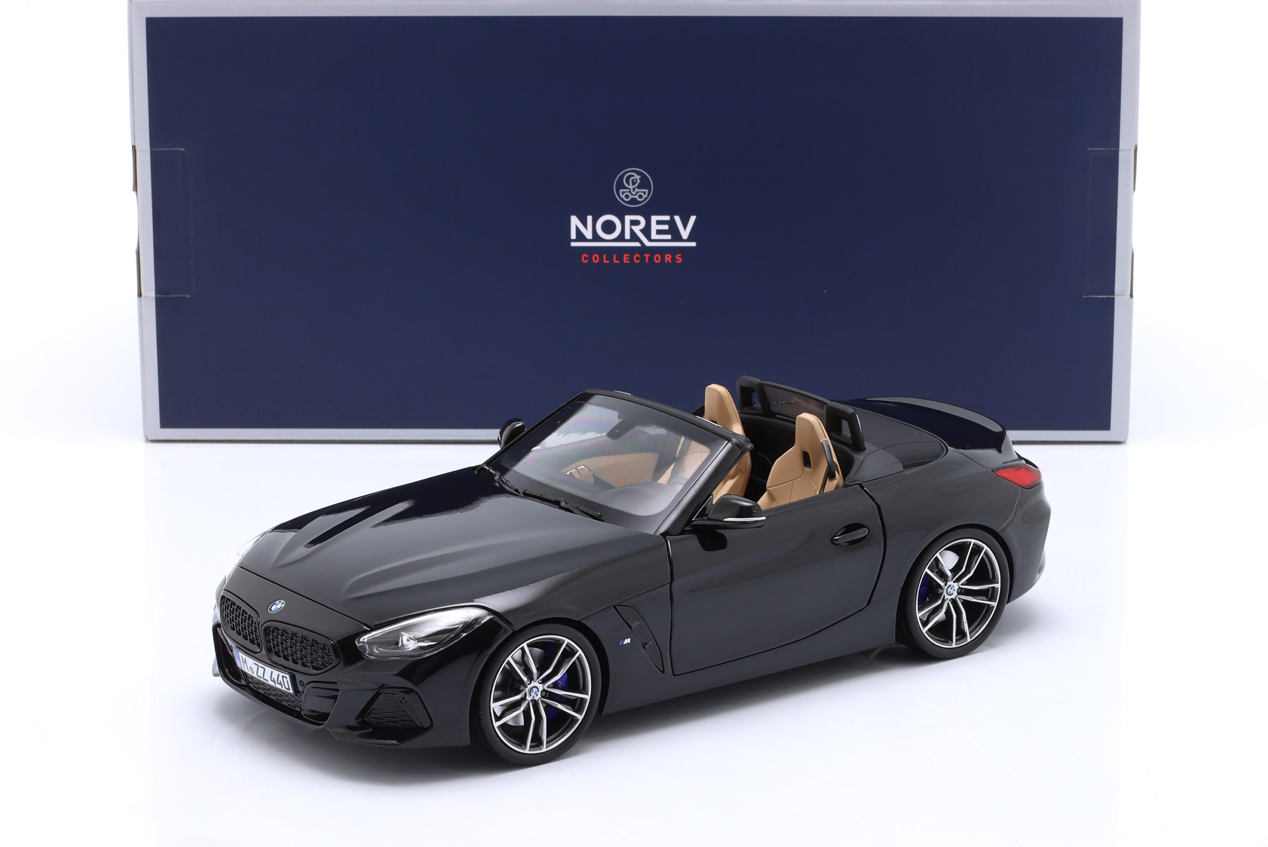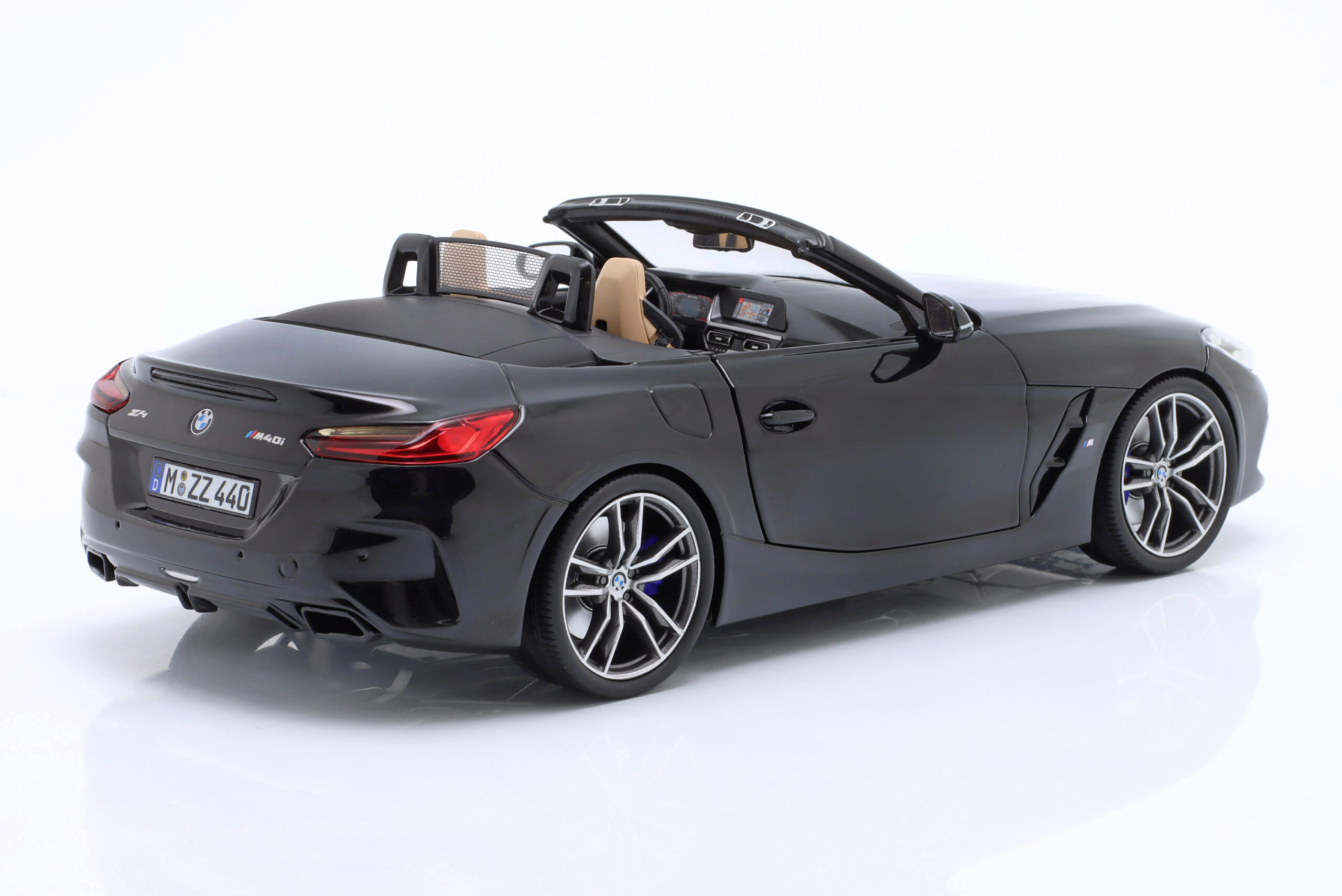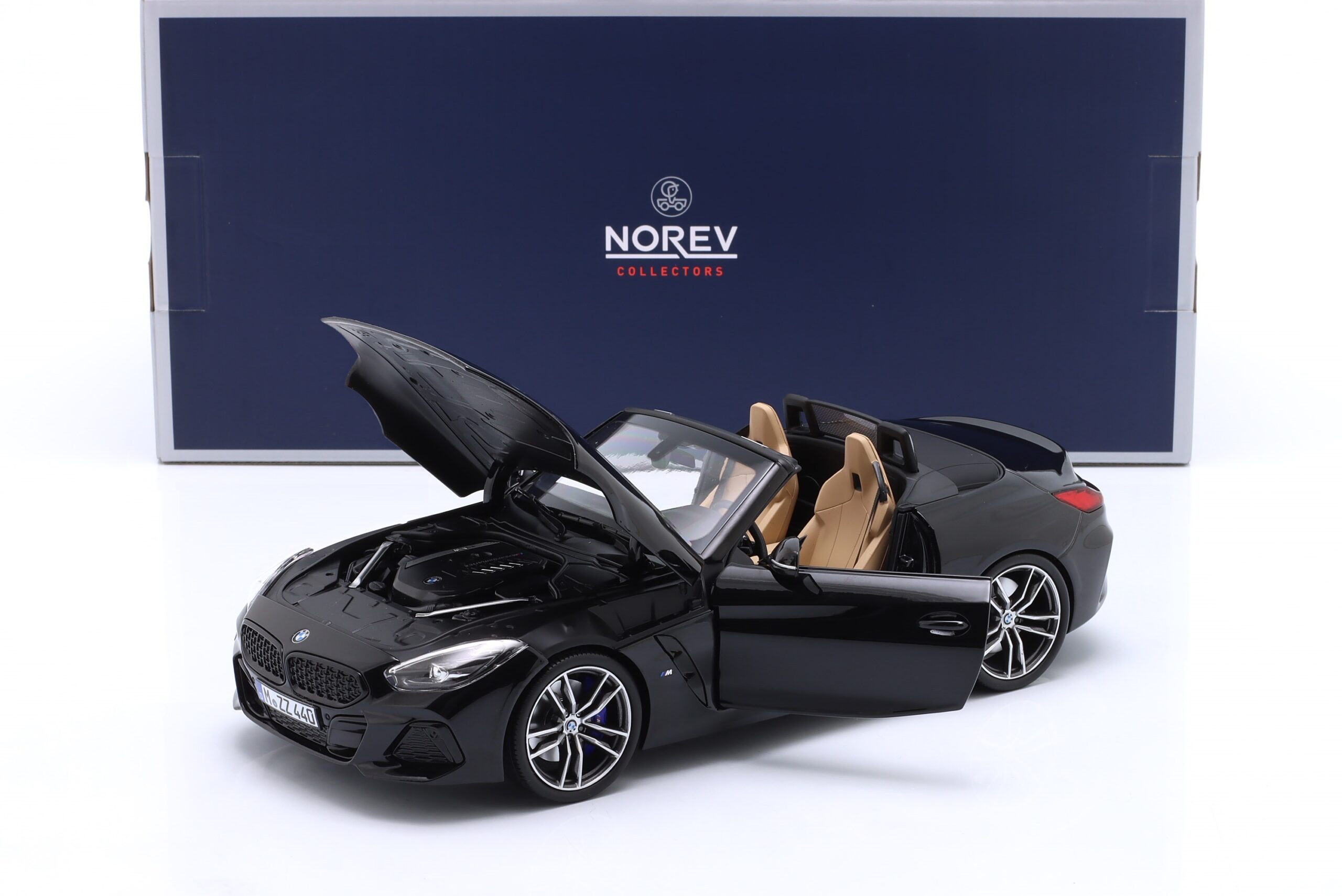 Kolekcjonerski model metalowy z elementami plastikowymi samochodu BMW Z4 z roku 2019 w kolorze Czarny metallic.