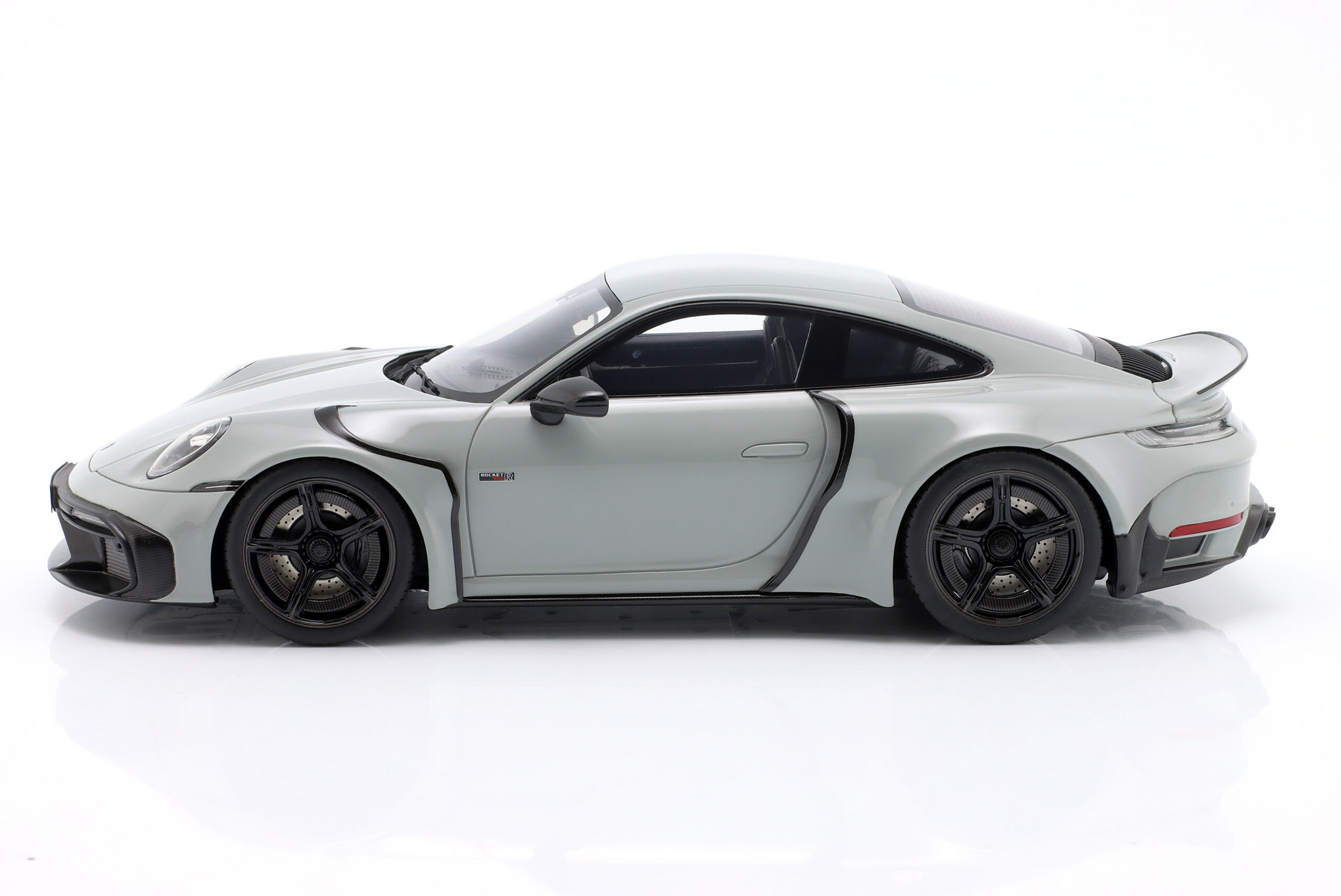 Kolekcjonerski model wykonany z żywicy samochodu BRABUS 900 Rocket-R (PORSCHE 911) z roku 2023 w kolorze Nardo grey.Model nie posiada otwieranych elementów.Edycja limitowana tylko 1200 sztuk.
