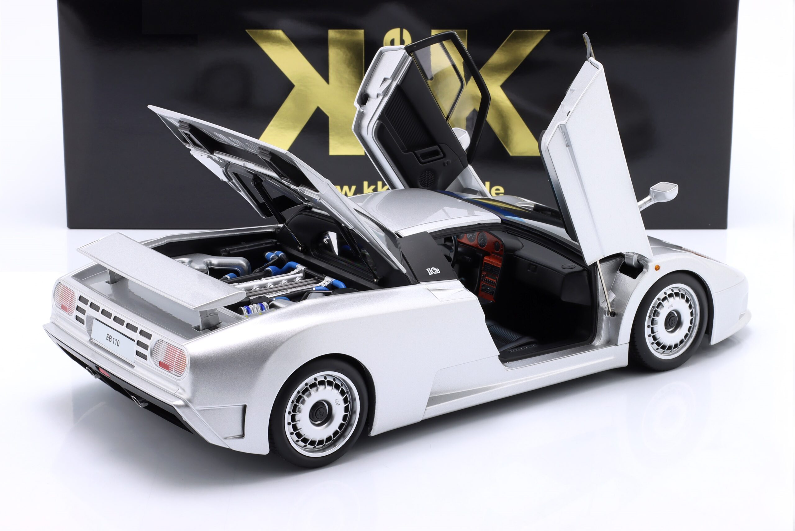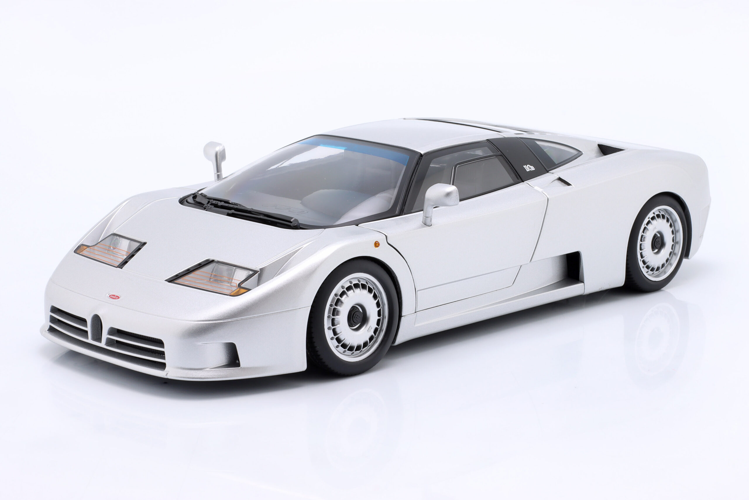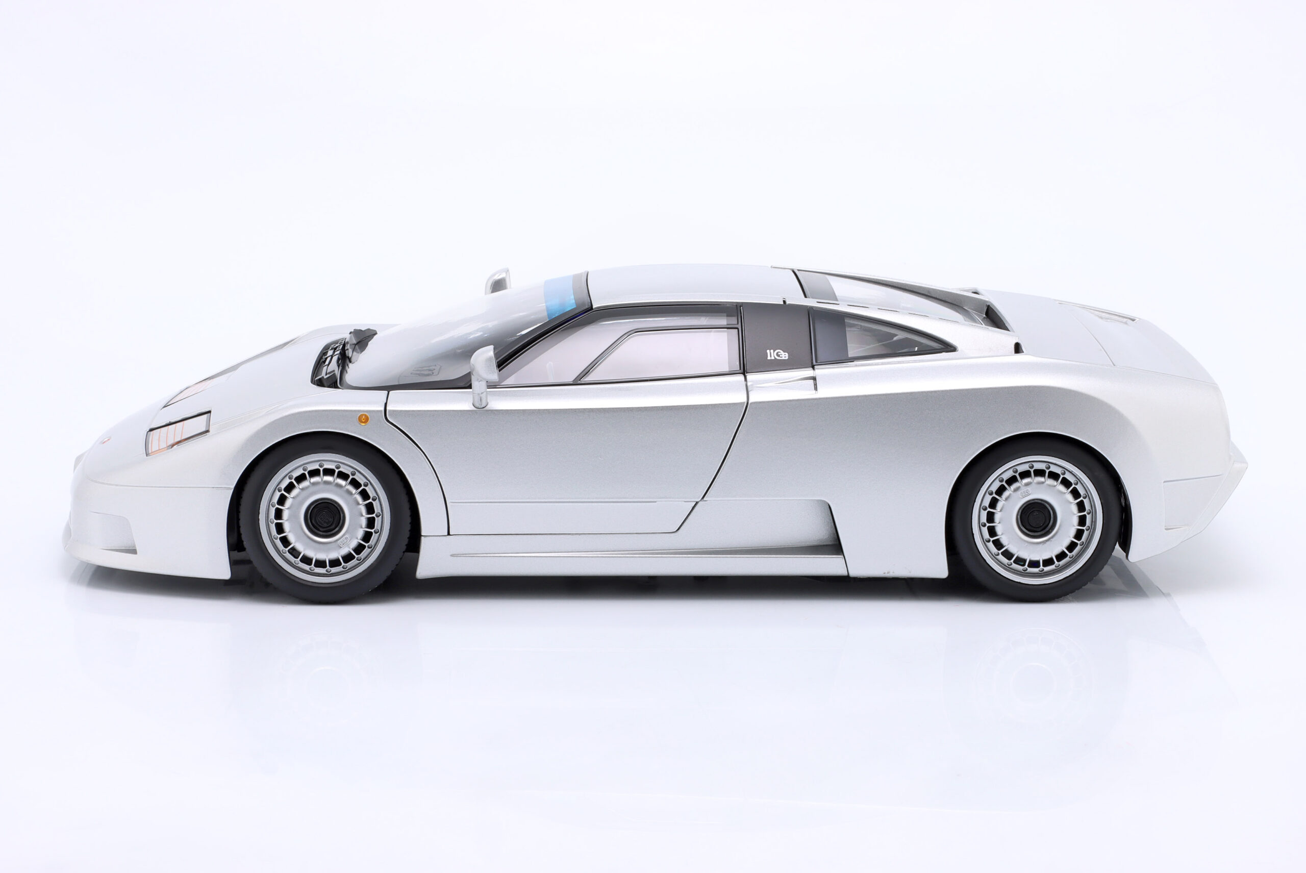 Kolekcjonerski model metalowy z elementami plastikowymi samochodu BUGATTI EB110 z roku 1991 w kolorze Srebrnym.Model posiada otwierane drzwi oraz pokrywę silnika.Zapakowny w styropianowe pudełko z kartonową obwolutą ze zdjęciem modelu.Edycja limitowana.