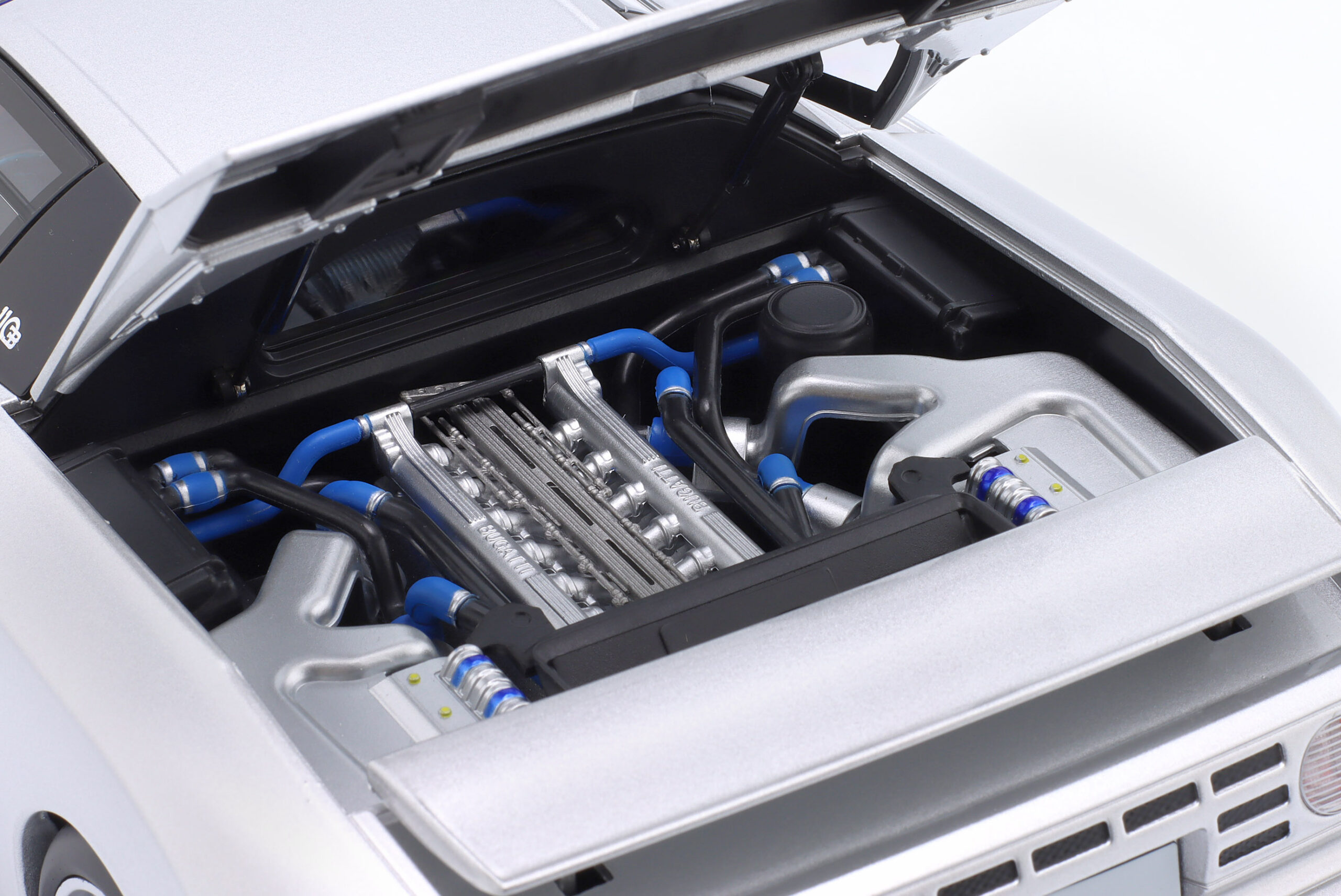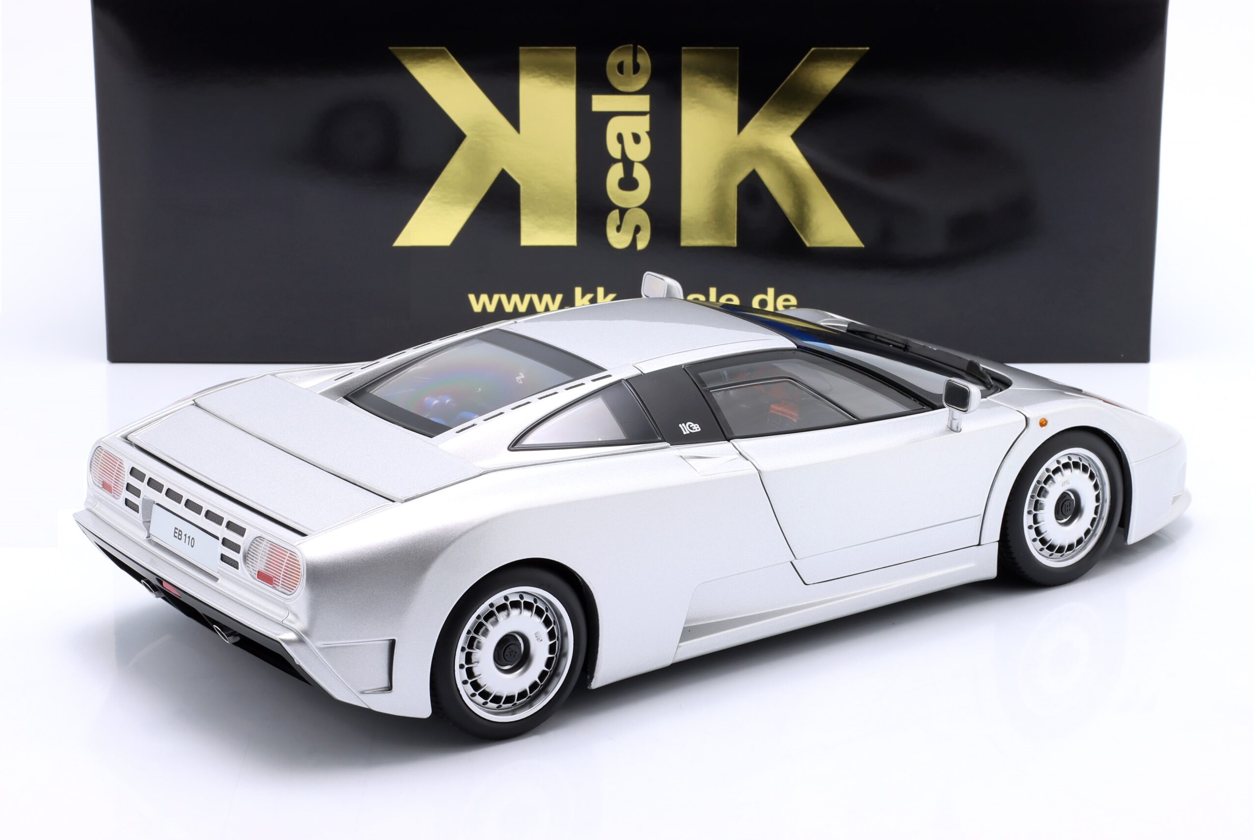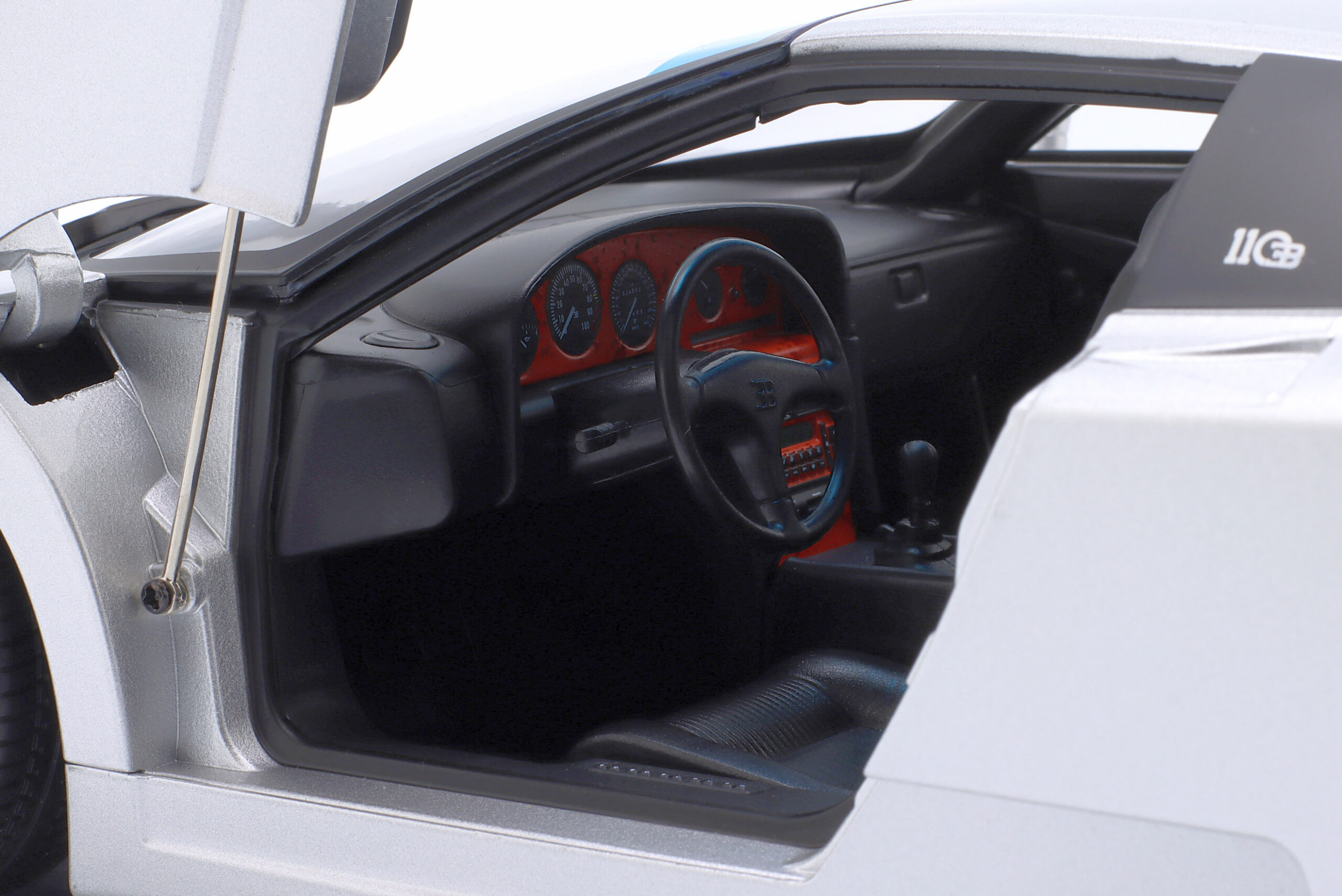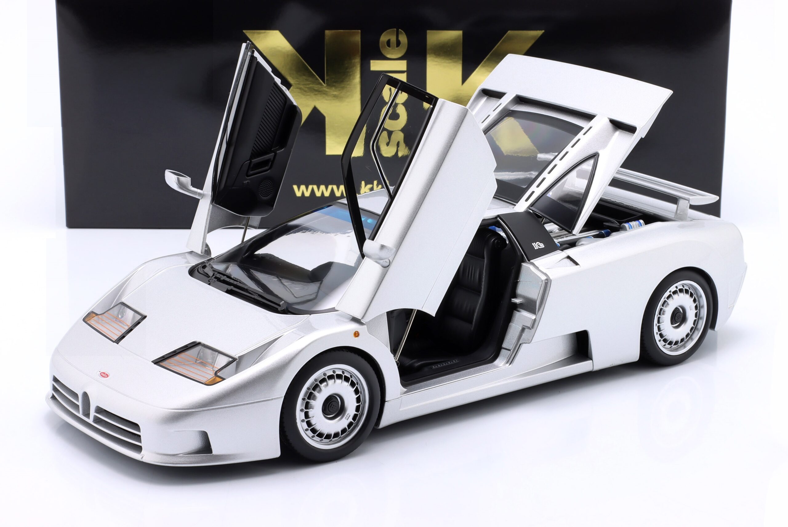 Kolekcjonerski model metalowy z elementami plastikowymi samochodu BUGATTI EB110 z roku 1991 w kolorze Srebrnym.Model posiada otwierane drzwi oraz pokrywę silnika.Zapakowny w styropianowe pudełko z kartonową obwolutą ze zdjęciem modelu.Edycja limitowana.