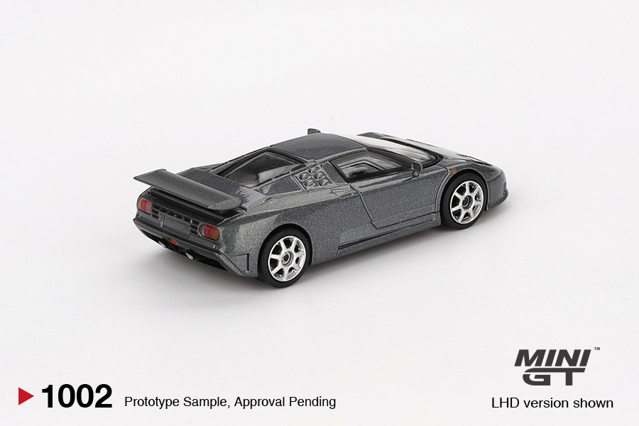 Kolekcjonerski model metalowy z elementami plastikowymi samochodu BUGATTI EB110 GT z roku 1995 w kolorze Grigio Scuro.Model zapakowany w kartonowe pudełko.