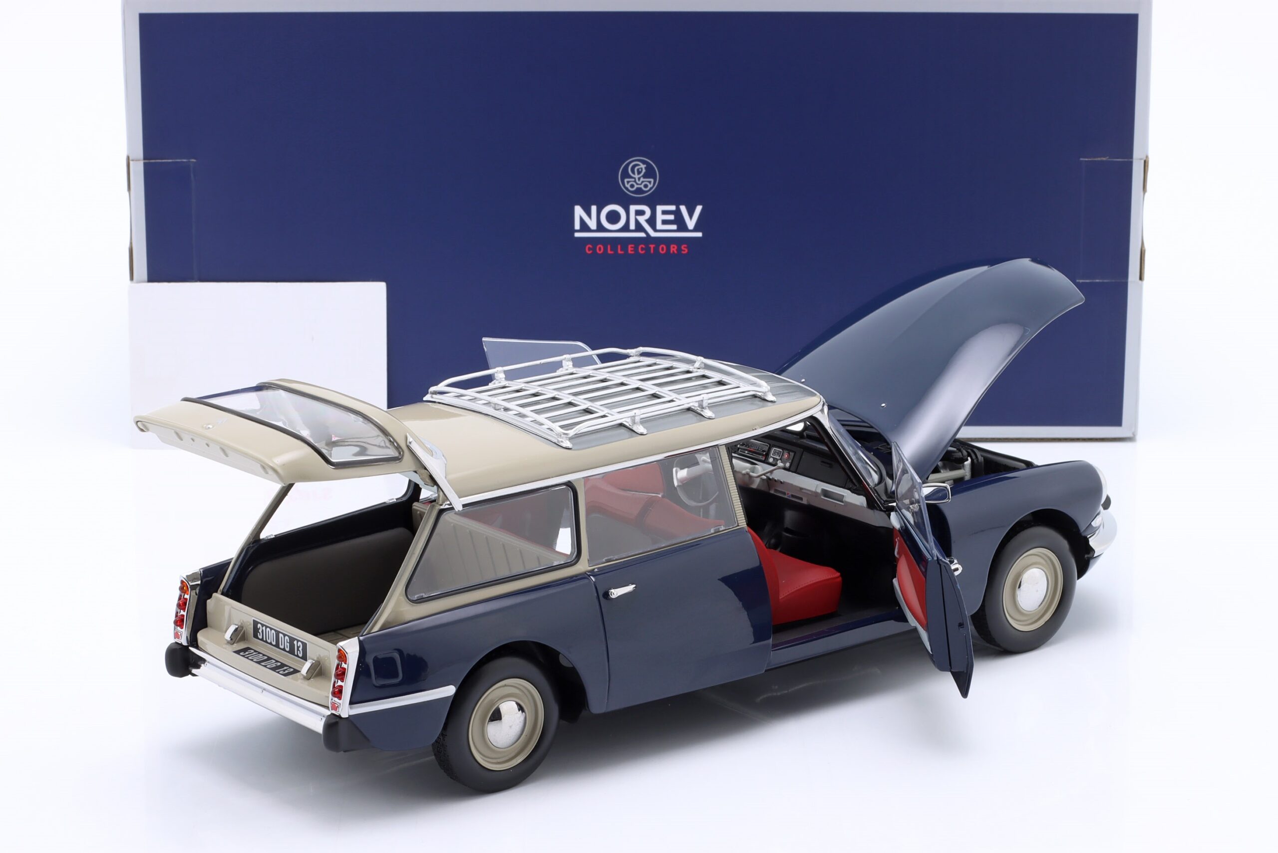 Kolekcjonerski model metalowy z elementami plastikowymi samochodu CITREON ID Break z roku 1967 w kolorze Orient Blue.