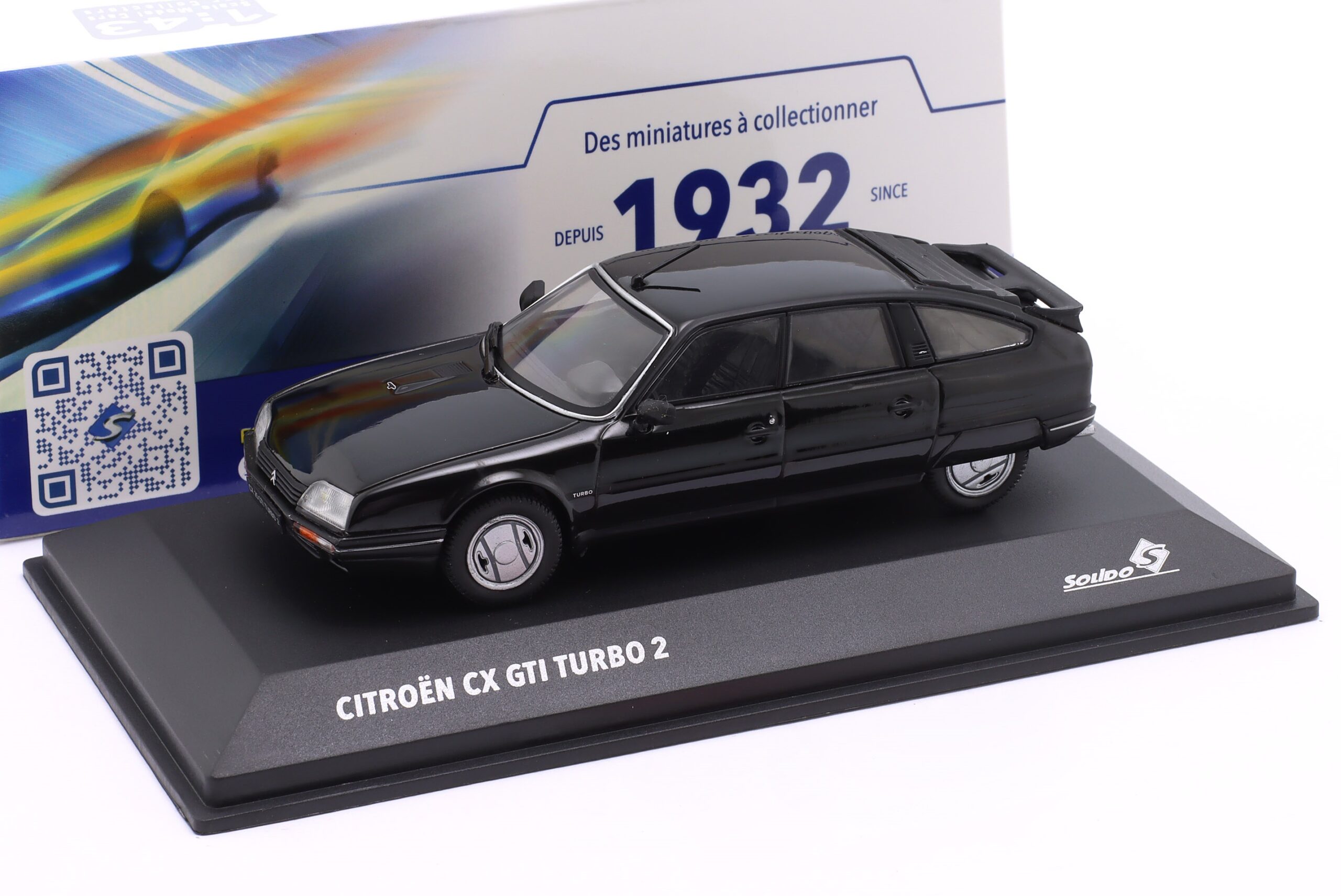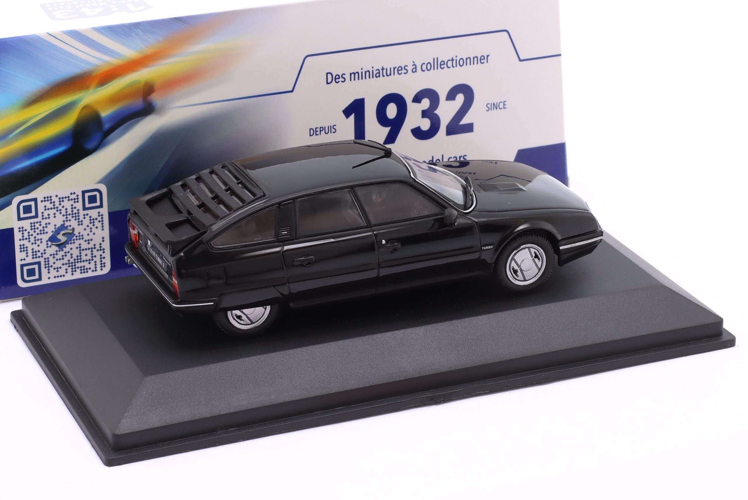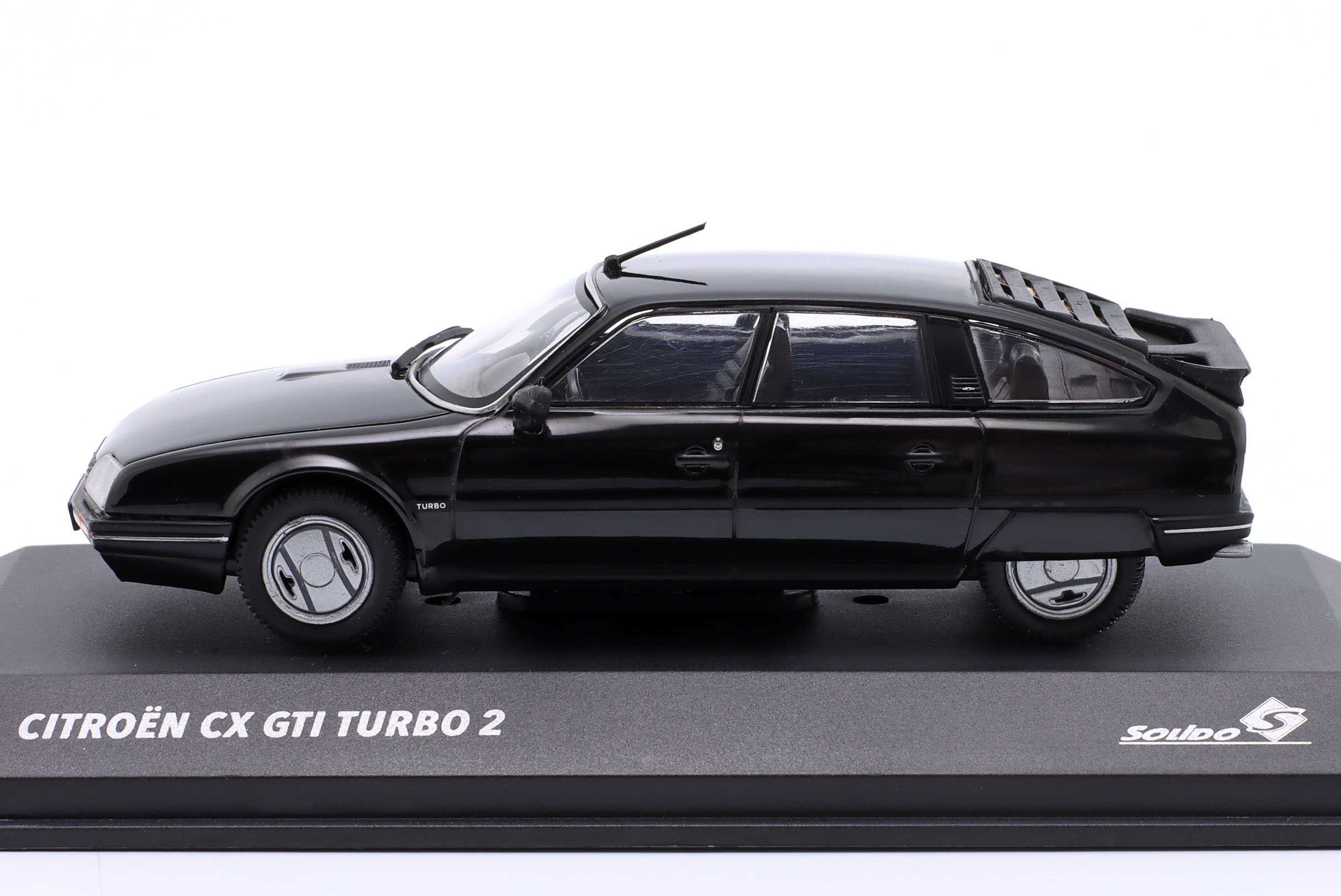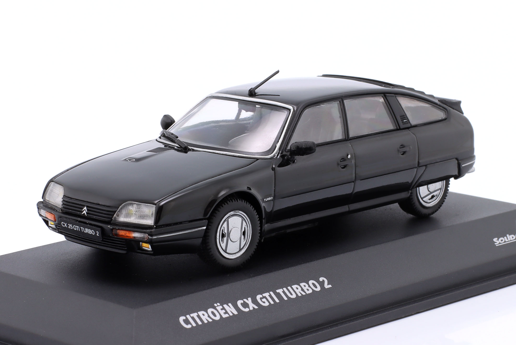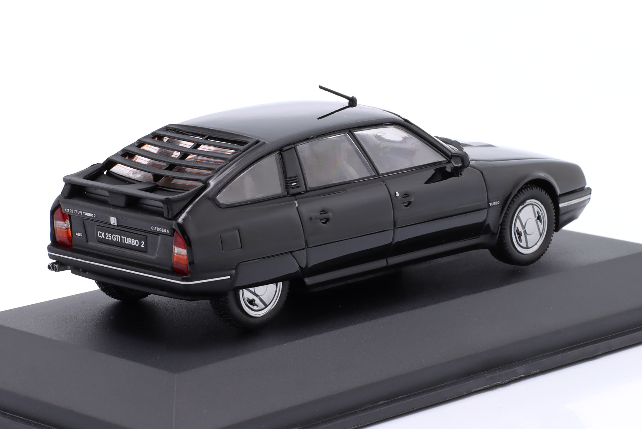 Kolekcjonerski model metalowy z elementami plastikowymi samochodu CITROEN CX GTI Turbo II z roku 1989 w kolorze Onyx Black.Model posiada podstawkę oraz gablotkę ekspozycyjną.