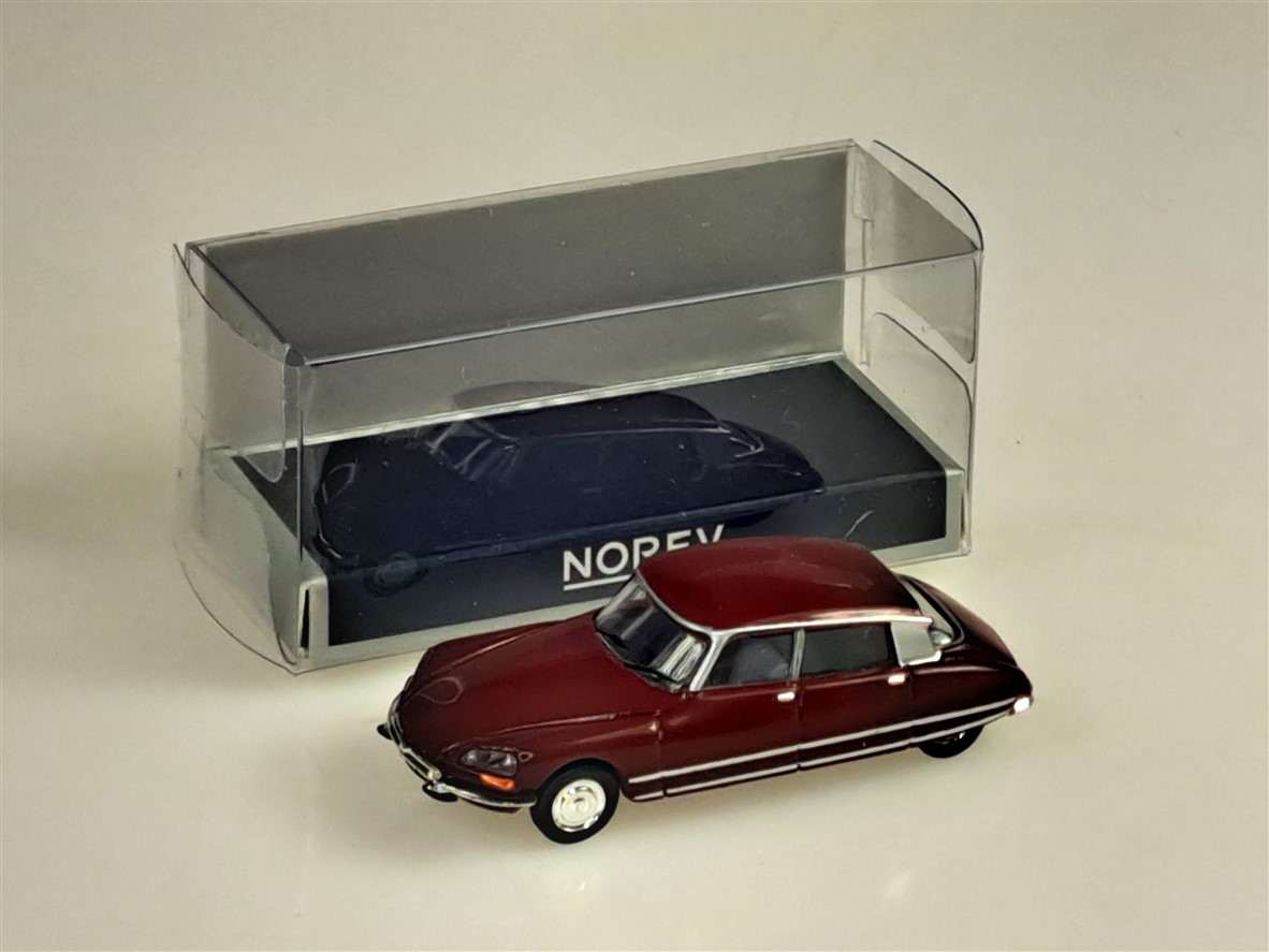 Kolekcjonerski model metalowy z elementami plastikowymi samochodu CITROEN DS 23 z roku 1972 w kolorze Grenada Red.
