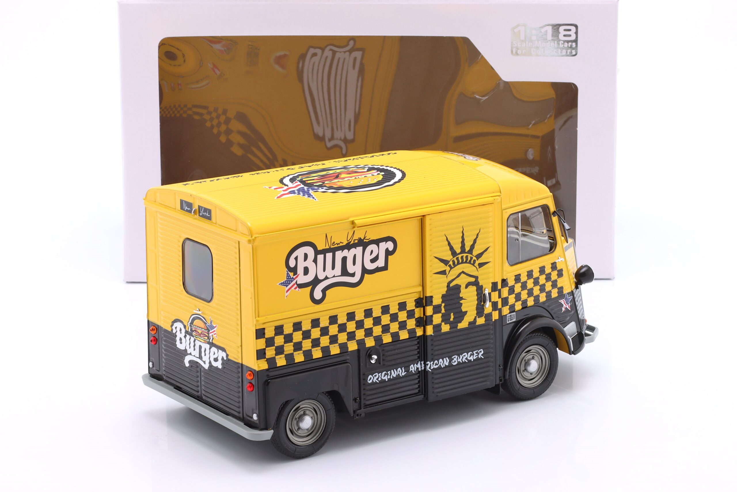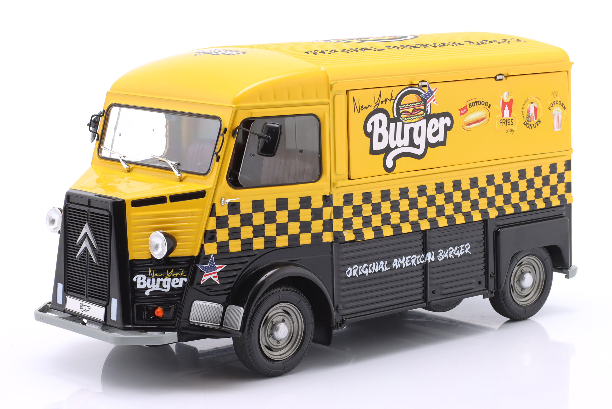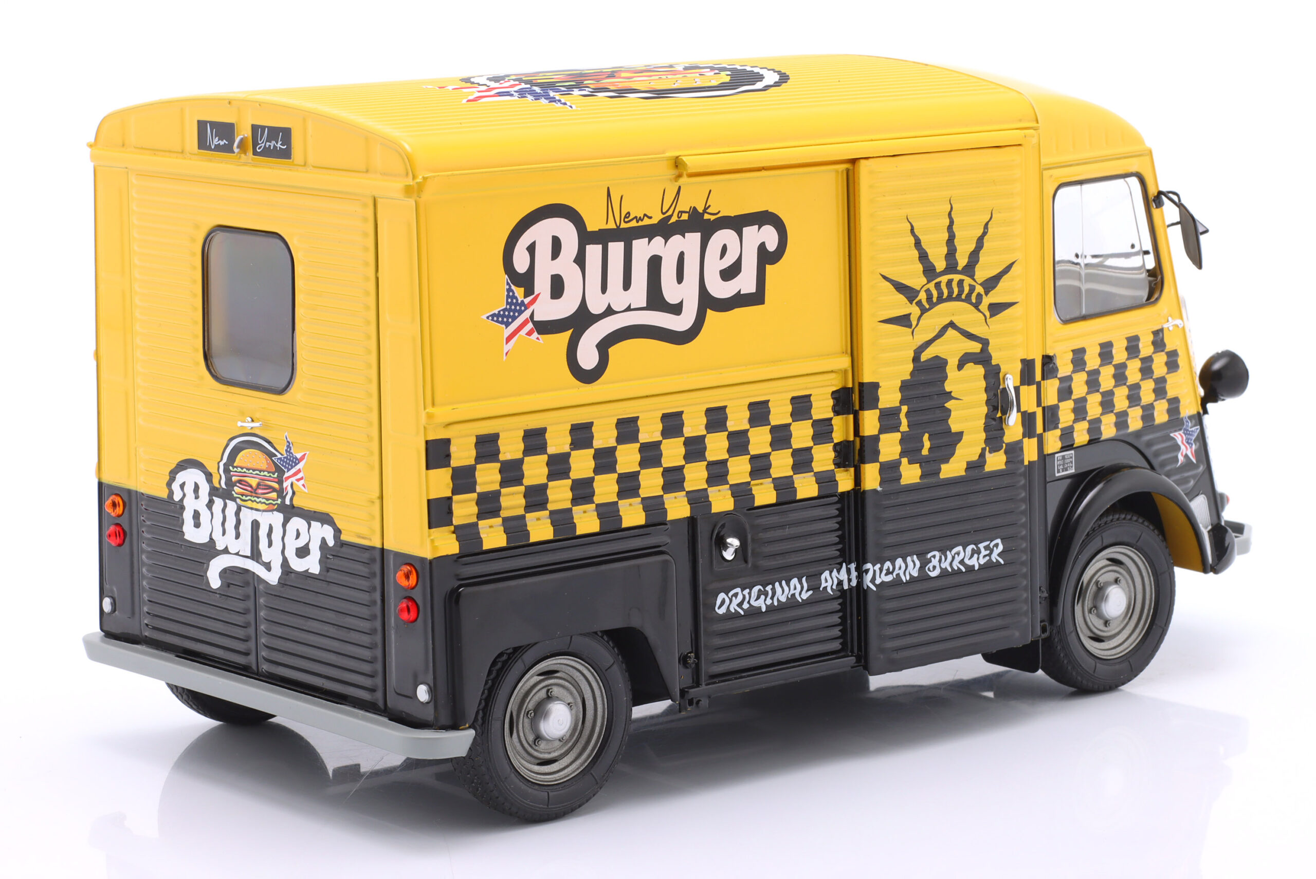 Kolekcjonerski model metalowy z elementami plastikowymi samochodu CITROEN Type HY “New York Burger” z roku 1969 w kolorze Żółty/Czarny.