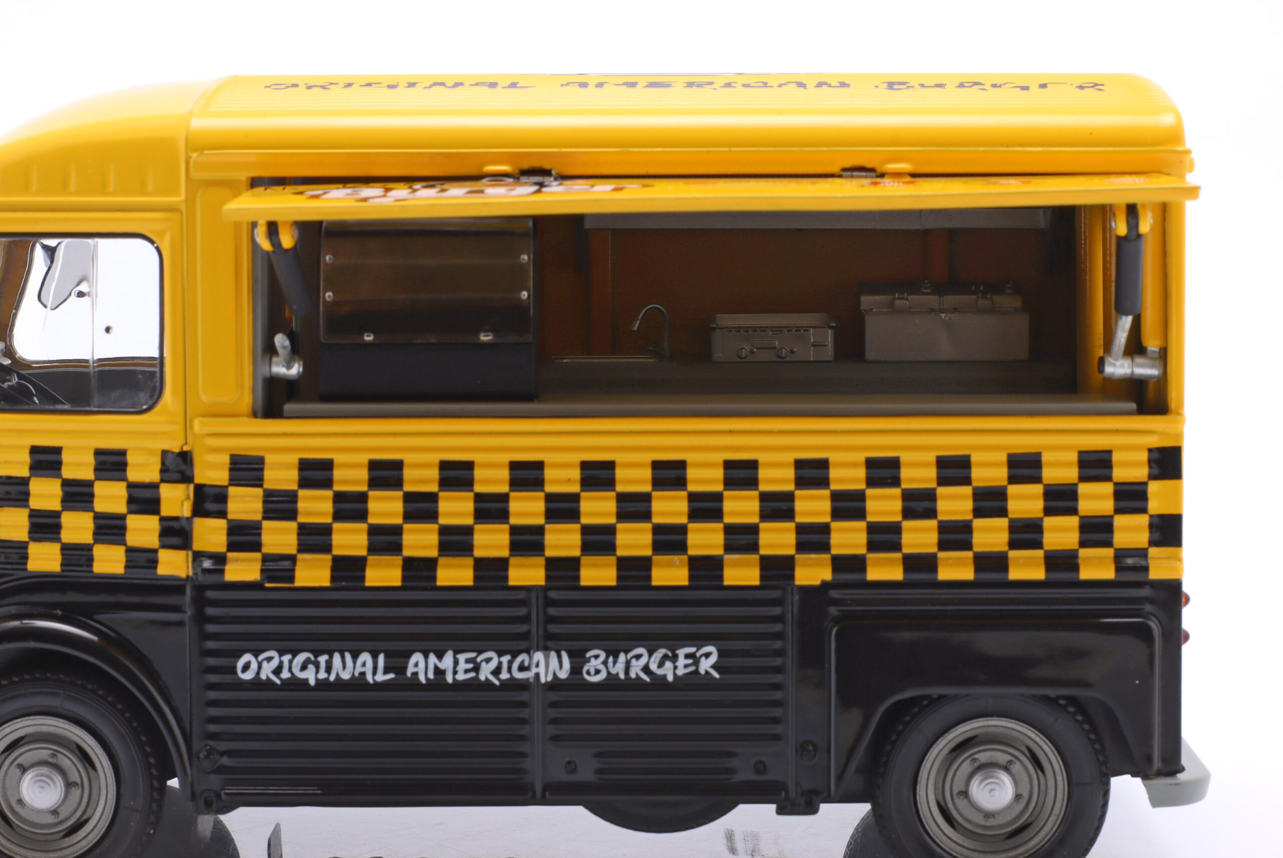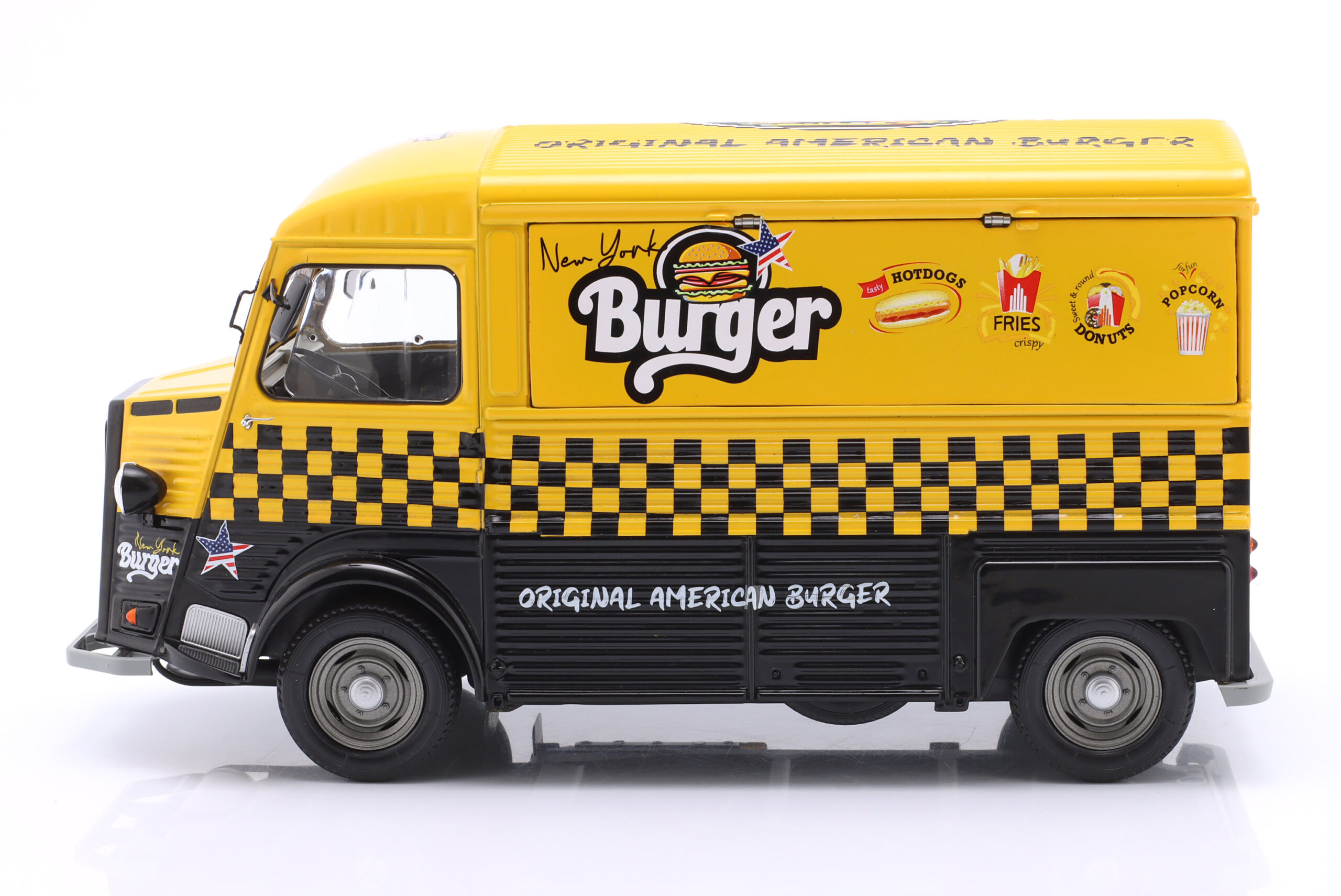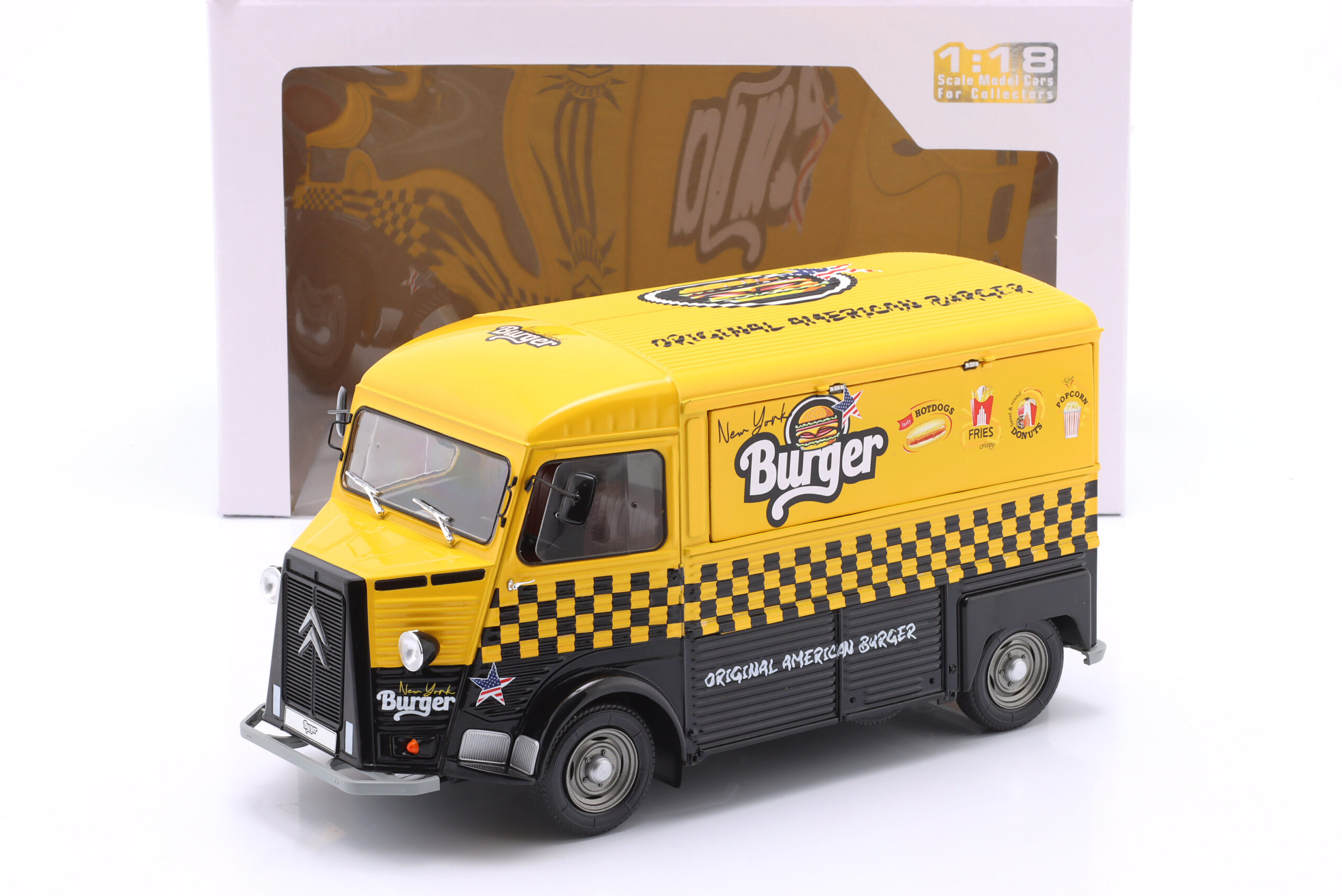 Kolekcjonerski model metalowy z elementami plastikowymi samochodu CITROEN Type HY “New York Burger” z roku 1969 w kolorze Żółty/Czarny.