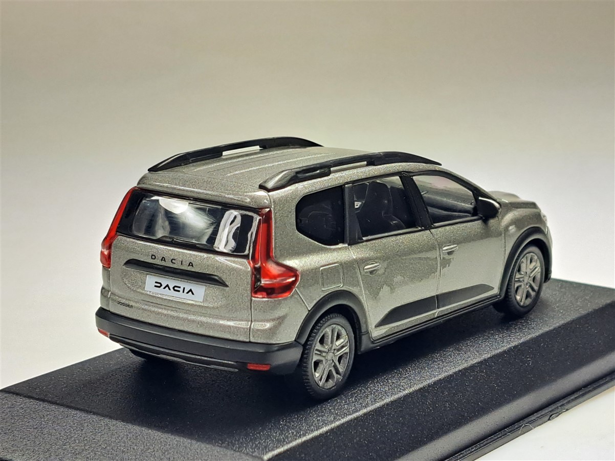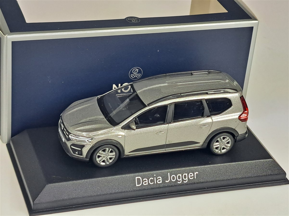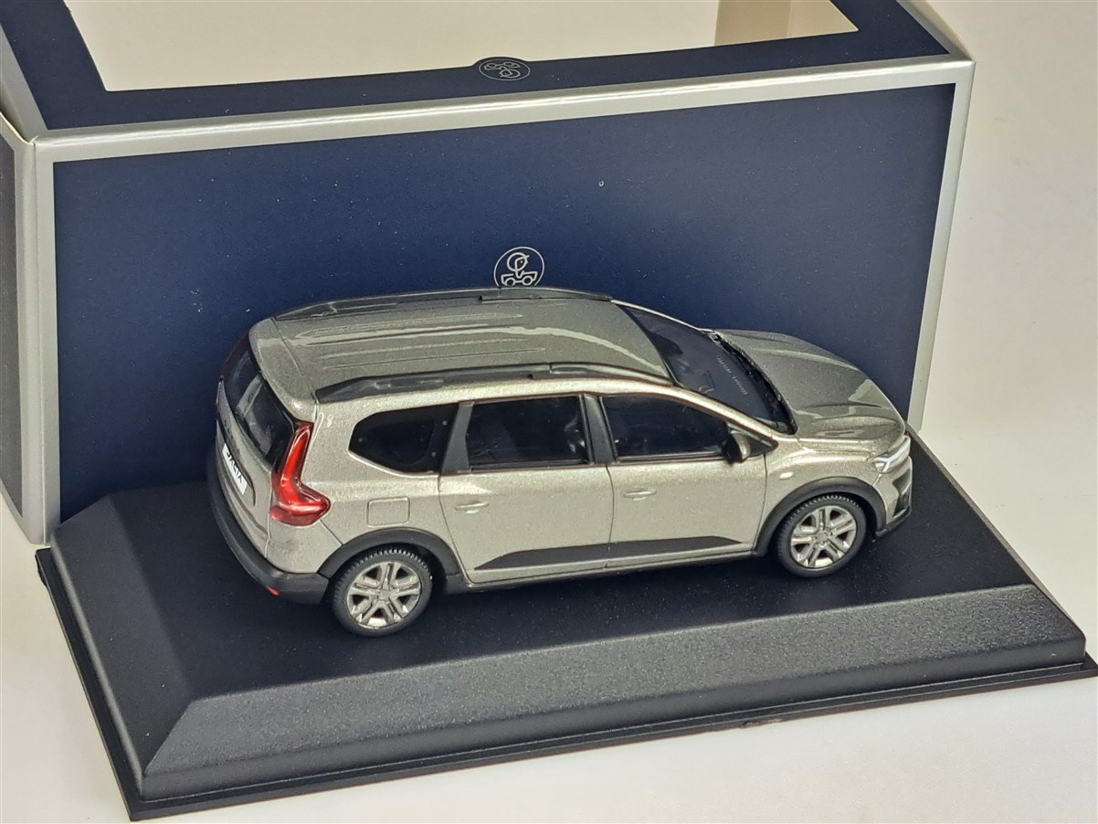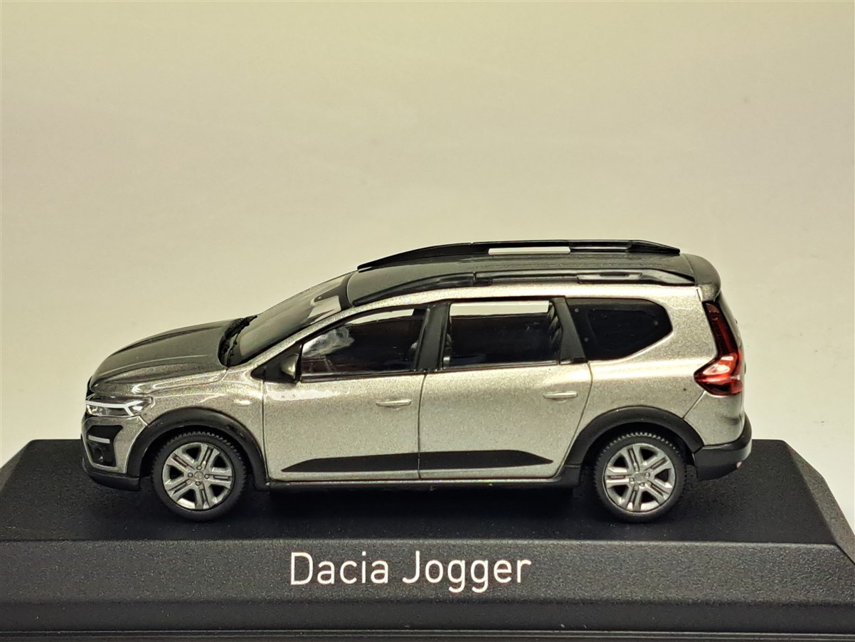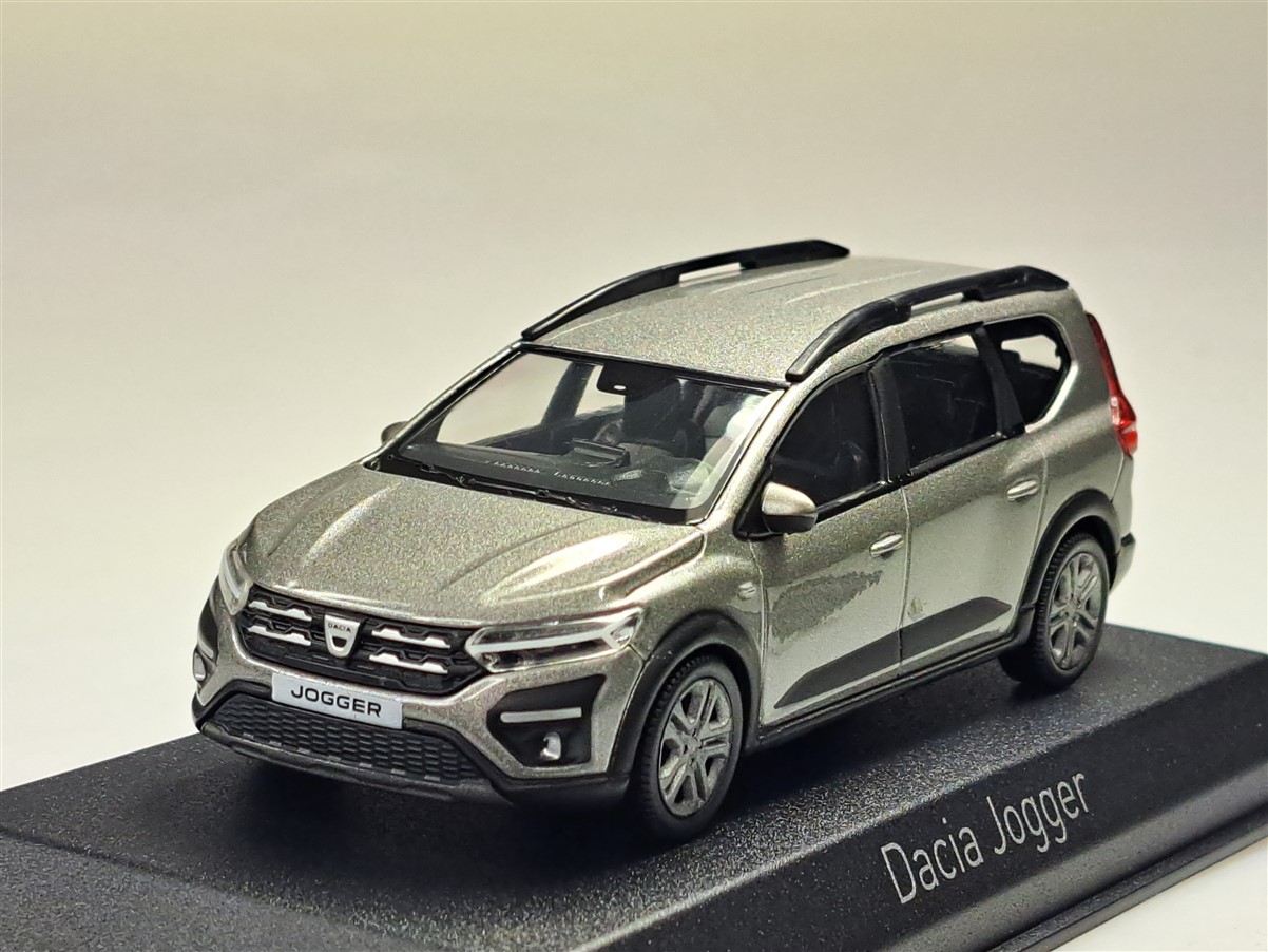 Kolekcjonerski model metalowy z elementami plastikowymi samochodu DACIA JOGGER z roku 2022 w kolorze Moonstone Grey.