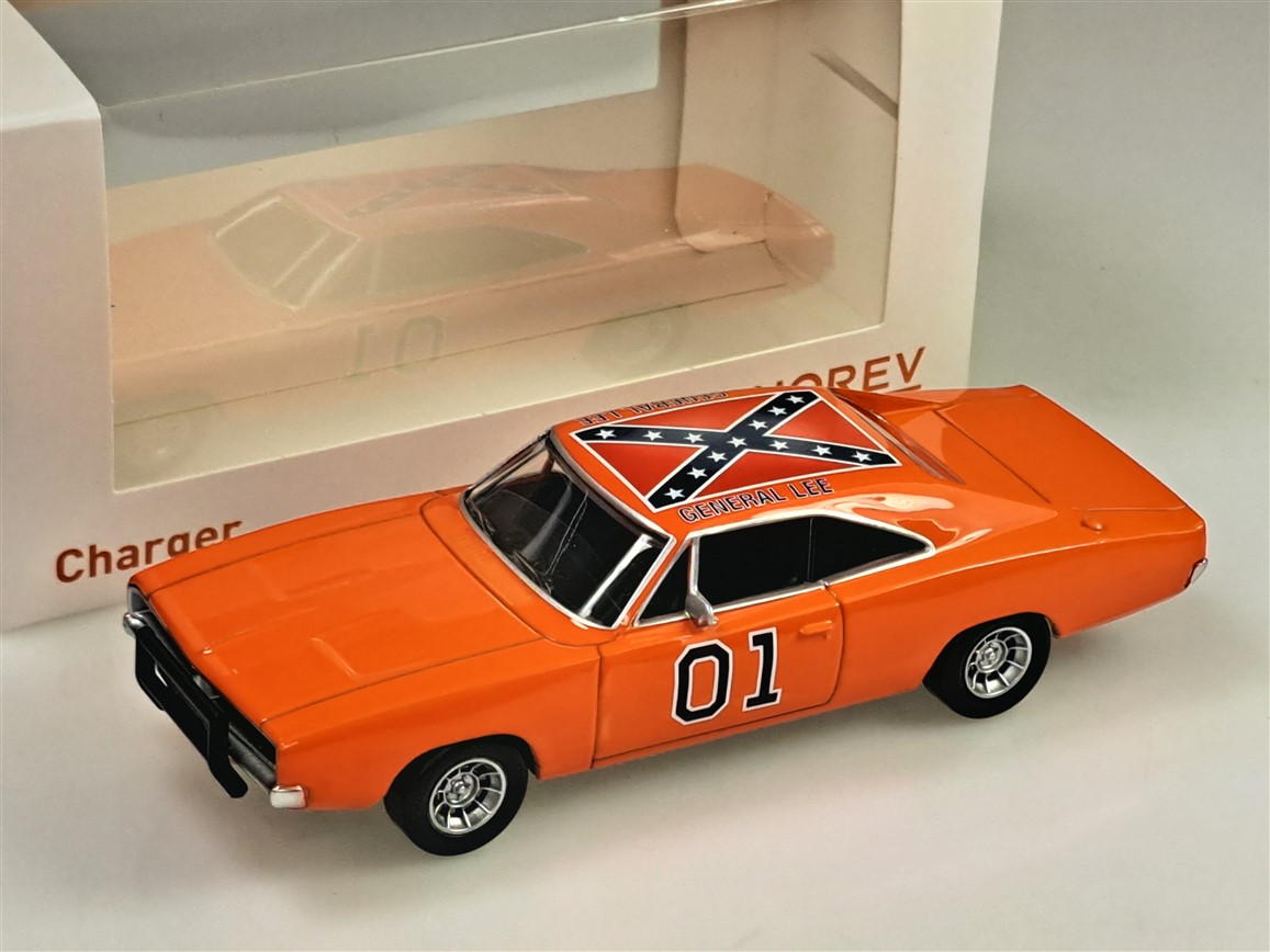 Kolekcjonerski model metalowy z elementami plastikowymi samochodu DODGE CHARGER “General Lee” z roku 1969 z serialu TV The Dukes of Hazzard.Model z serii JET – CAR.