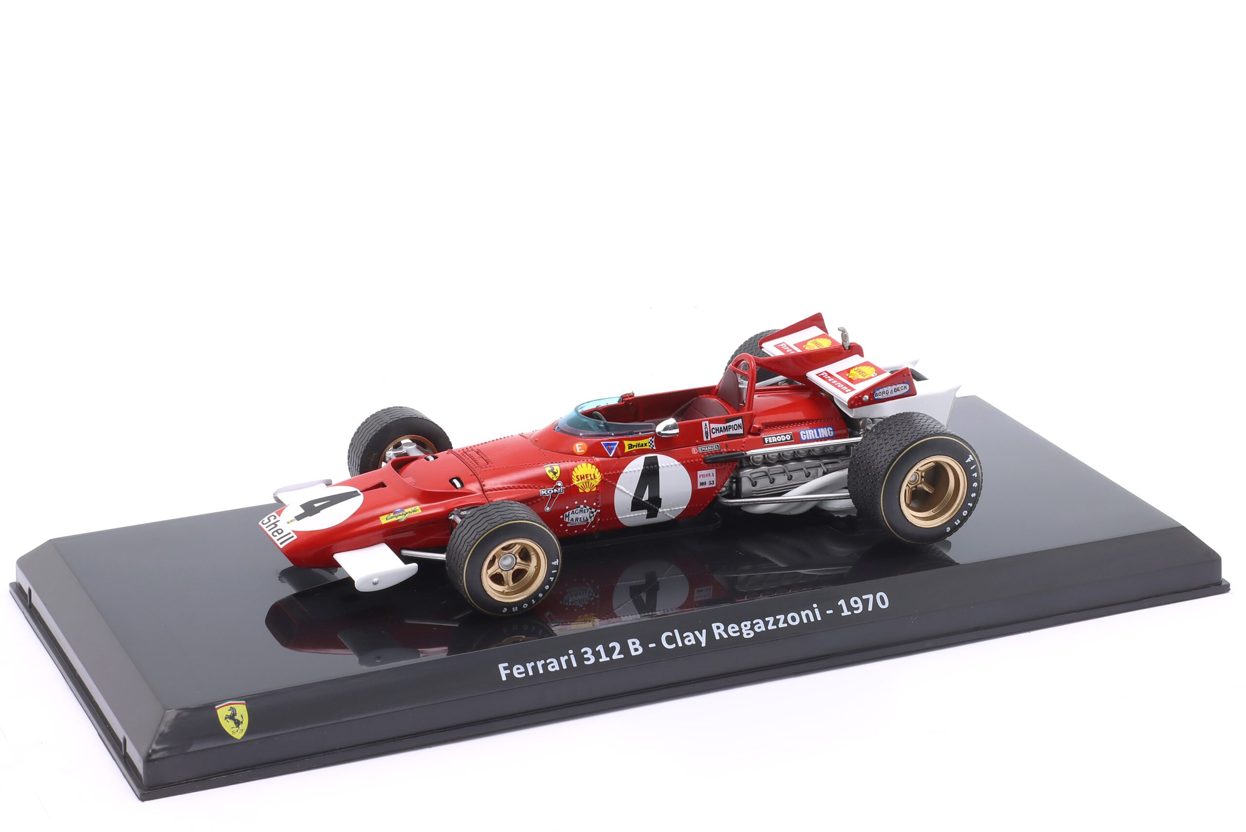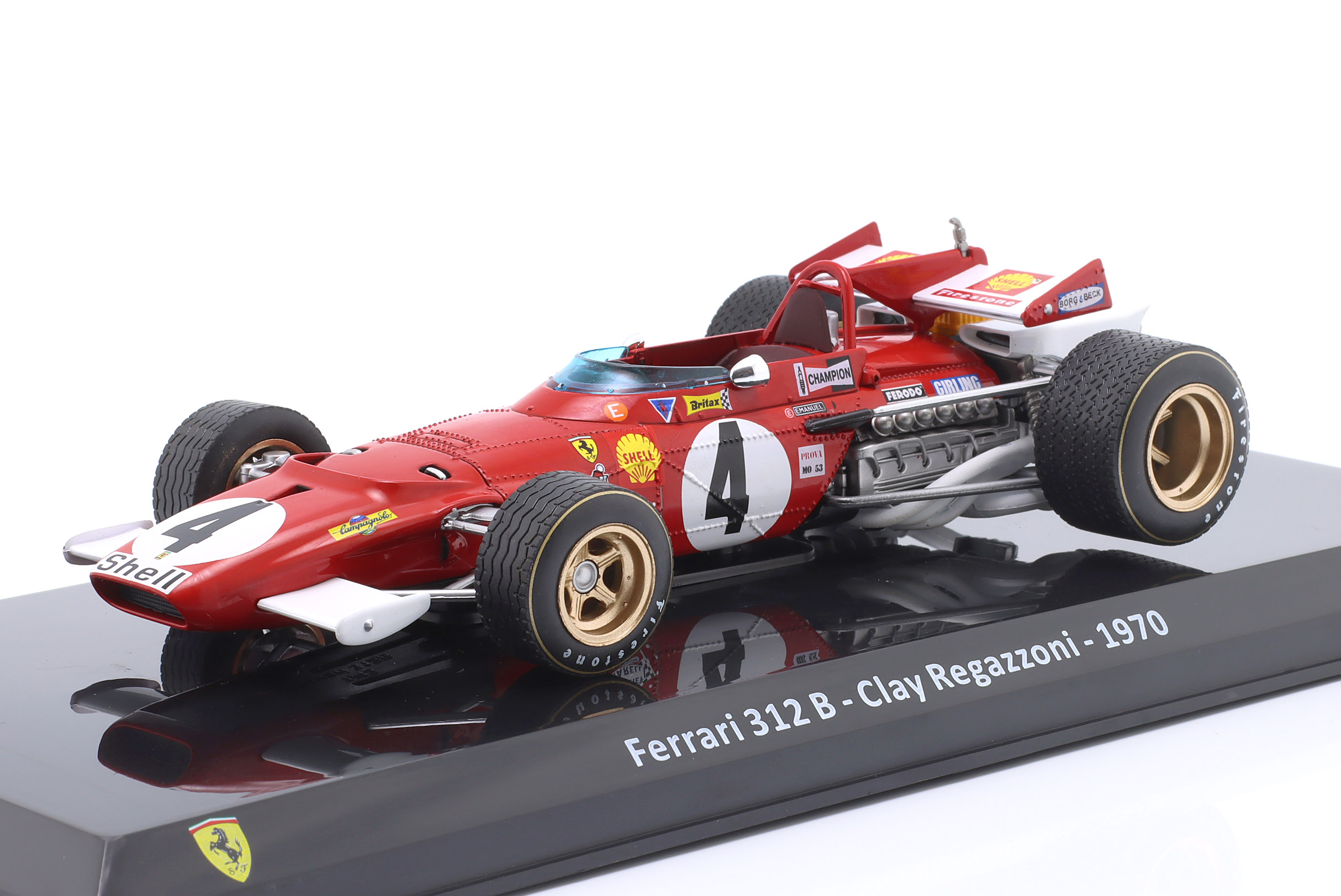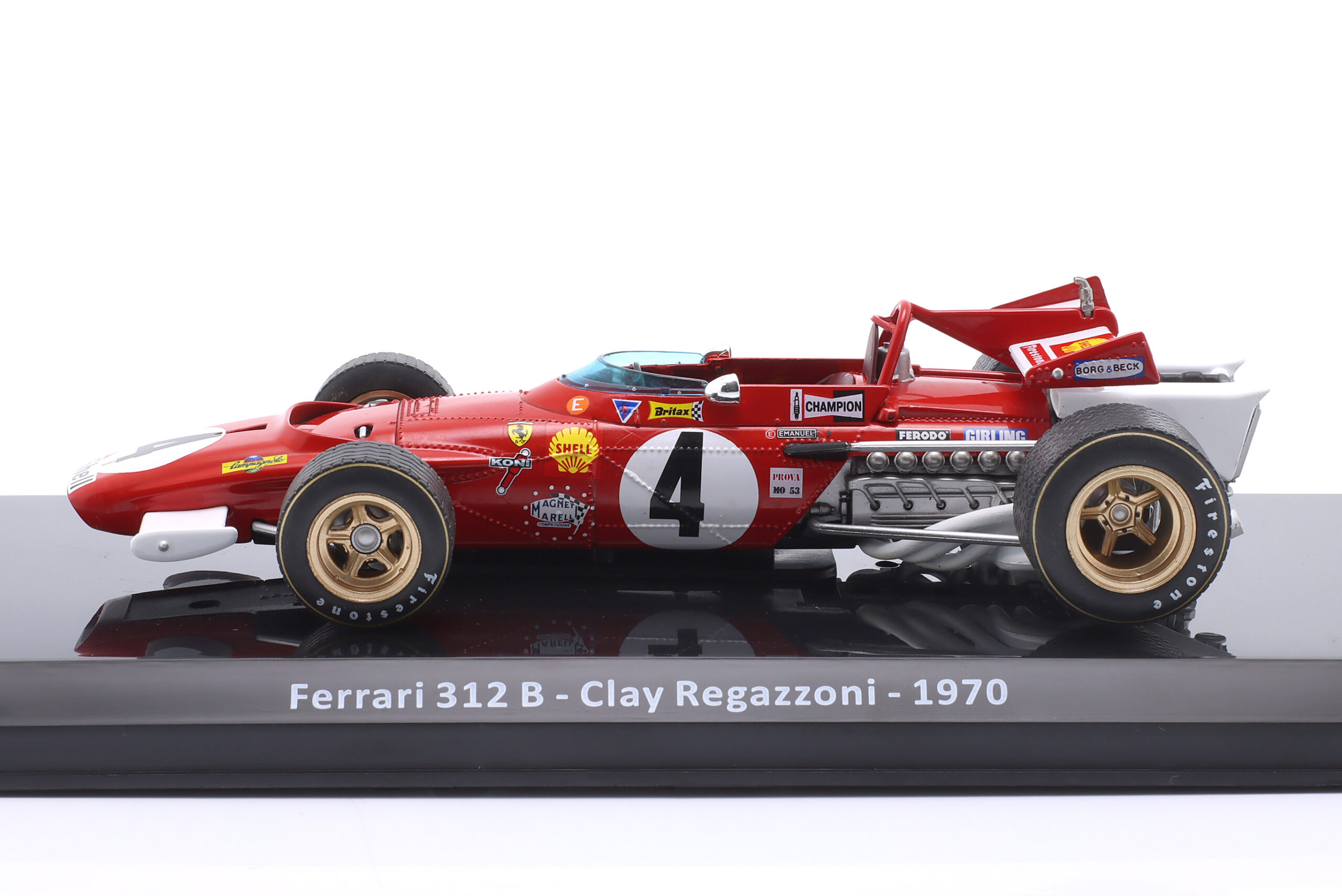 Kolekcjonerski model metalowy z elementami plastikowymi bolidu Formuły 1 FERRARI 312B #4,w którym Clay Regazzoni startował w Mistrzostwach Świata Formuły 1 w sezonie 1970 i zajął 3-cie miejsce w klasyfikacji generalnej.Model na podstawce,posiada akrylową gablotkę ekspozycyjną.Nie posiada otwieranych elementów,Dodatkowo zapakowany w blister.