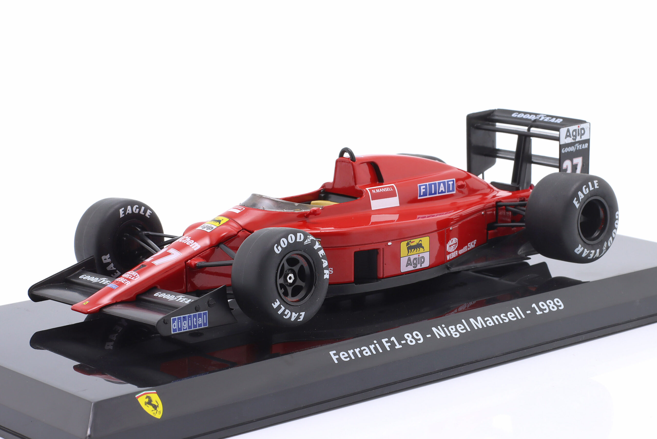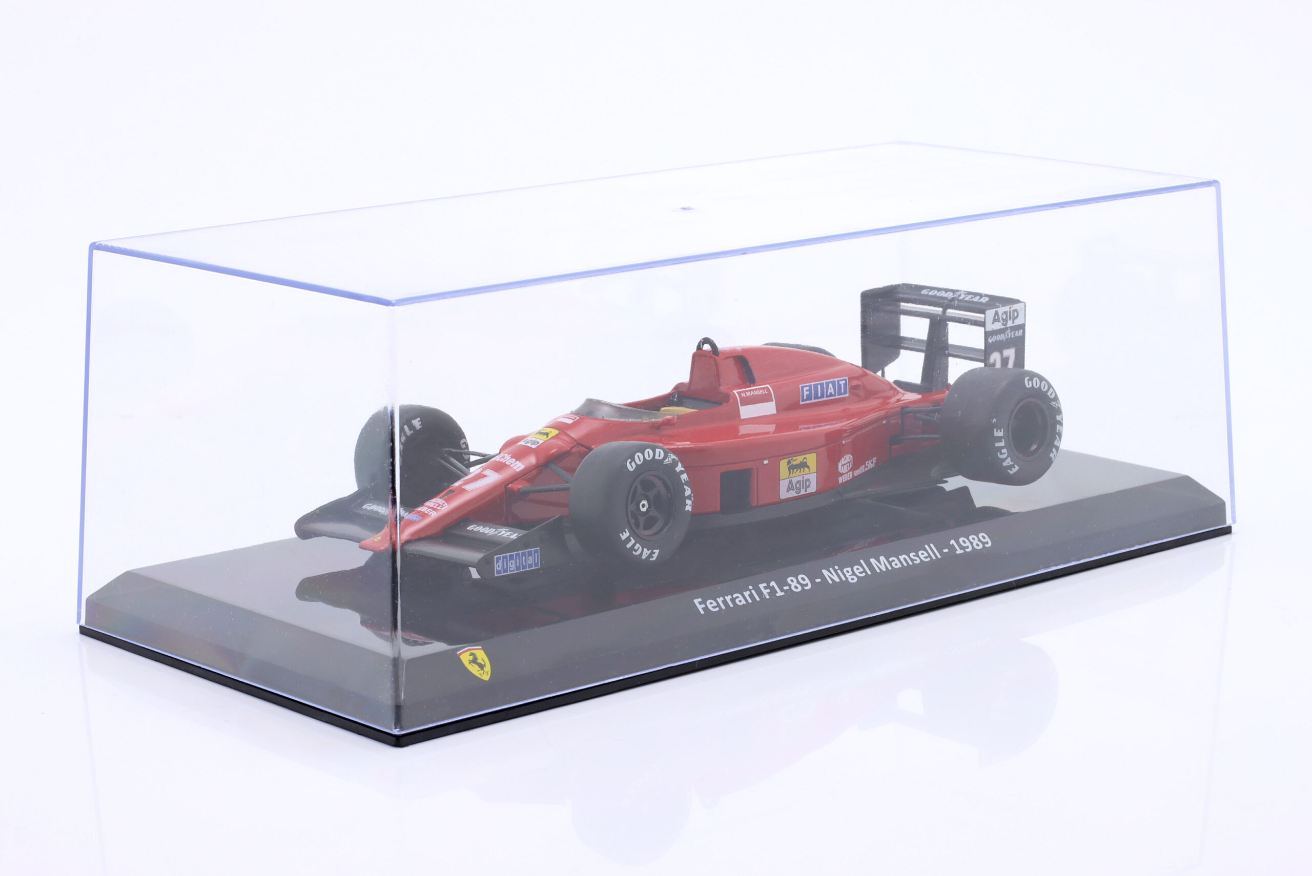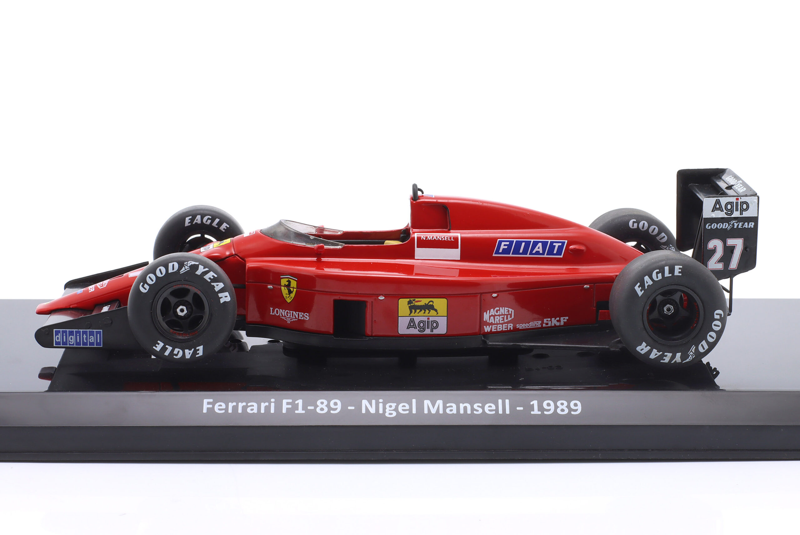 Kolekcjonerski model metalowy z elementami plastikowymi bolidu Formuły 1 FERRARI F1-89 #27,w którym Nigel Mansell startował w Mistrzostwach Formuły 1 w sezonie 1989.Model na podstawce,posiada akrylową gablotkę ekspozycyjną.Nie posiada otwieranych elementów,Dodatkowo zapakowany w blister.