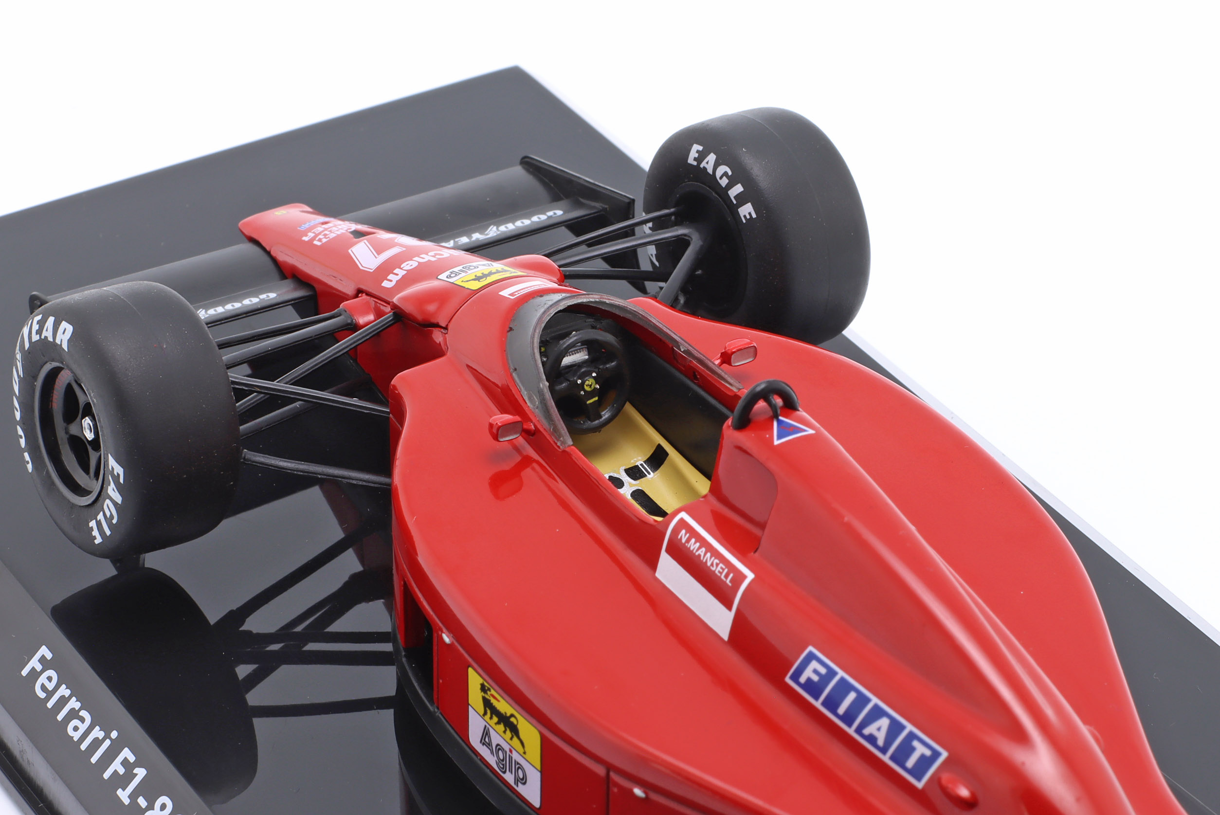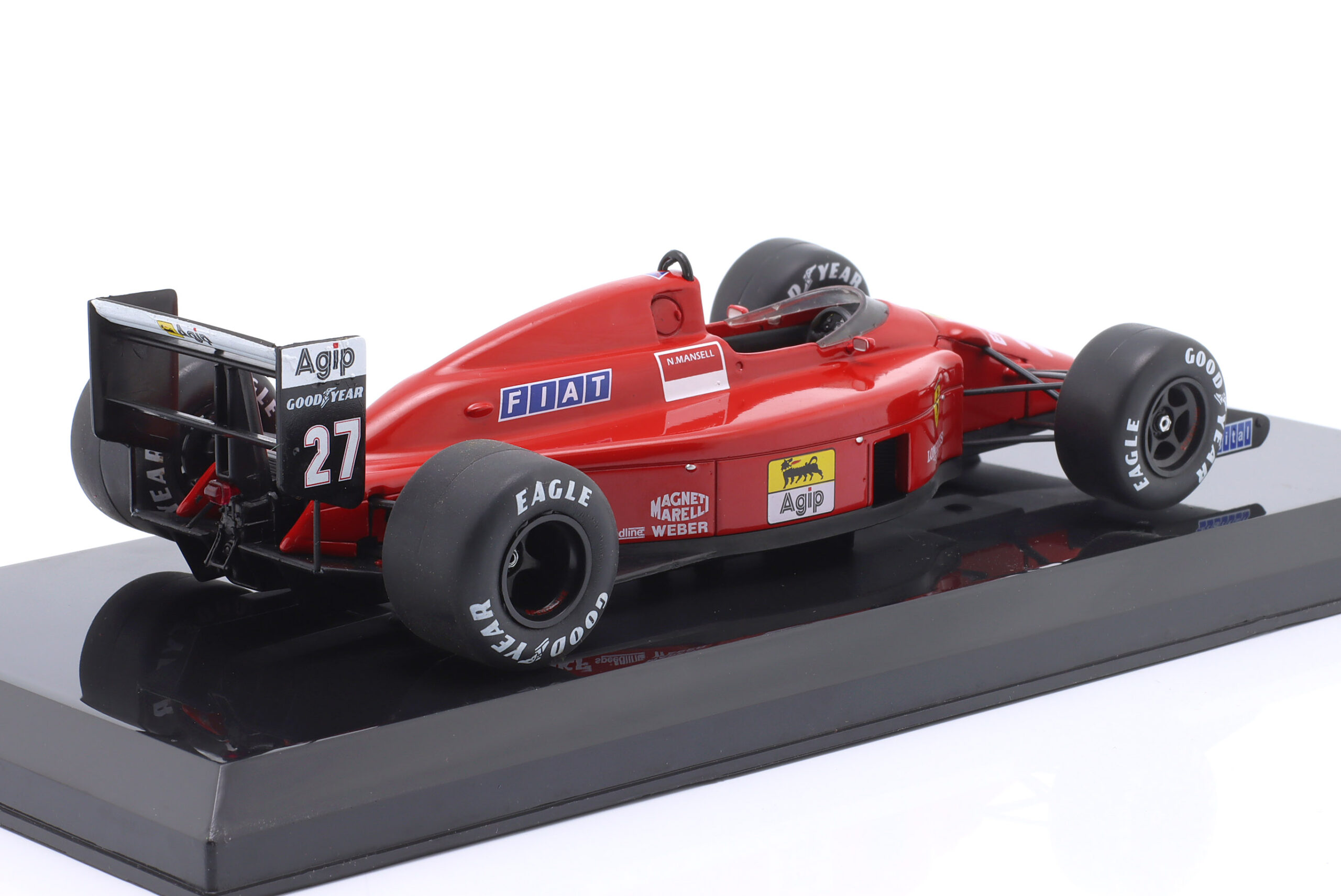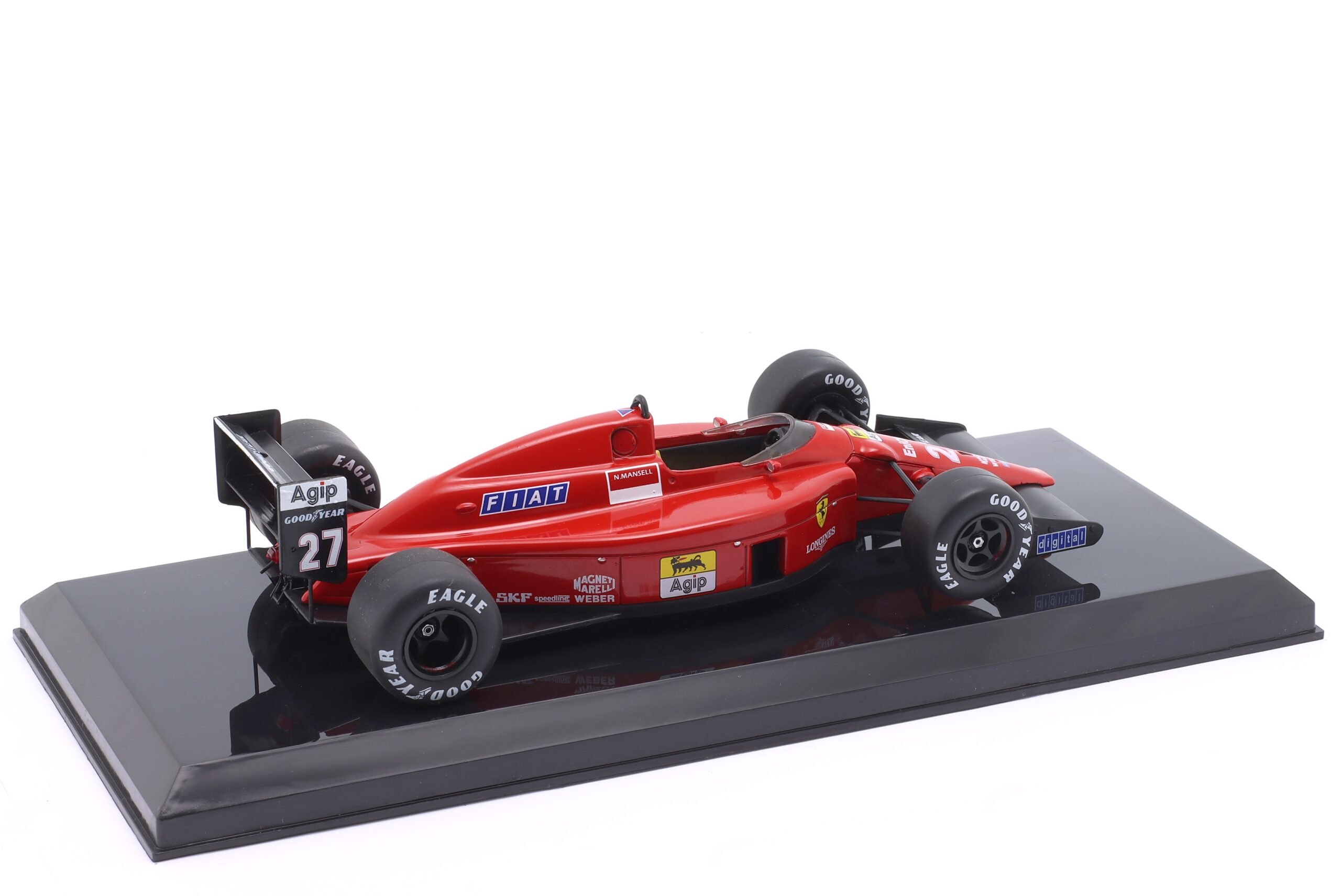 Kolekcjonerski model metalowy z elementami plastikowymi bolidu Formuły 1 FERRARI F1-89 #27,w którym Nigel Mansell startował w Mistrzostwach Formuły 1 w sezonie 1989.Model na podstawce,posiada akrylową gablotkę ekspozycyjną.Nie posiada otwieranych elementów,Dodatkowo zapakowany w blister.