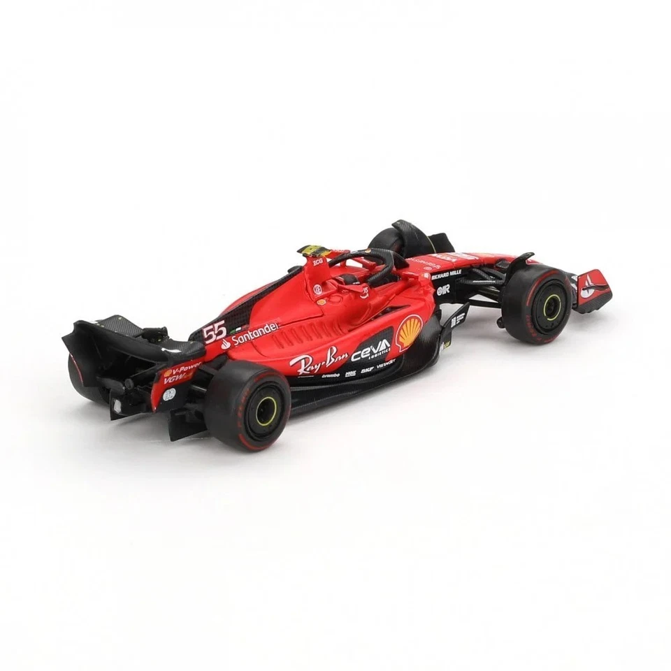 Kolekcjonerski model metalowy z elementami plastikowymi bolidu Formuły 1 FERRARI SF23 #55,w którym C.Sainz startował w GP F1 Bahrajnu w sezonie 2023.Model zapakowany w kartonowe pudełko z rysunkiem samochodu.