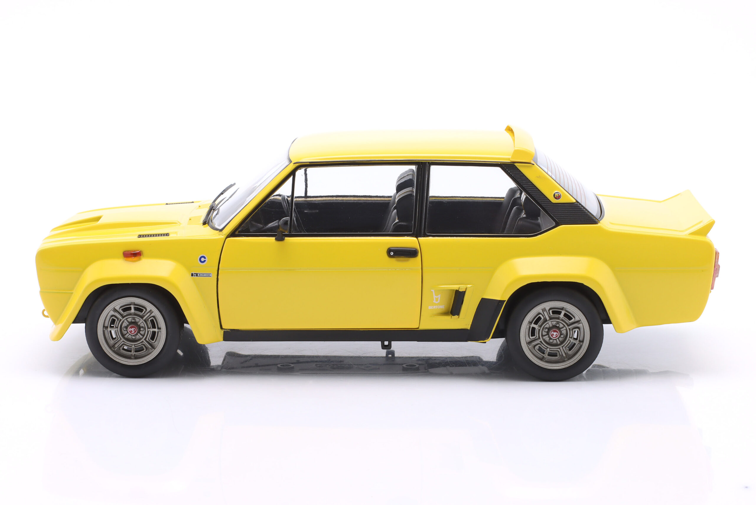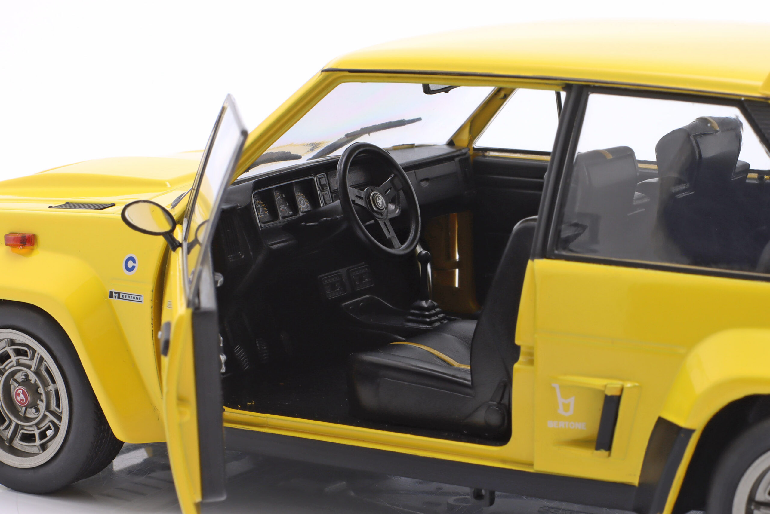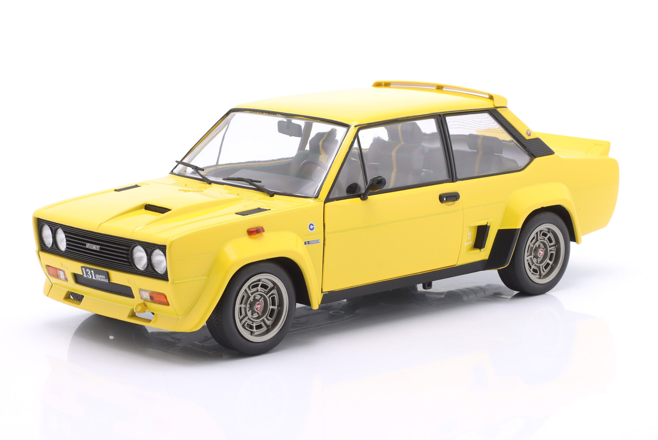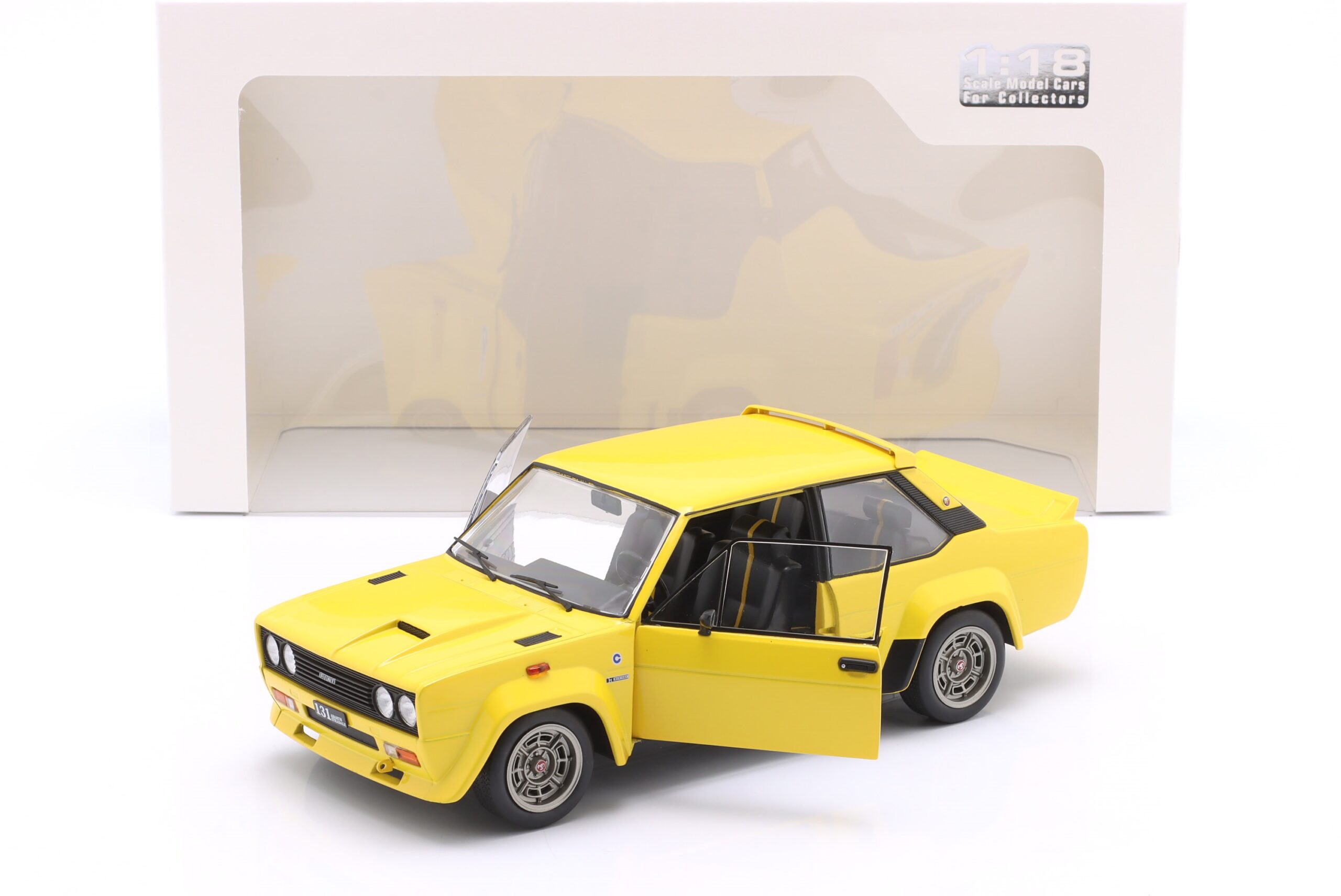 Kolekcjonerski model metalowy z elementami plastikowymi samochodu FIAT 131 ABARTH z roku 1980 w kolorze Żółtym.Model posiada otwierane drzwi.