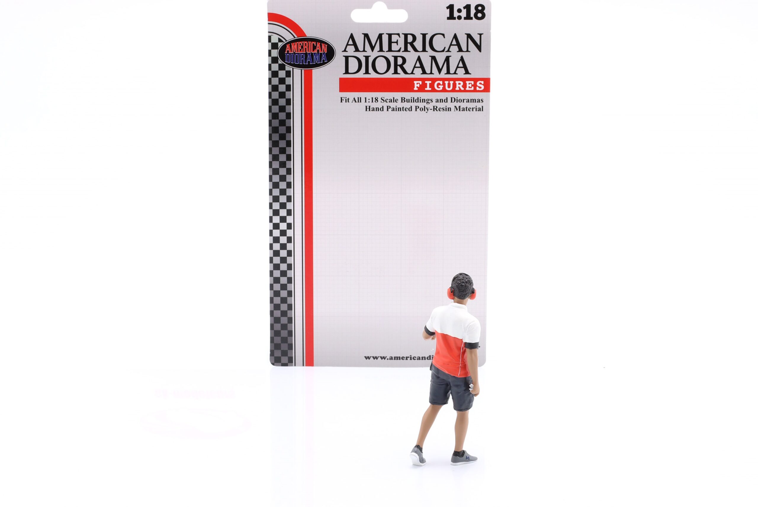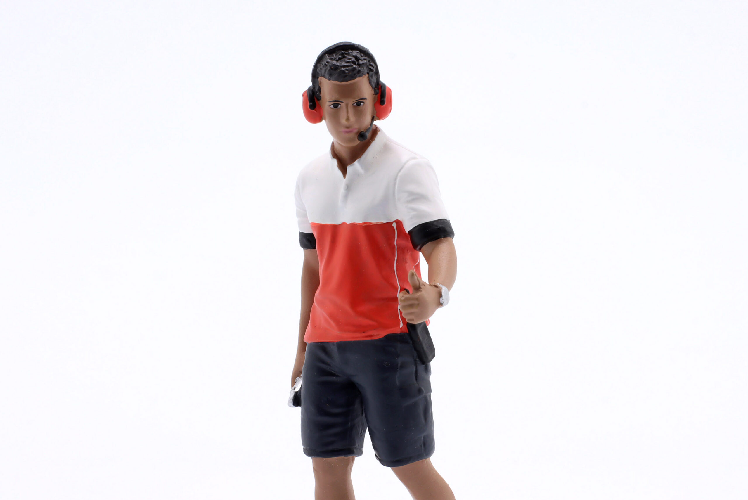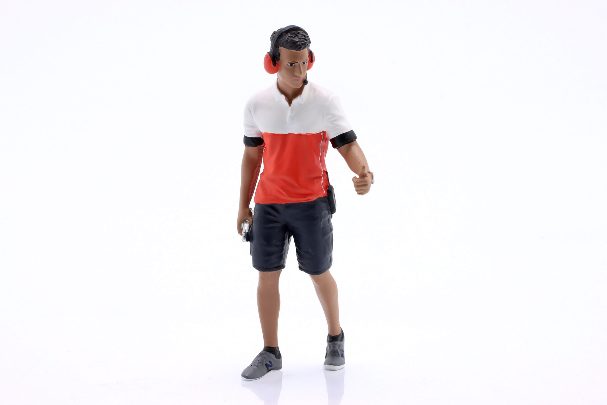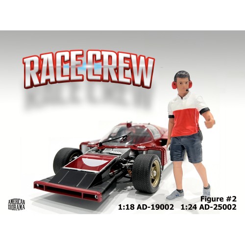Figurka w skali 1:18 wykonana z tworzywa sztucznego „Race Crew #2”. Figurka może służyć jako element dioramy lub do samodzielnej ekspozycji. Figurka zapakowana w blister. Zestaw zawiera jedną figurkę. Inne figurki z serii „Race Crew” można kupić oddzielnie.Model samochodu widoczny na zdjęciach nie jest częścią zestawu.