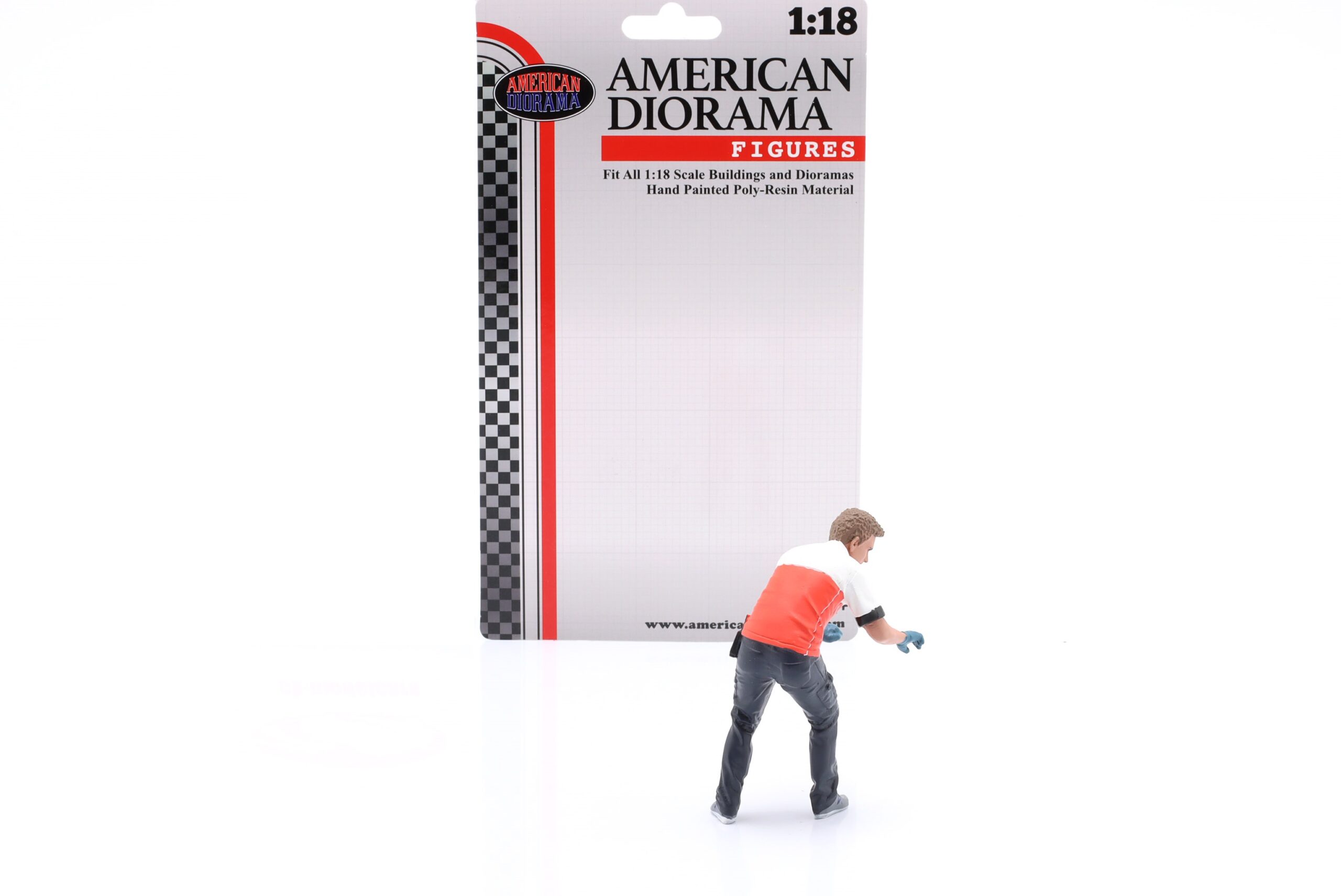 Figurka w skali 1:18 wykonana z tworzywa sztucznego „Race Crew #6”. Figurka może służyć jako element dioramy lub do samodzielnej ekspozycji. Figurka zapakowana w blister. Zestaw zawiera jedną figurkę. Inne figurki z serii „Race Crew” można kupić oddzielnie.Model samochodu widoczny na zdjęciach nie jest częścią zestawu.