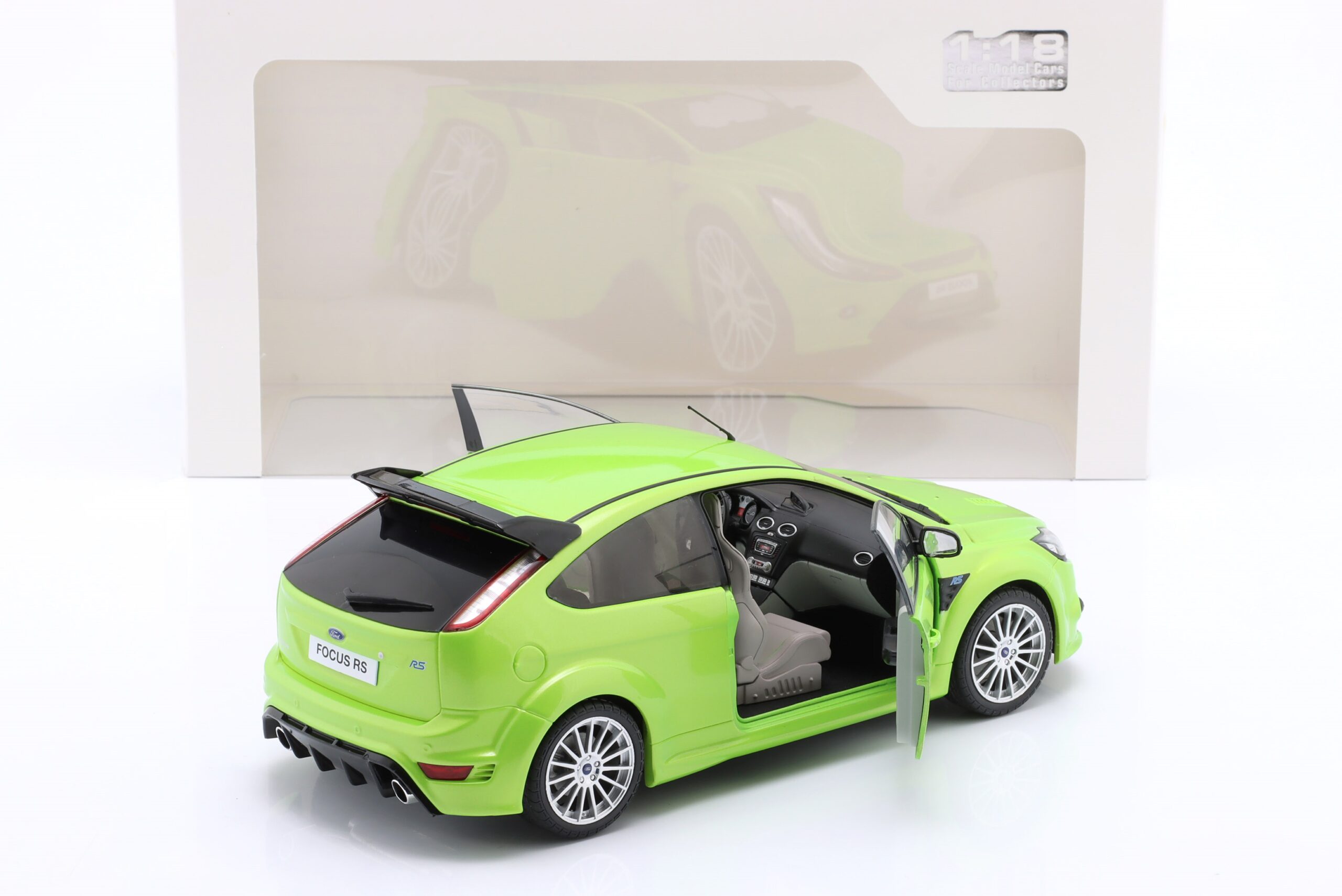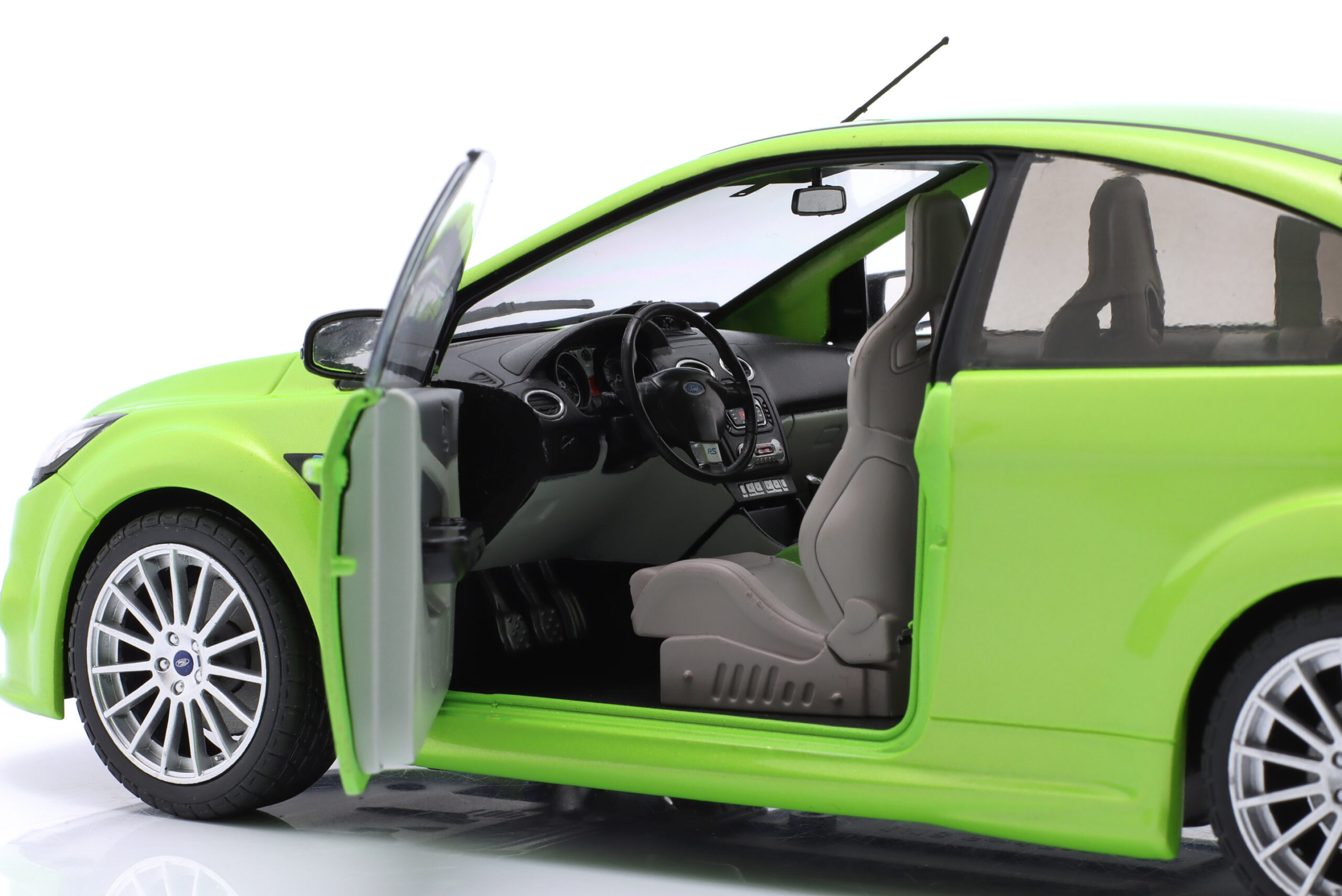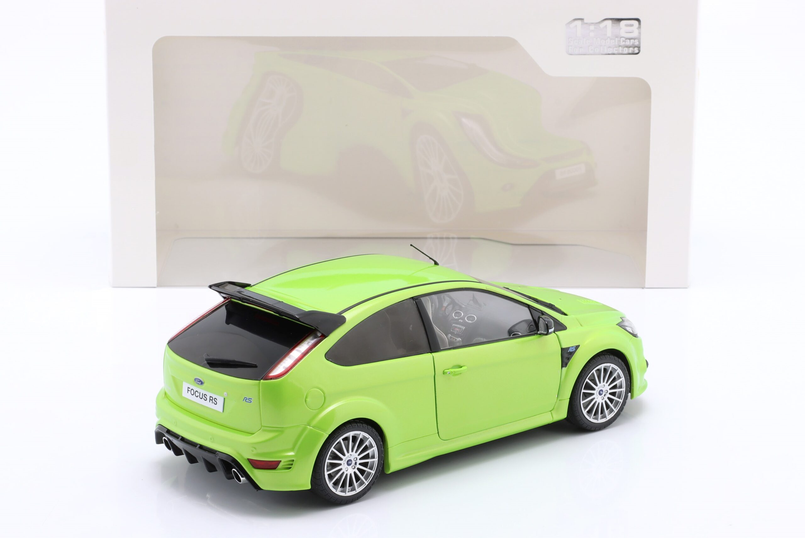 Kolekcjonerski model metalowy z elementami plastikowymi samochodu FORD FOCUS RS MK II z roku 2009 w kolorze Ultimate green metallic.Model posiada otwierane drzwi.