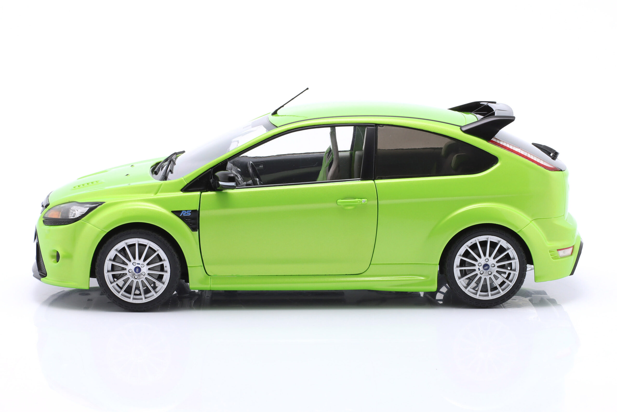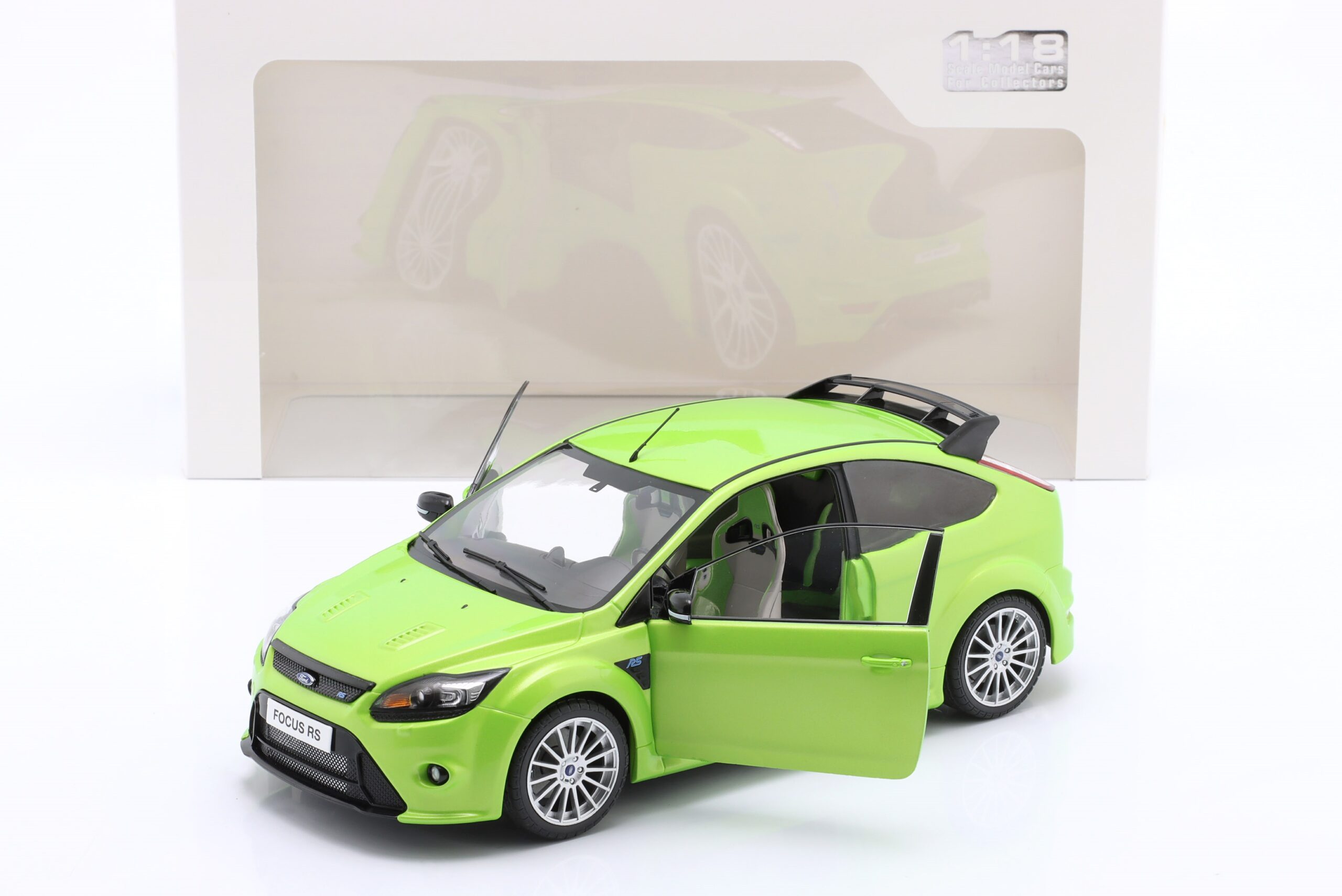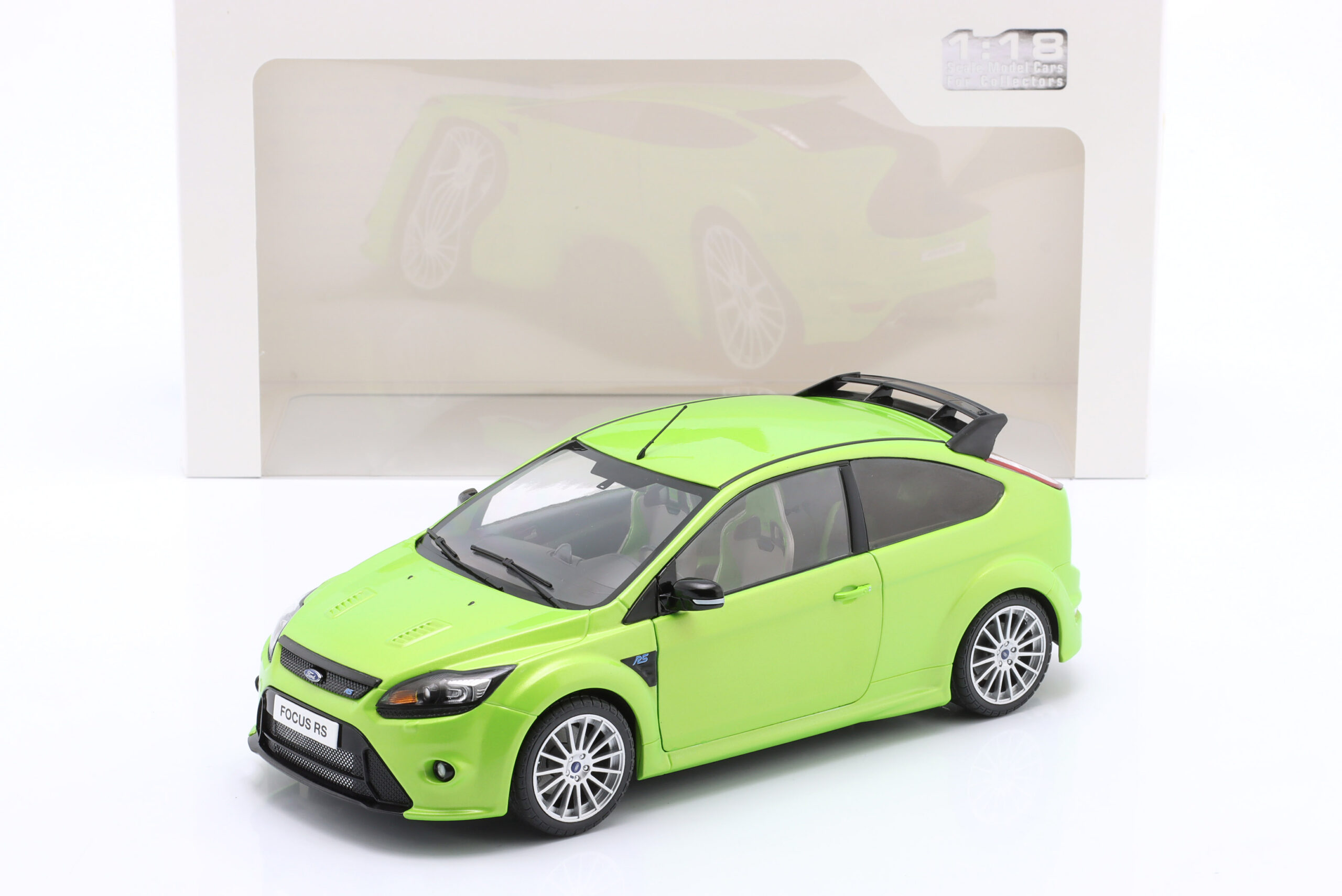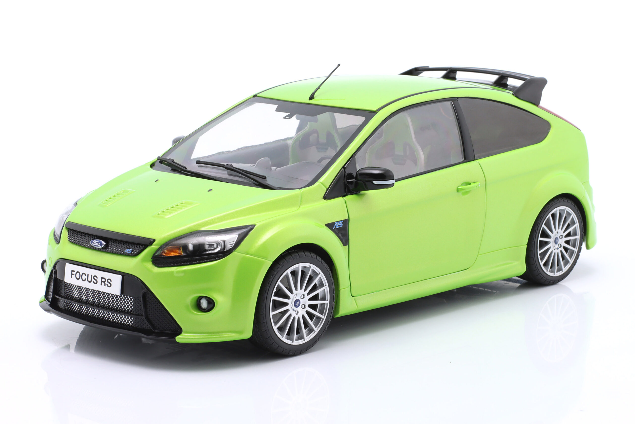 Kolekcjonerski model metalowy z elementami plastikowymi samochodu FORD FOCUS RS MK II z roku 2009 w kolorze Ultimate green metallic.Model posiada otwierane drzwi.