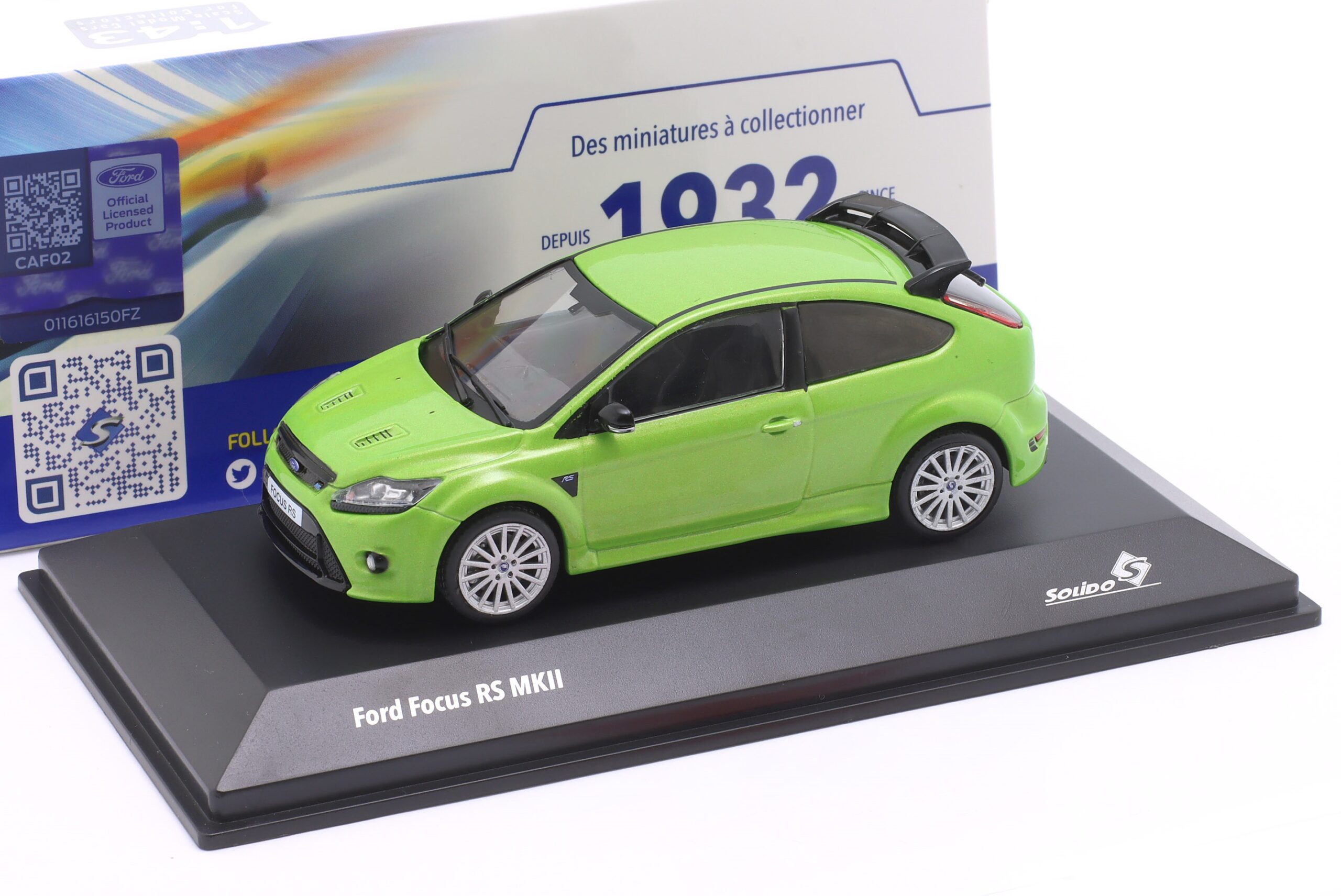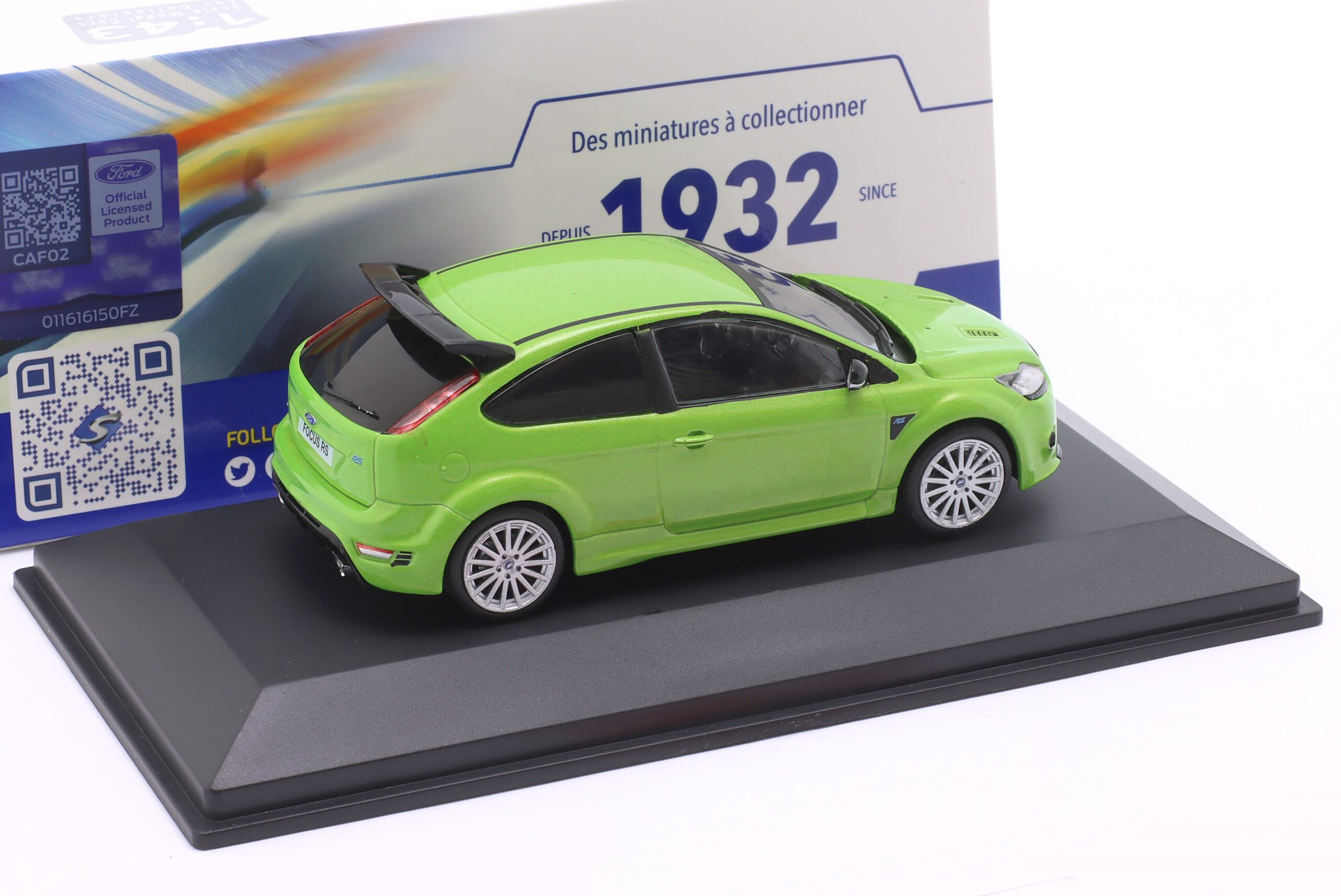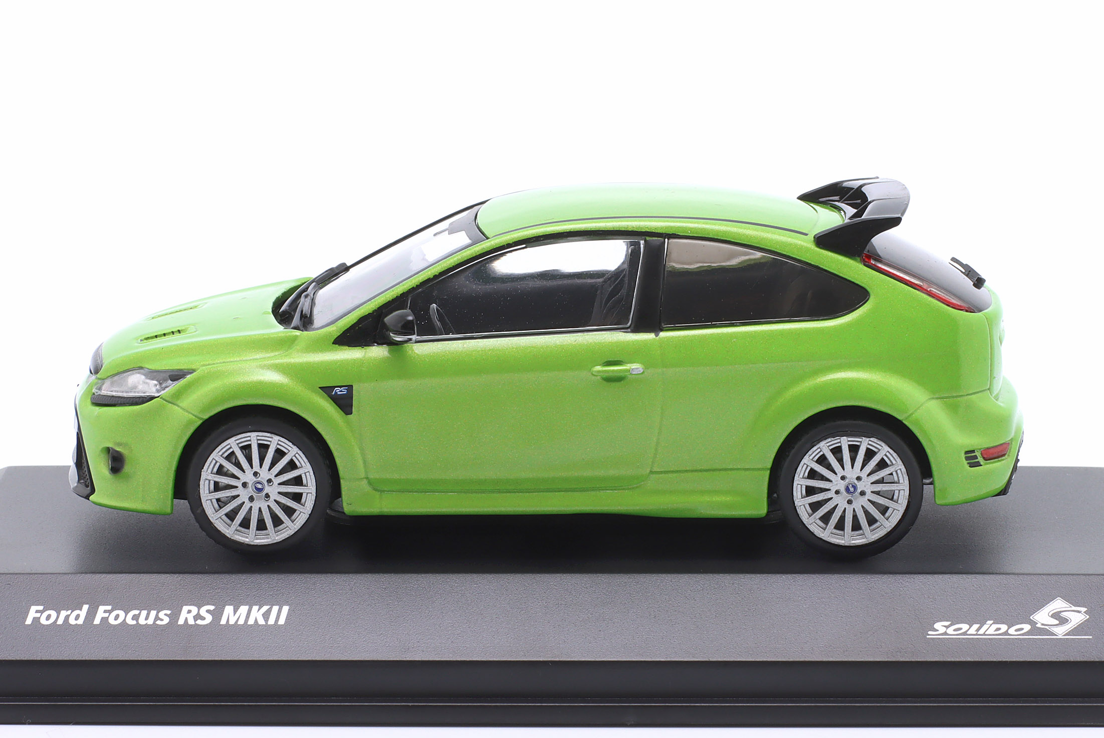 Kolekcjonerski model metalowy z elementami plastikowymi samochodu FORD FOCUS RS MK II z roku 2010 w kolorze Zielonym.Model na podstawce,posiada akrylową gablotkę ekspozycyjną.