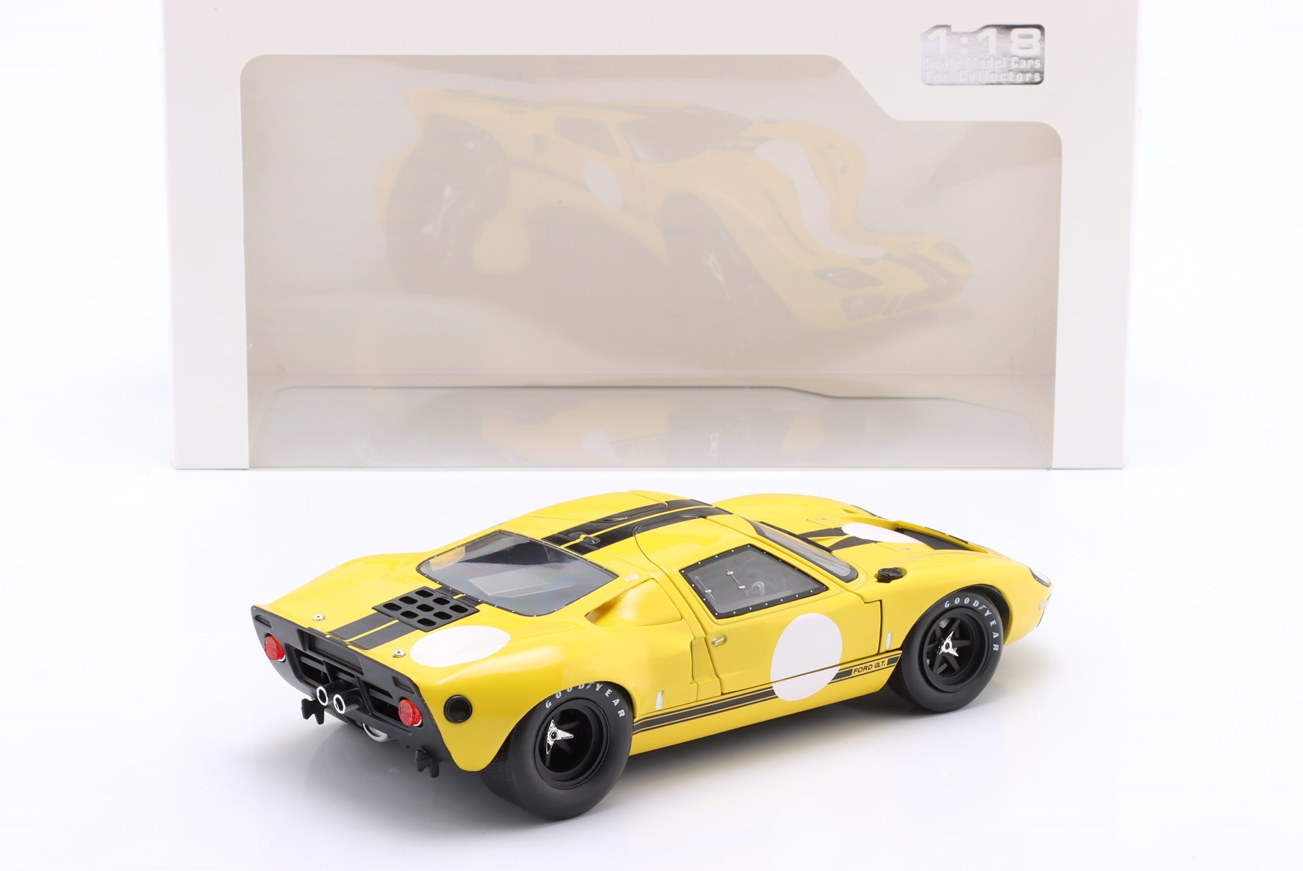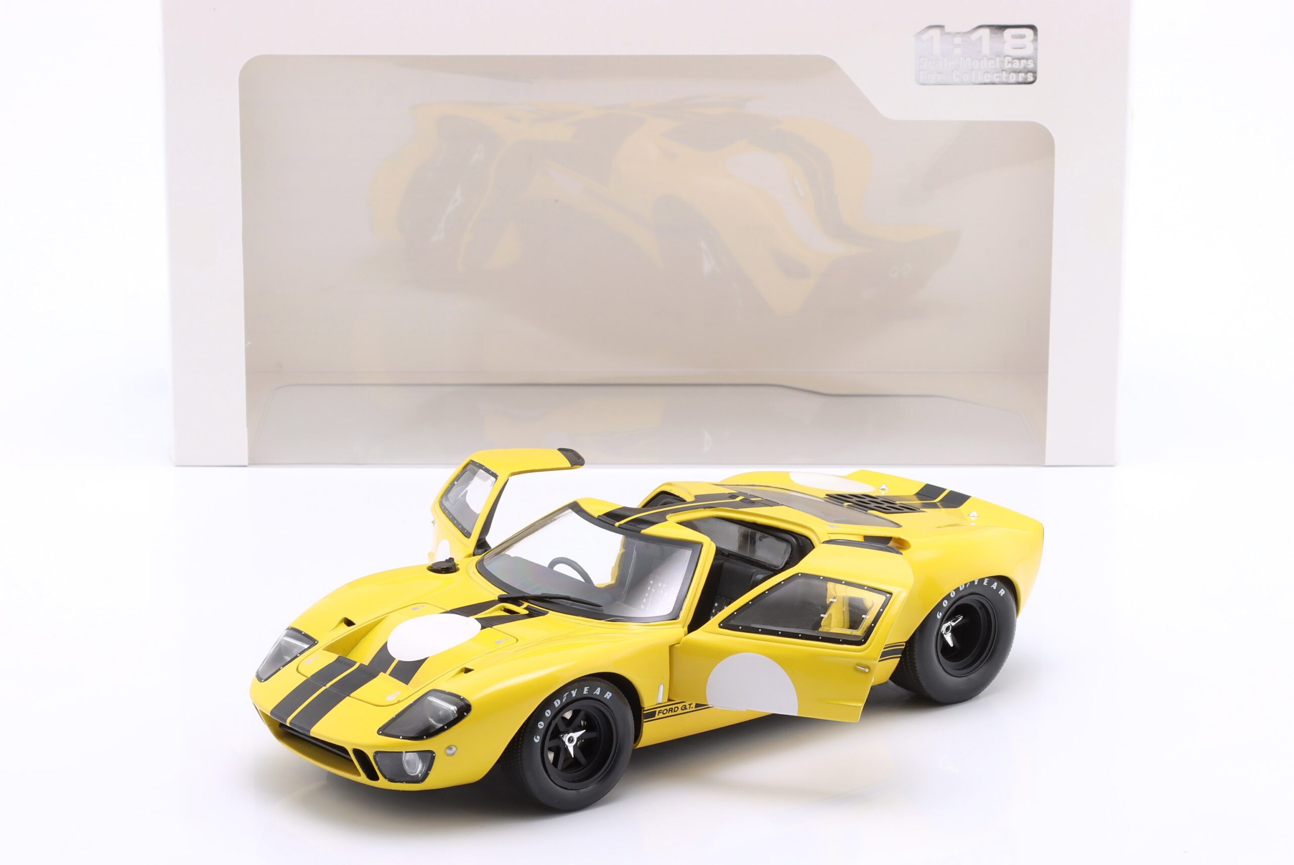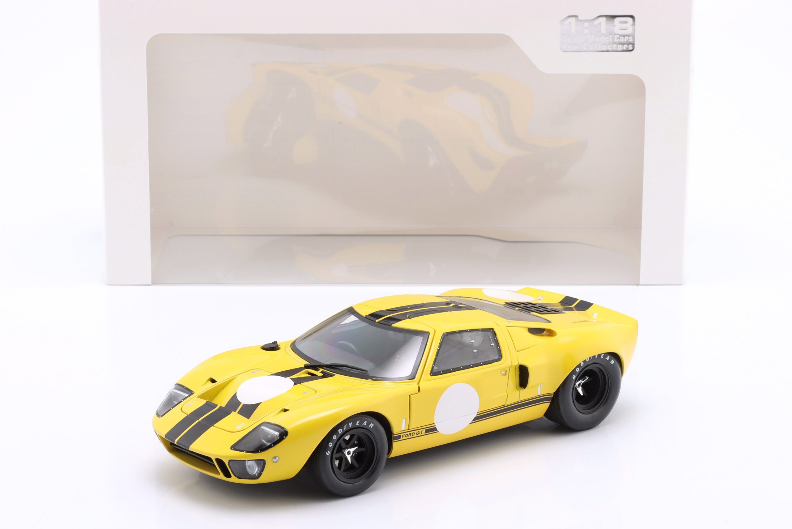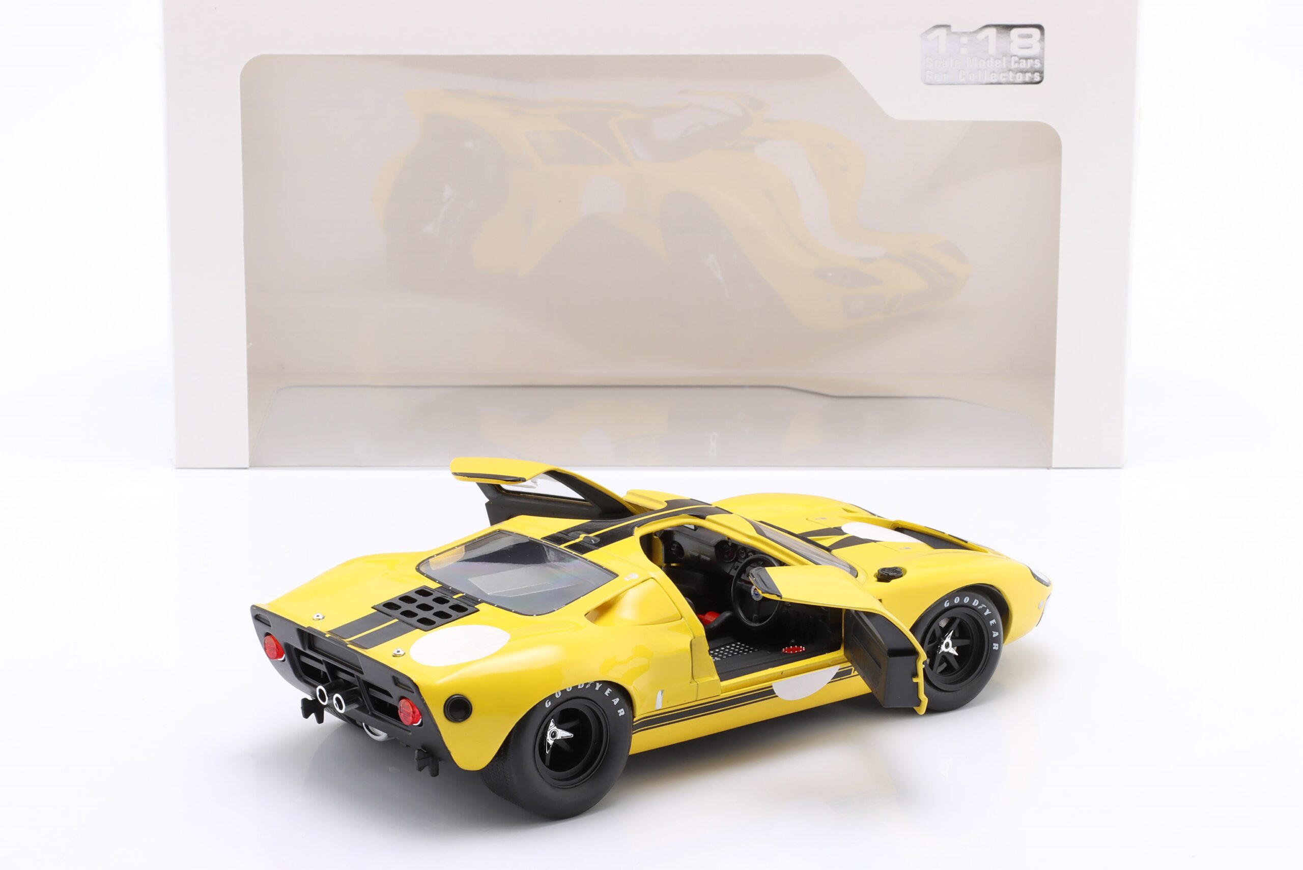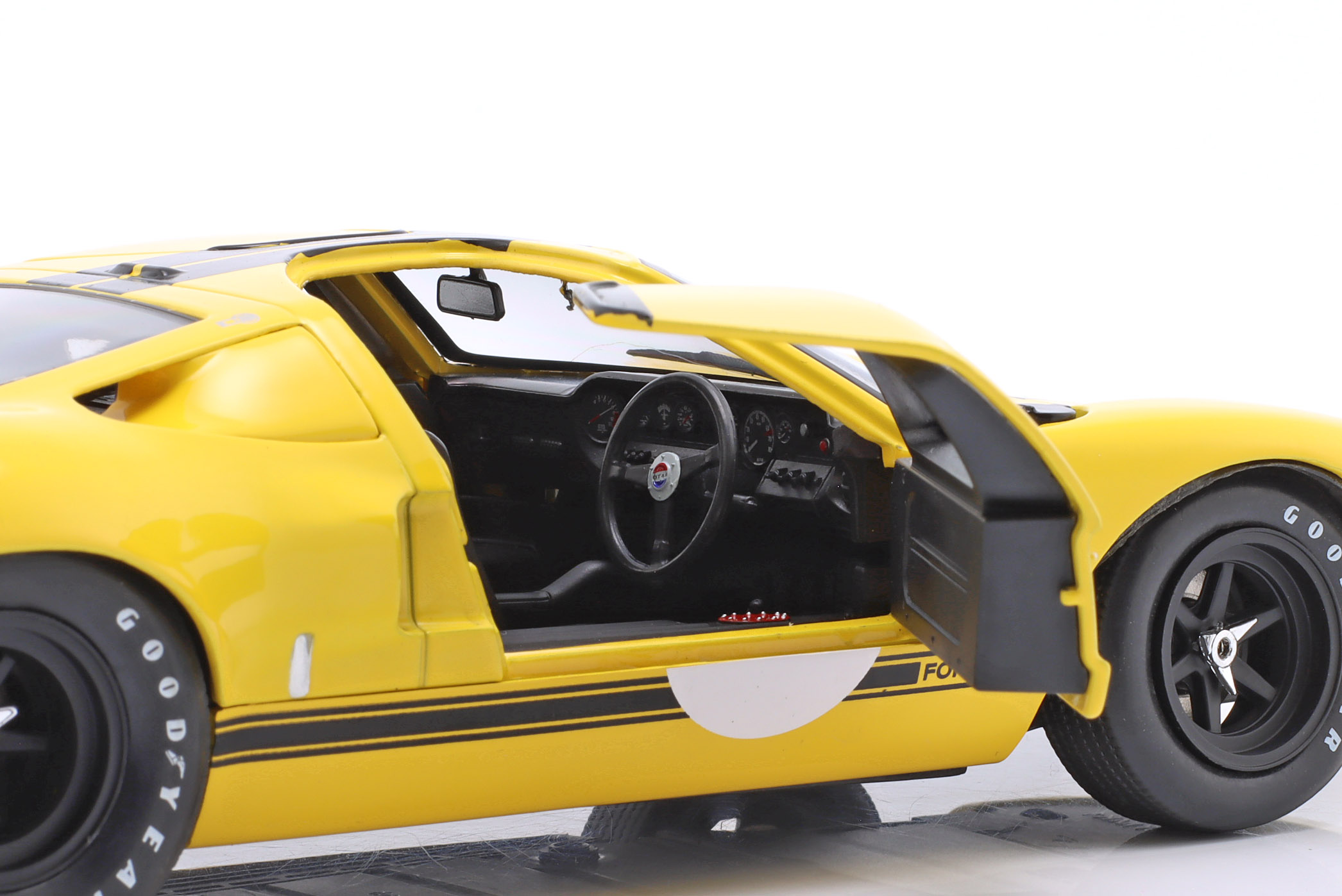 Kolekcjonerski model metalowy z elementami plastikowymi samochodu FORD GT40 Mk1 z roku 1968 w kolorze Żółty/czarny.Model ma otwierane drzwi.