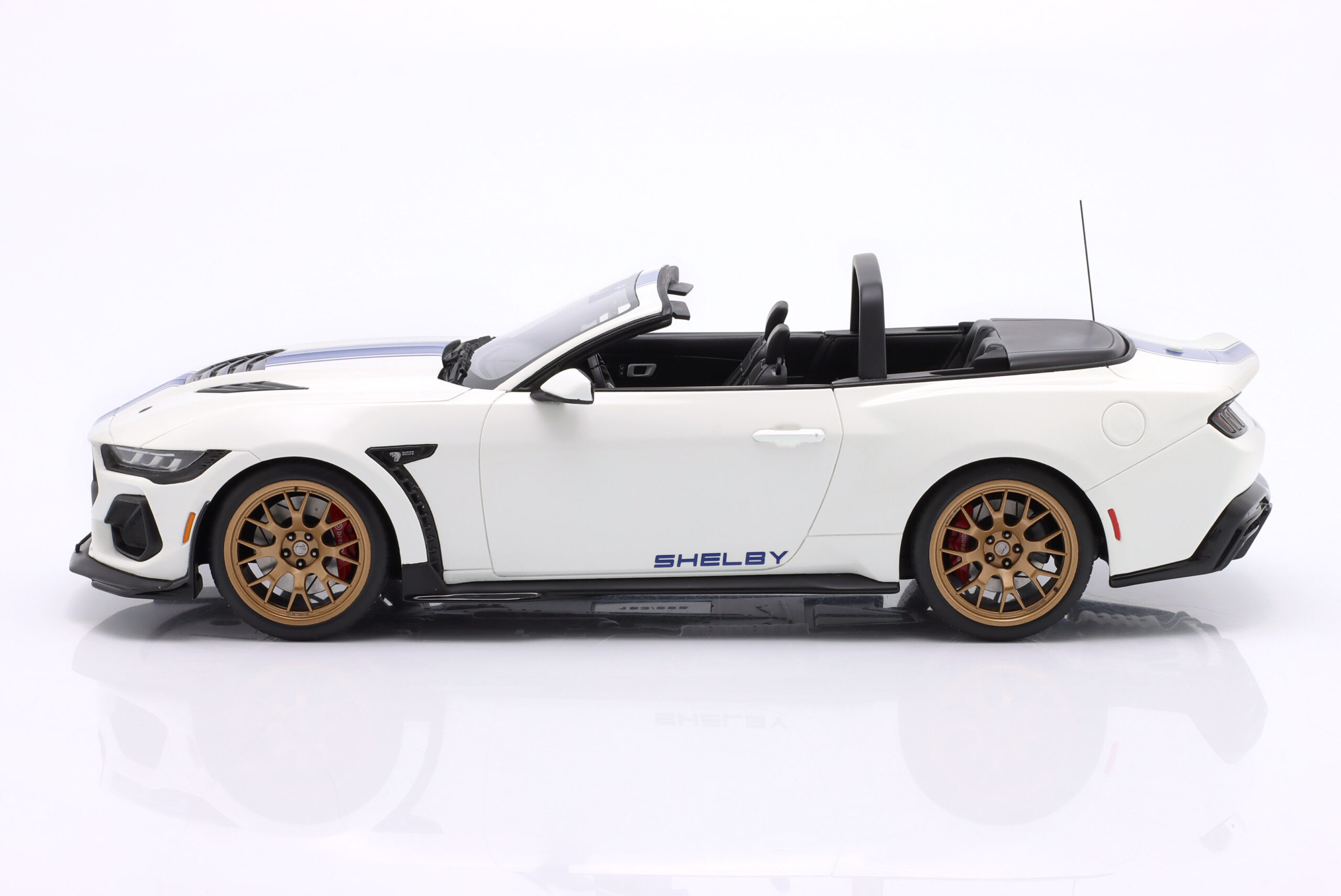 Kolekcjonerski model wykonany z żywicy samochodu FORD SHELBY MUSTANG Supersnake z roku 2025 w kolorze Oxford white.Model nie posiada otwieranych elementów.Edycja limitowana tylko 999 sztuk.