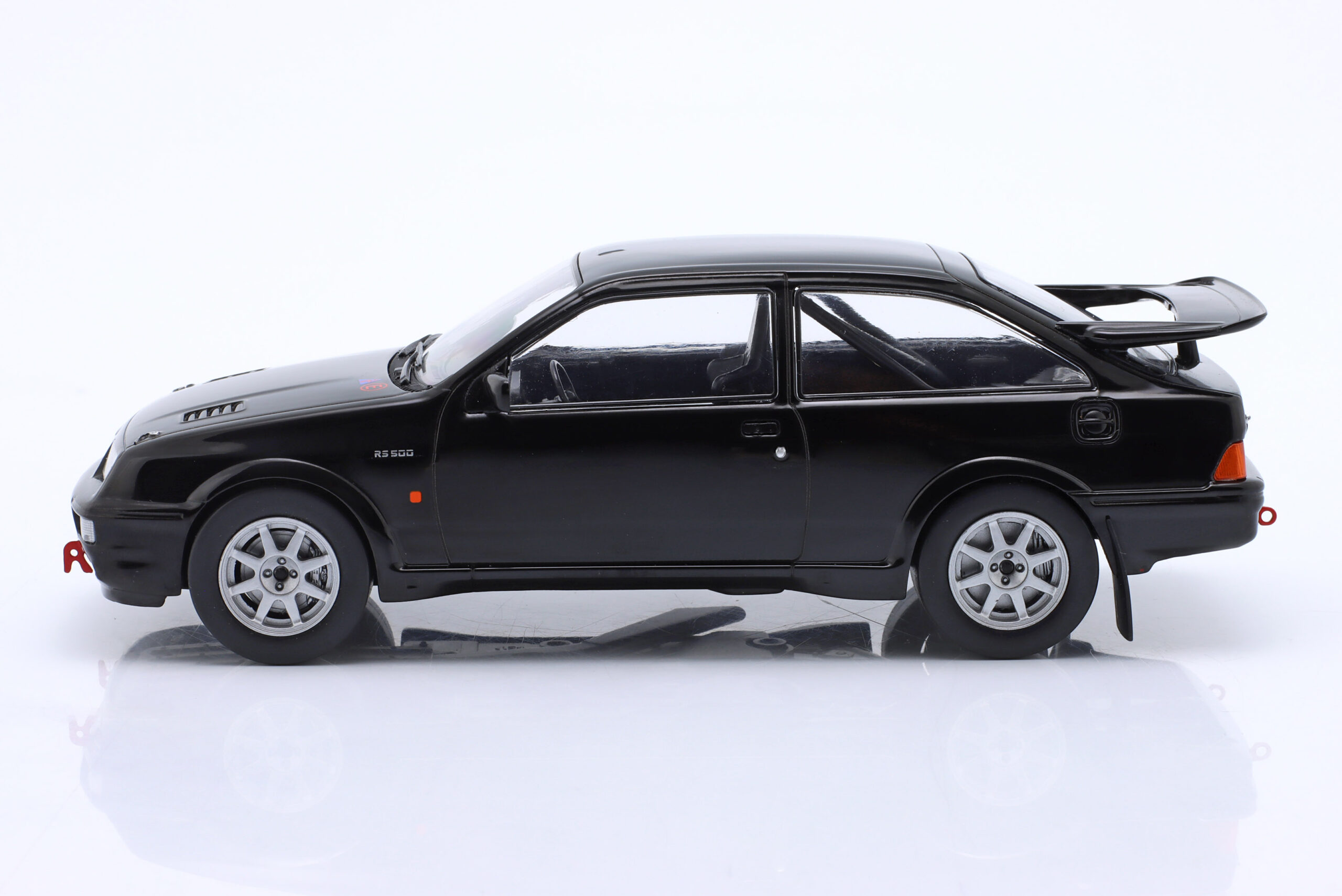 Kolekcjonerski model metalowy z elementami plastikowymi samochodu FORD SIERRA RS Cosworth z roku 1987 w kolorze Czarnym.Model nie posiada otwieranych elementów.Model na plastikowej podstawce,zapakowany w kartonowe pudełko z witrynką.Model ma otwierane drzwi.