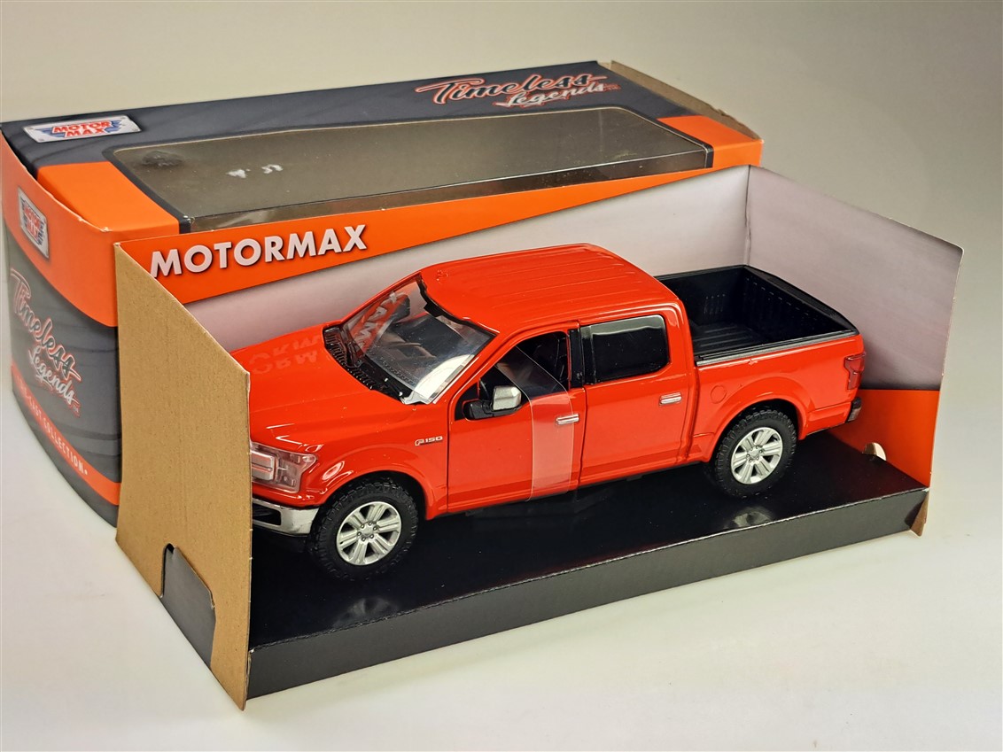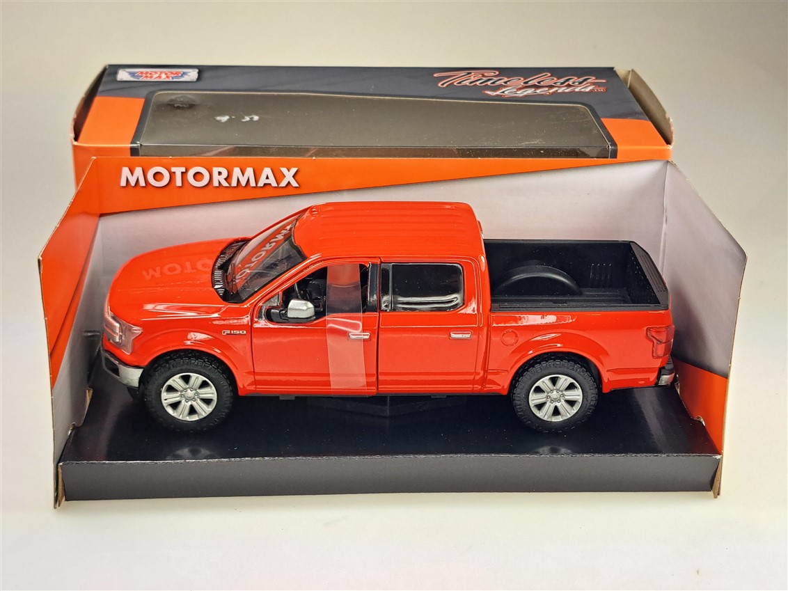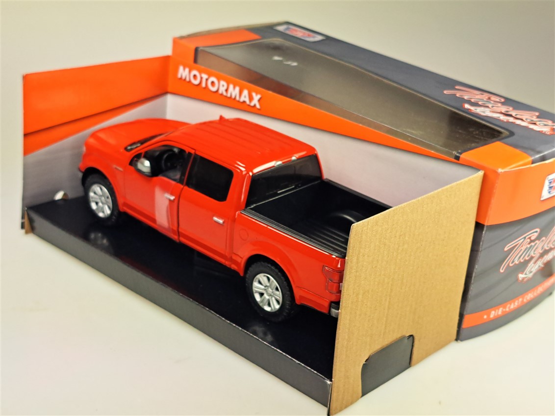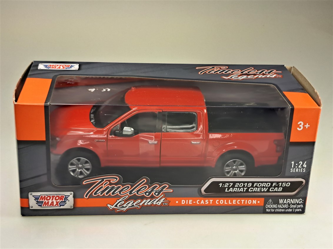 Kolekcjonerski model metalowy z elementami plastikowymi samochodu GMC SIERRA 1500 Denali Crew Cab z roku 2019 w kolorze Race red.Posiada otwierane drzwi.Model zapakowany w kartonowe pudełko witrynką.